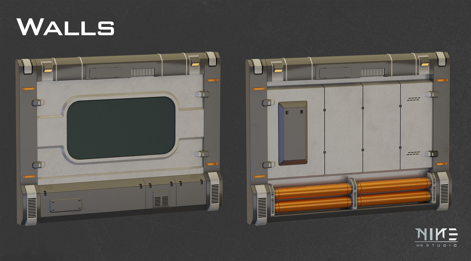 This kit is built to help you quickly create a variety of sci-fi scenes and environments. It includes modular elements such as floor panels, walls, Roofs, barrels, columns, lamps, and more, allowing you to explore different layouts and visual styles for your interior sci-fi concepts. Whether you're designing a spaceship hallway, a control room, or a futuristic warehouse, these assets will speed up your workflow and enhance your creative flexibility.