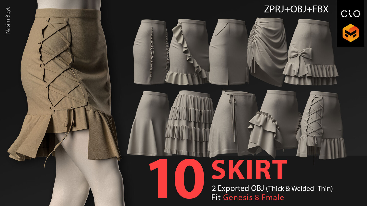 10 WOMAN'S SKIRT PACK (V0L.01) MD-Clo3D-OBJ-FBX- BelenderFiles