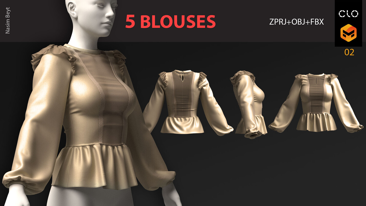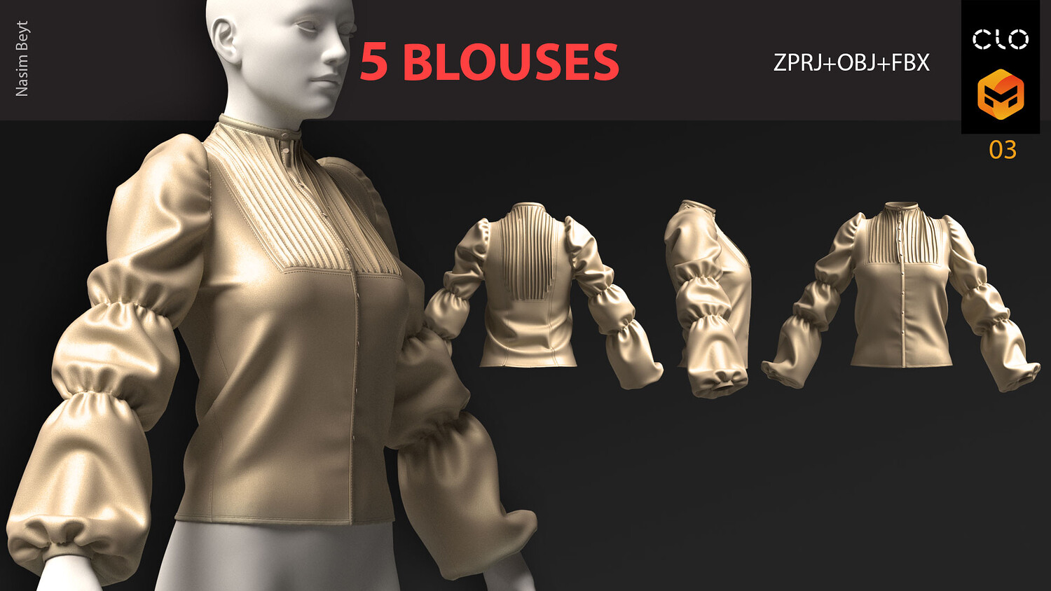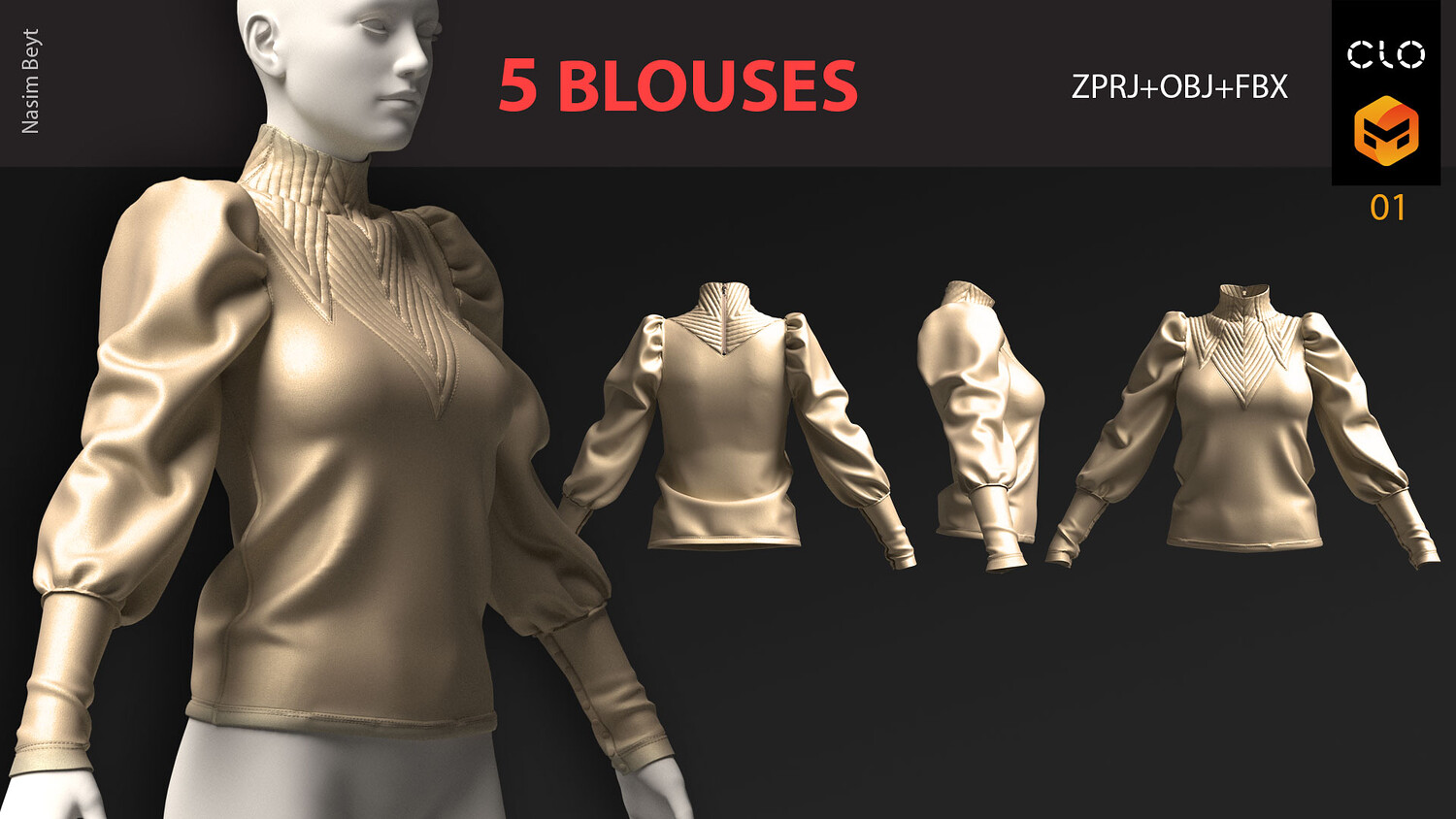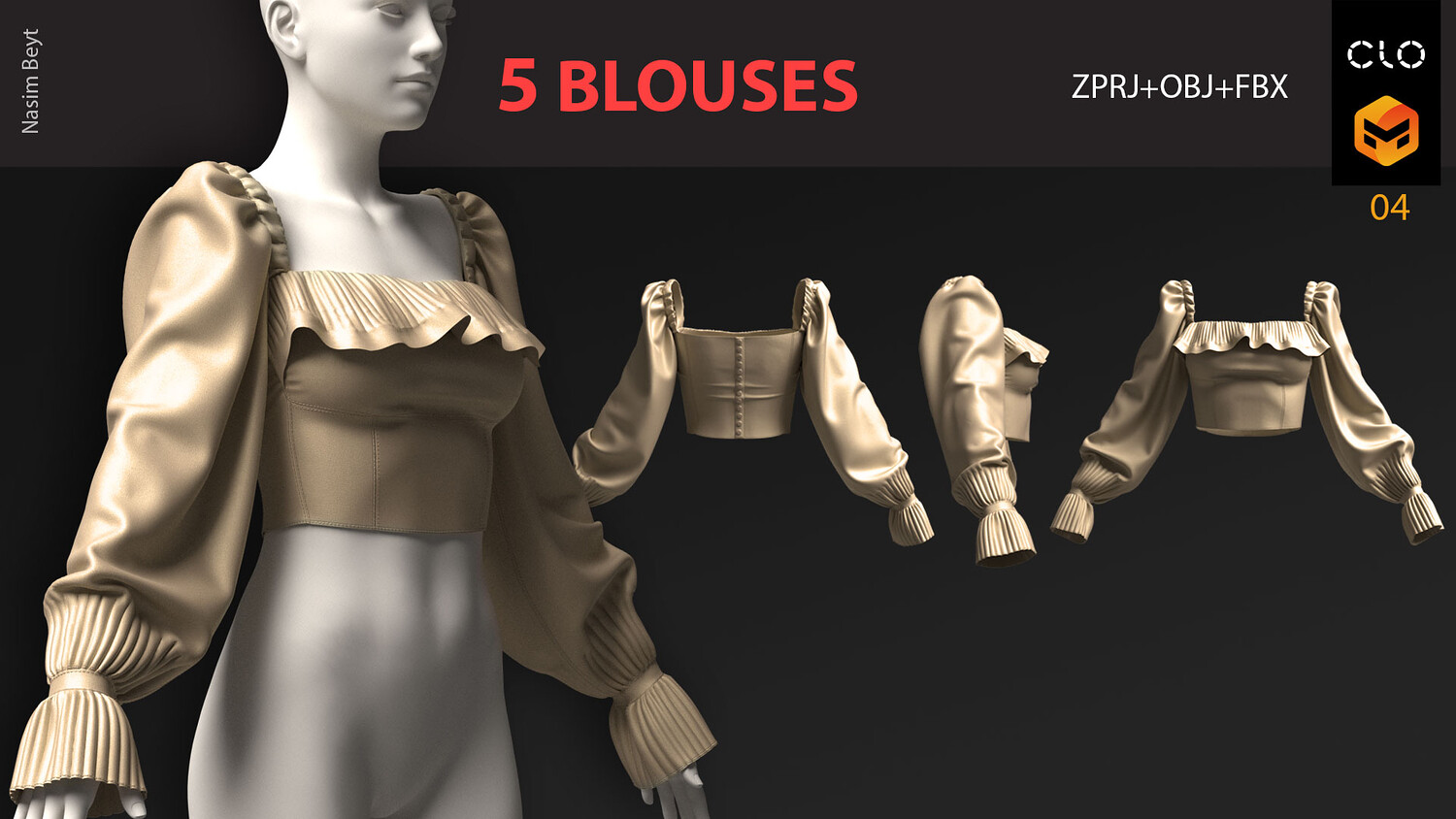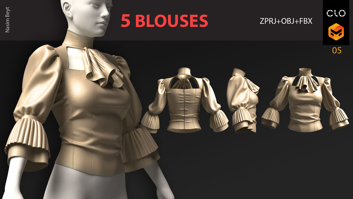 5 FEMALE BLOUSES PACK (VOL.01)-MD-Clo3D-OBJ-FBX-Blender file