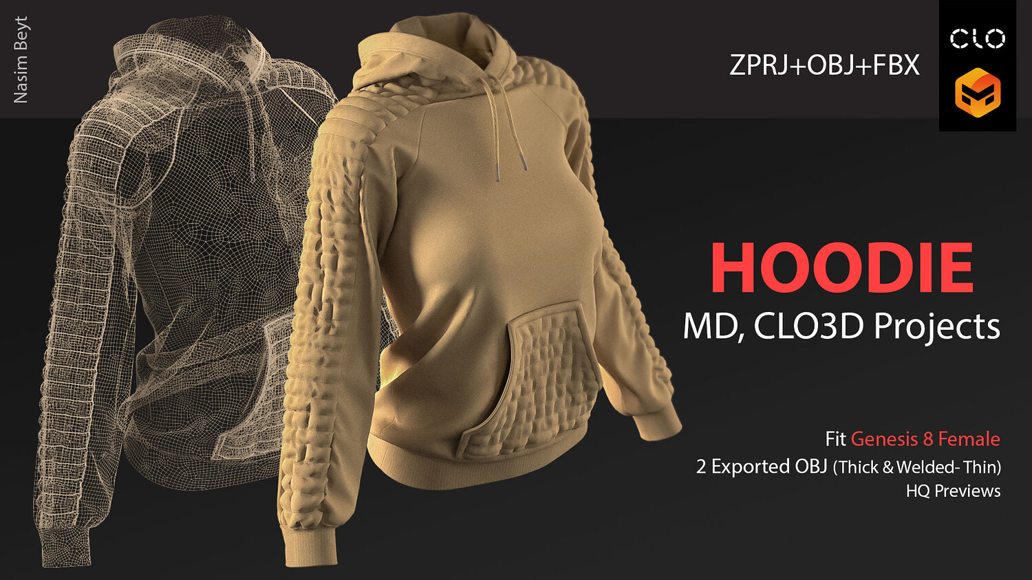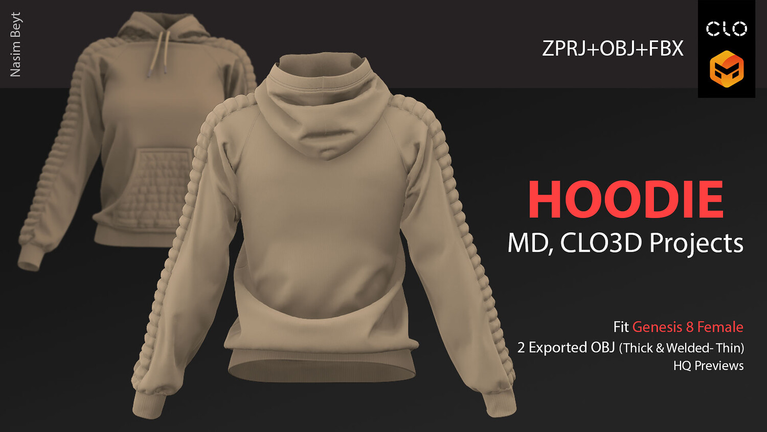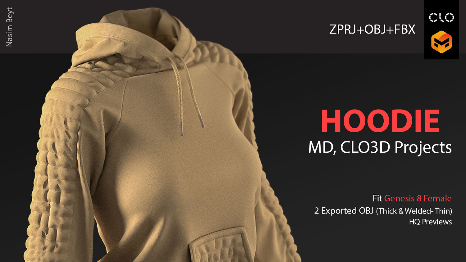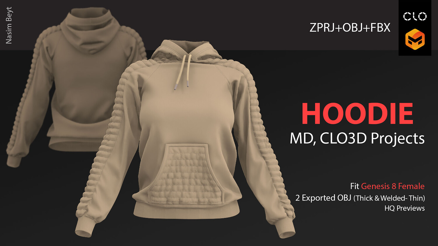 Women's Hoodie. MD/Clo3D+OBJ+FBX-Blender file
