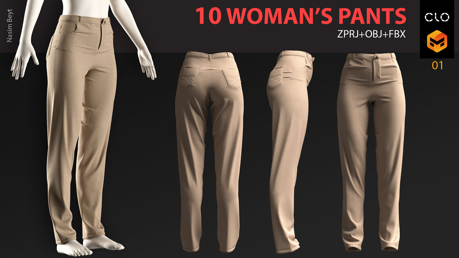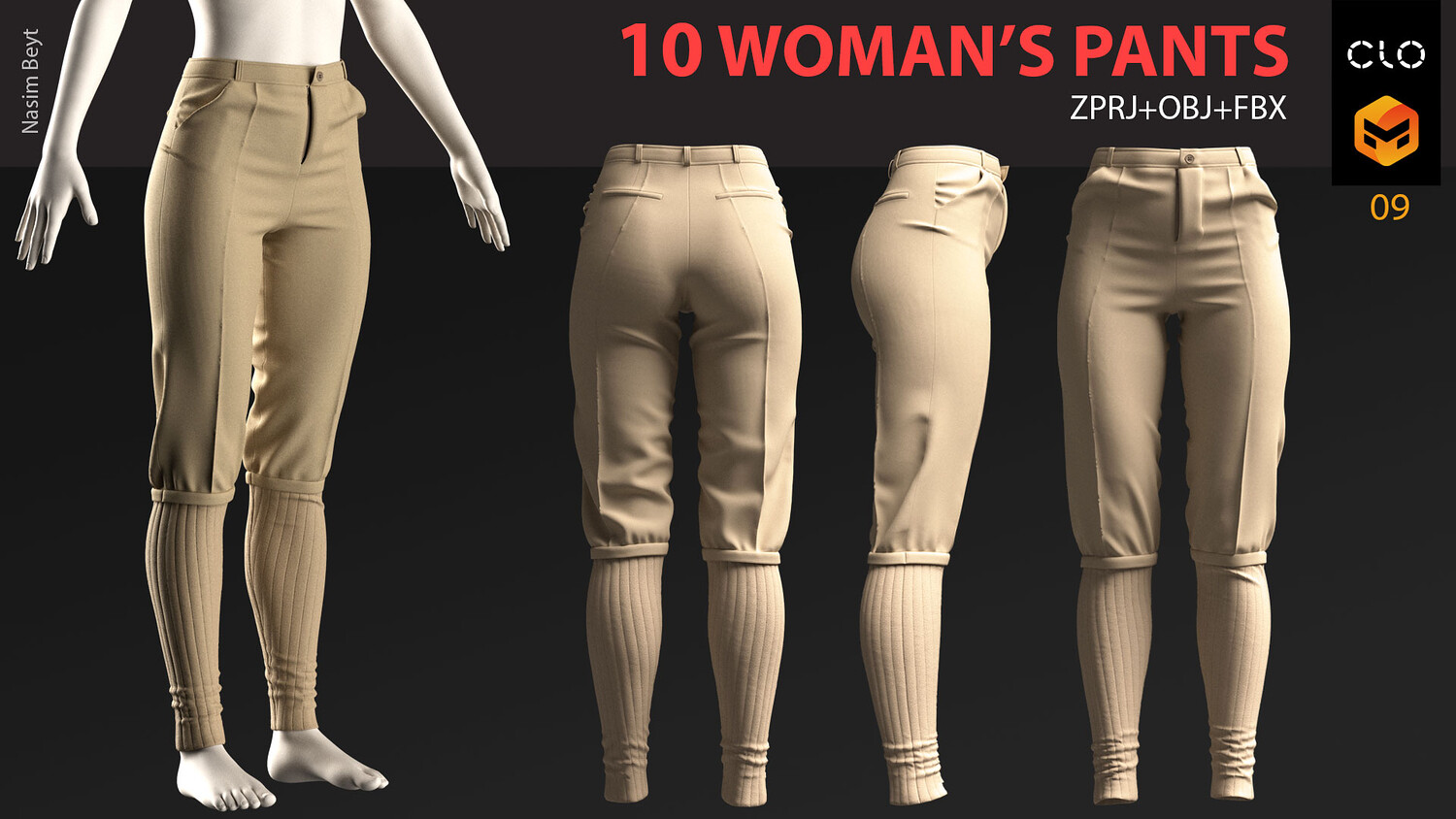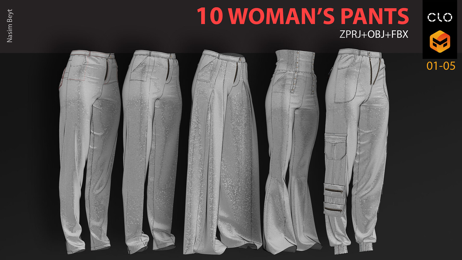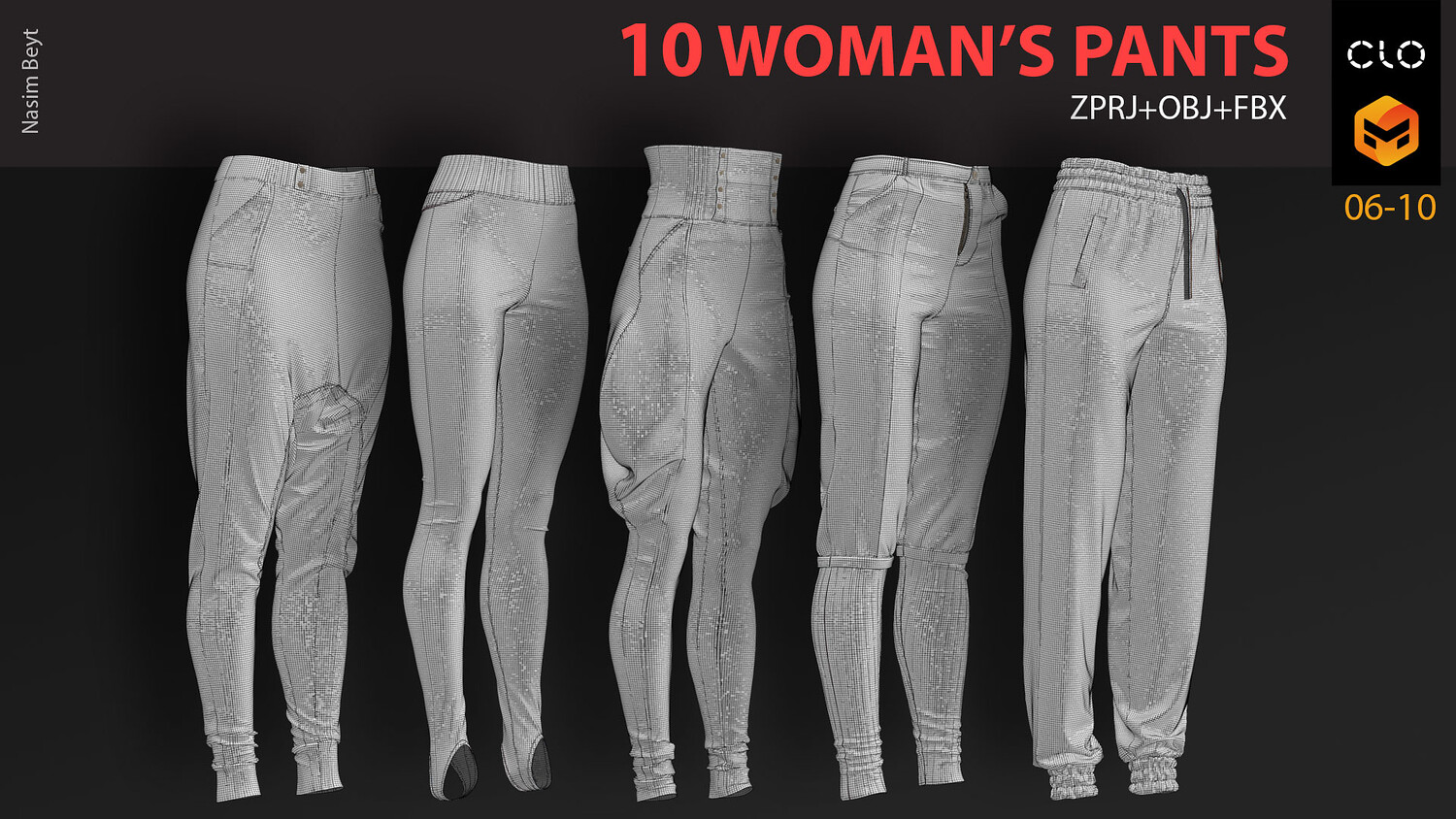 10 WOMAN'S PANTS-VOL01-MD-Clo3D-OBJ-FBX-Blender file