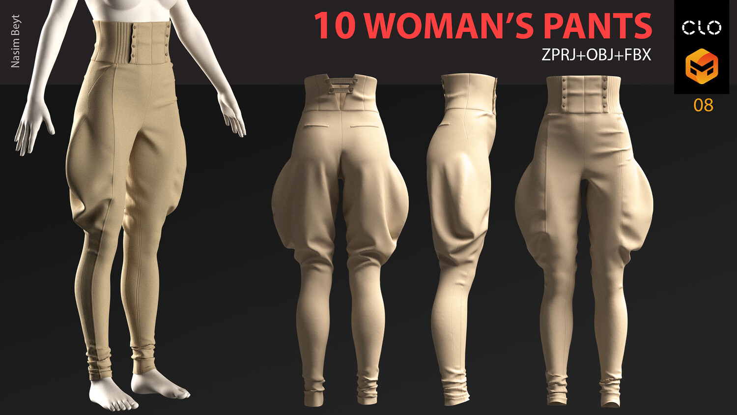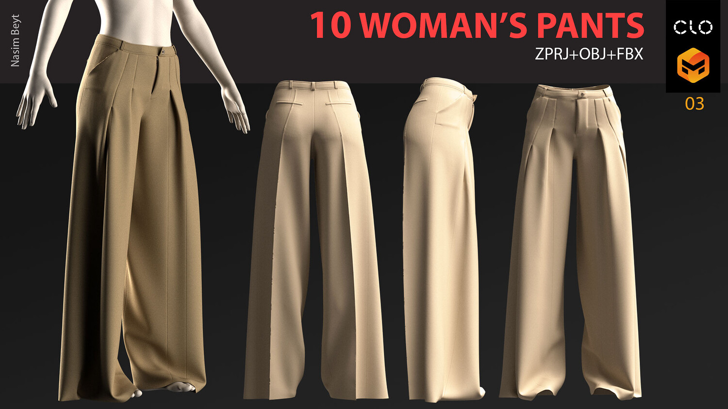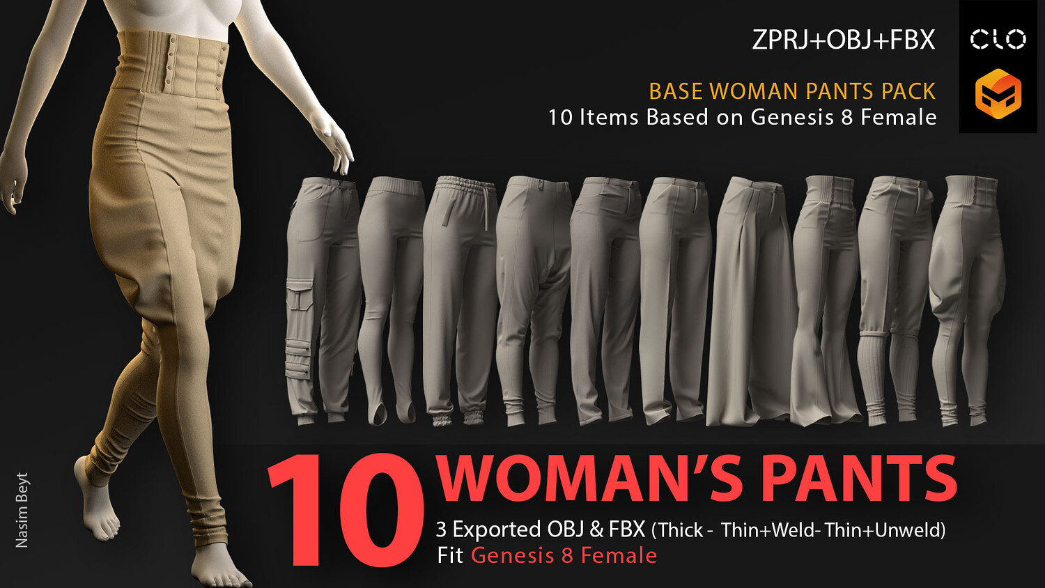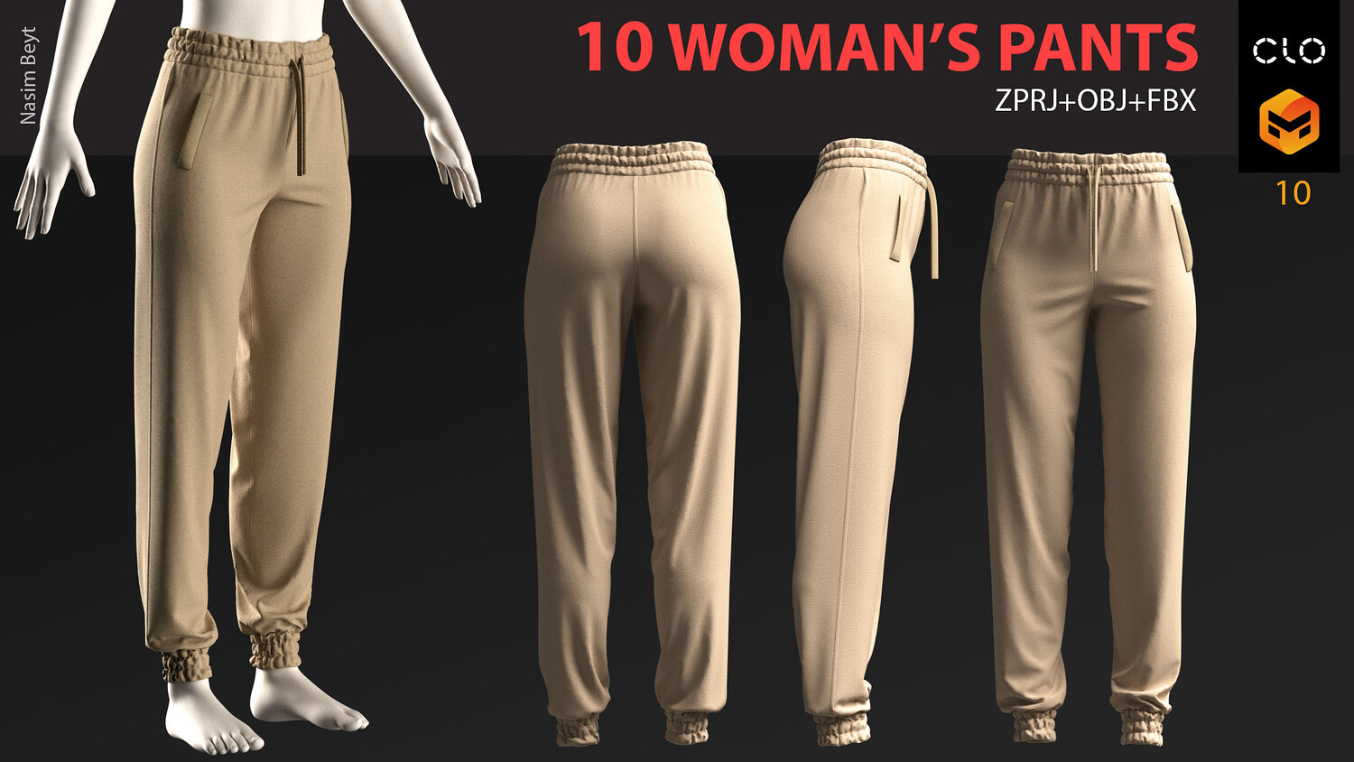 10 WOMAN'S PANTS-VOL01-MD-Clo3D-OBJ-FBX-Blender file