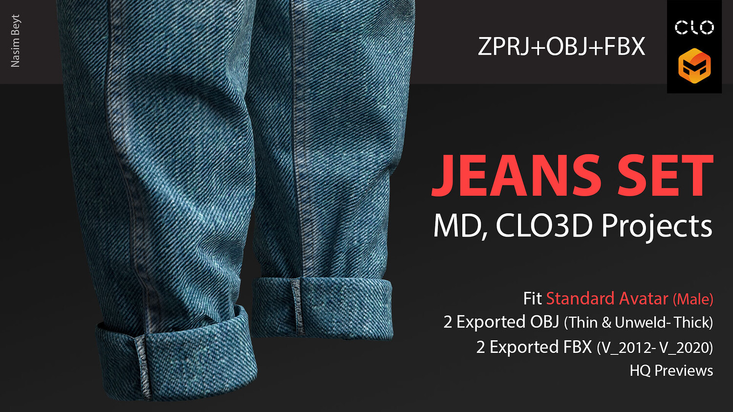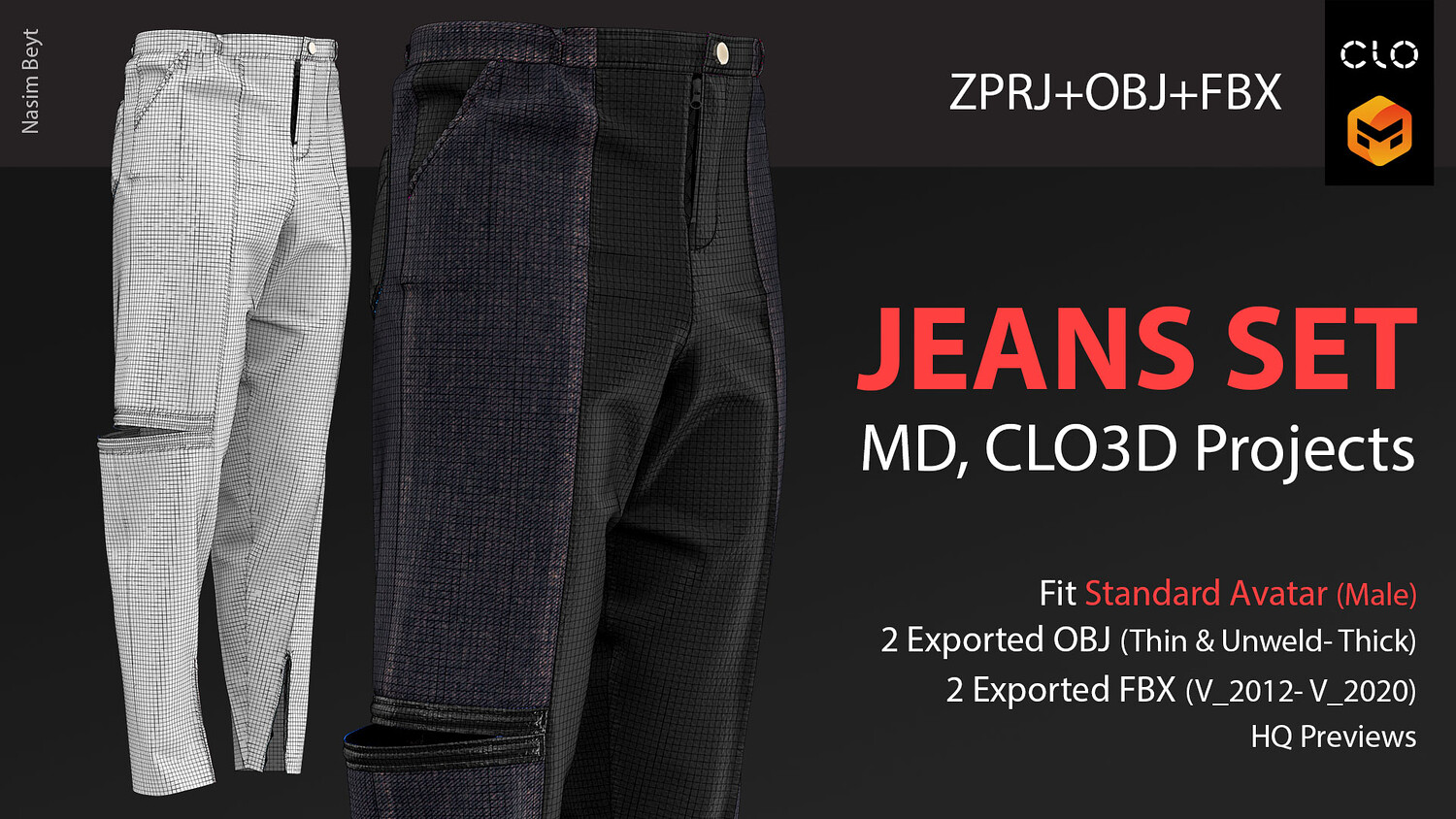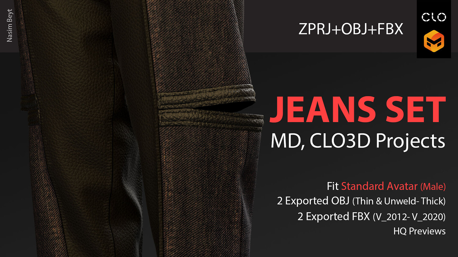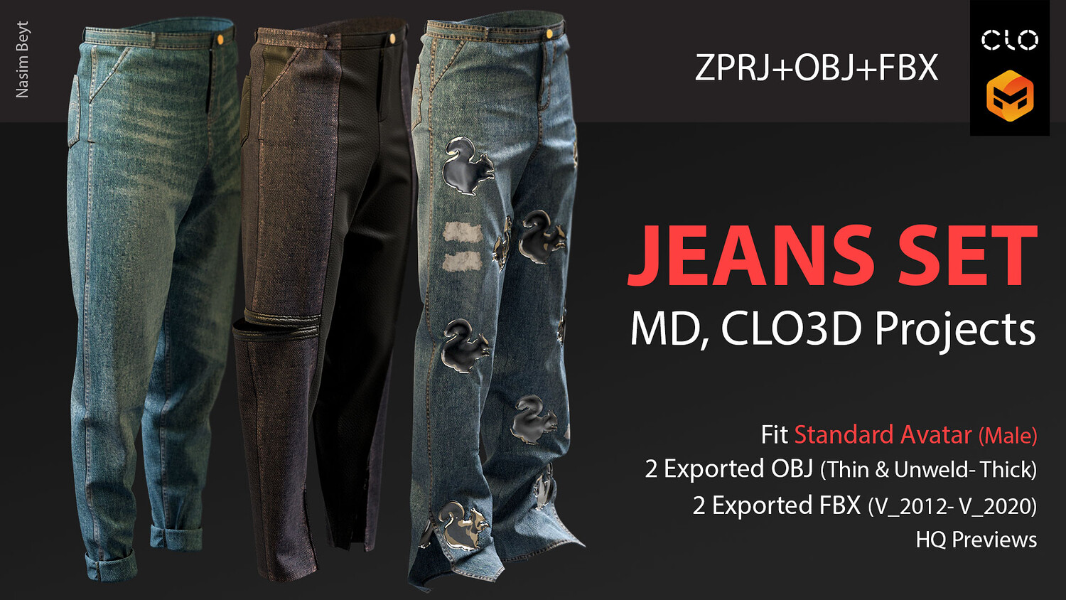 3 Different Male Jeans Sets (VOL 01)-MD-Clo3D-OBJ-FBX-Blender file