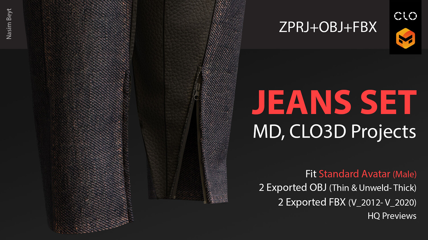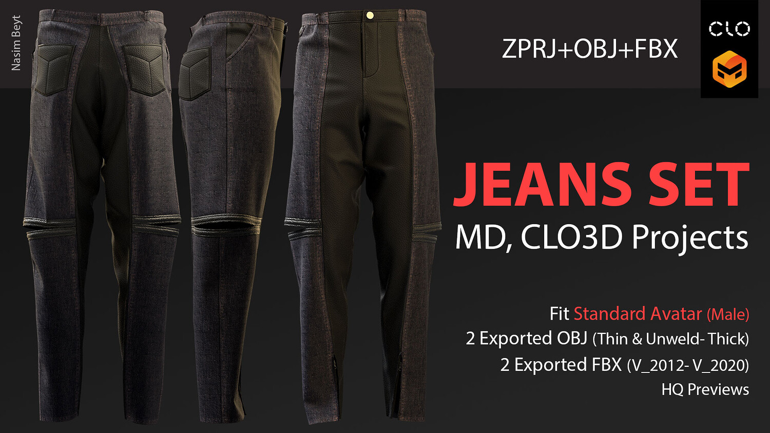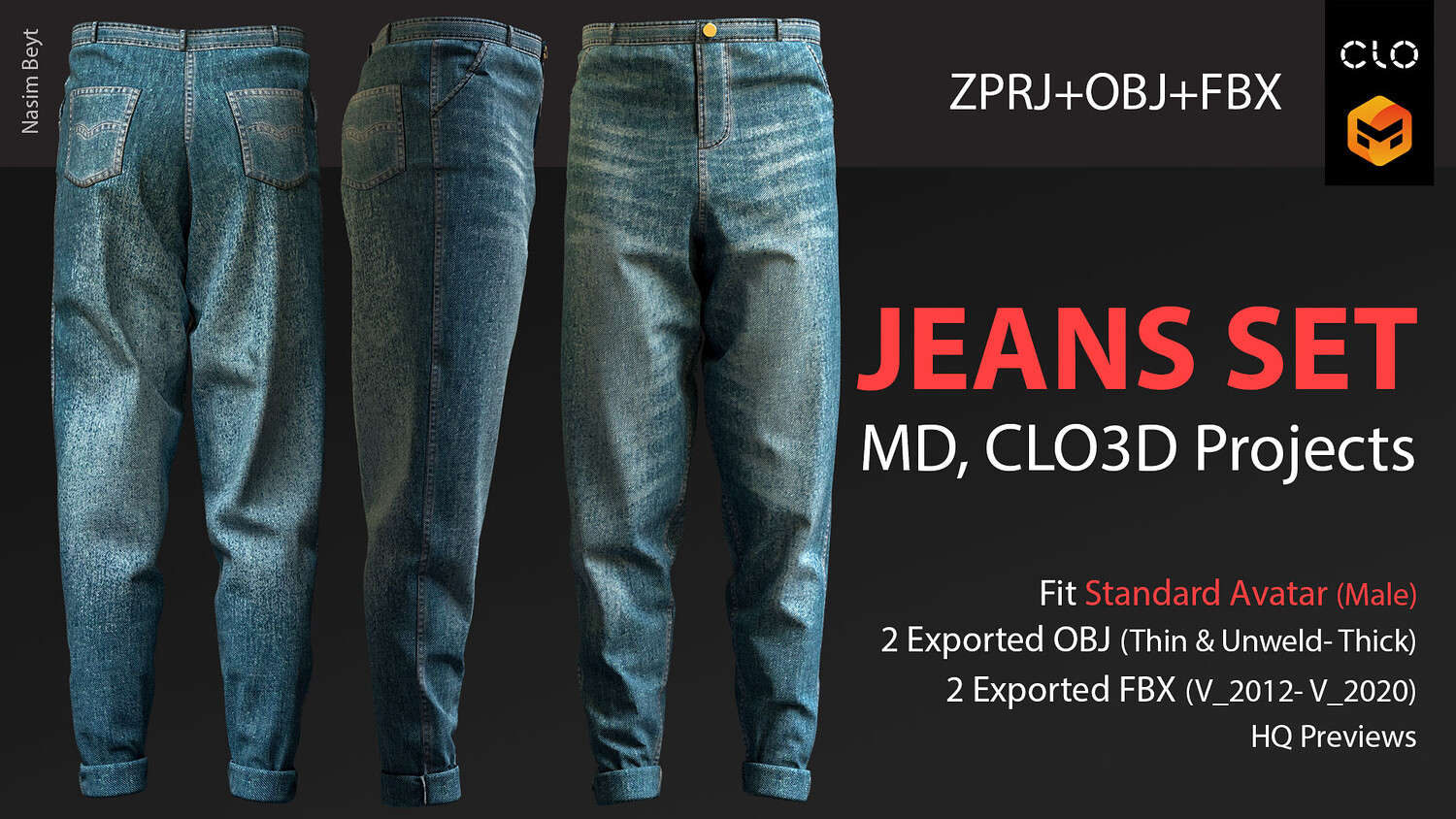 3 Different Male Jeans Sets (VOL 01)-MD-Clo3D-OBJ-FBX-Blender file