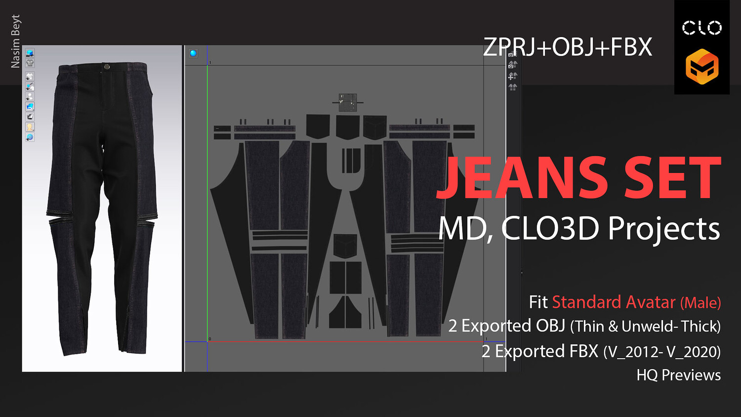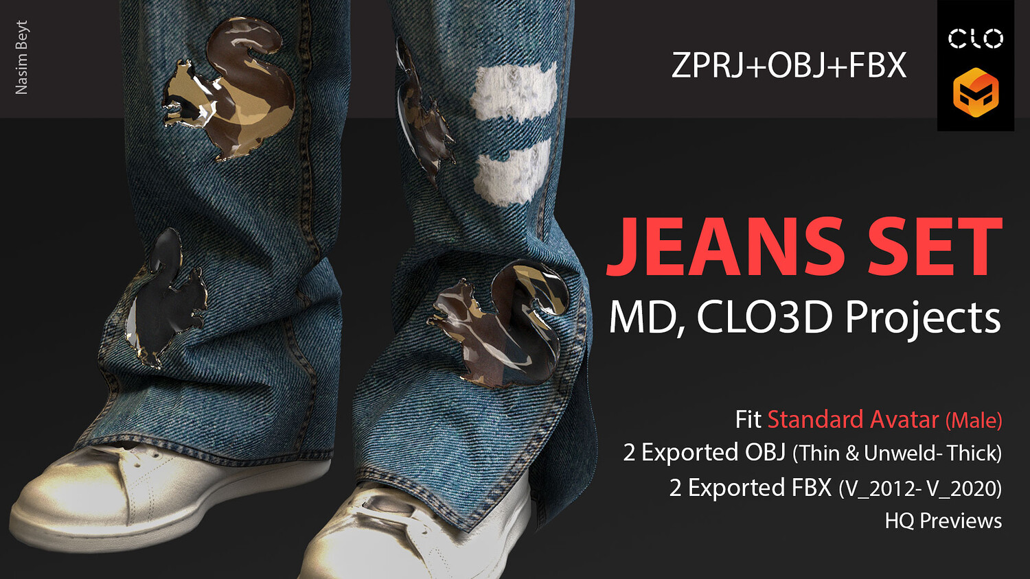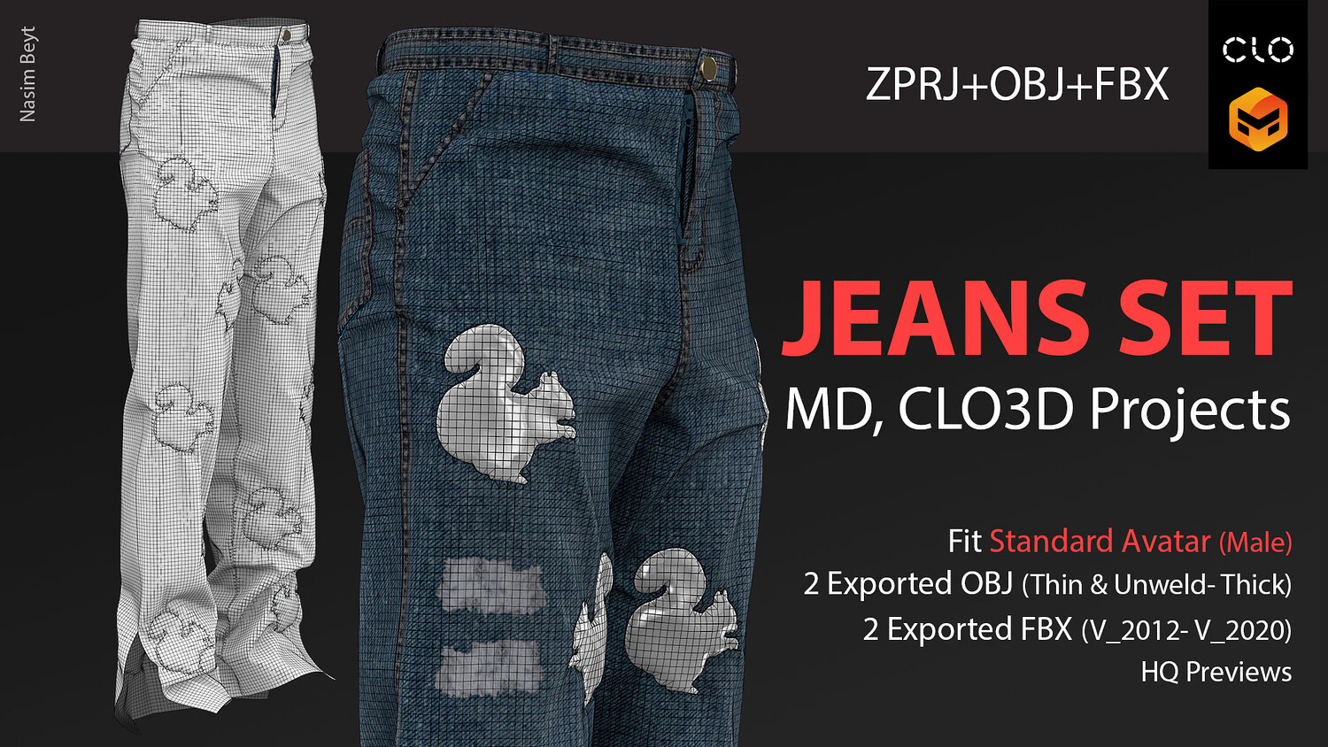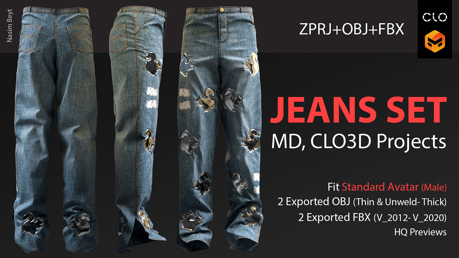 3 Different Male Jeans Sets (VOL 01)-MD-Clo3D-OBJ-FBX-Blender file