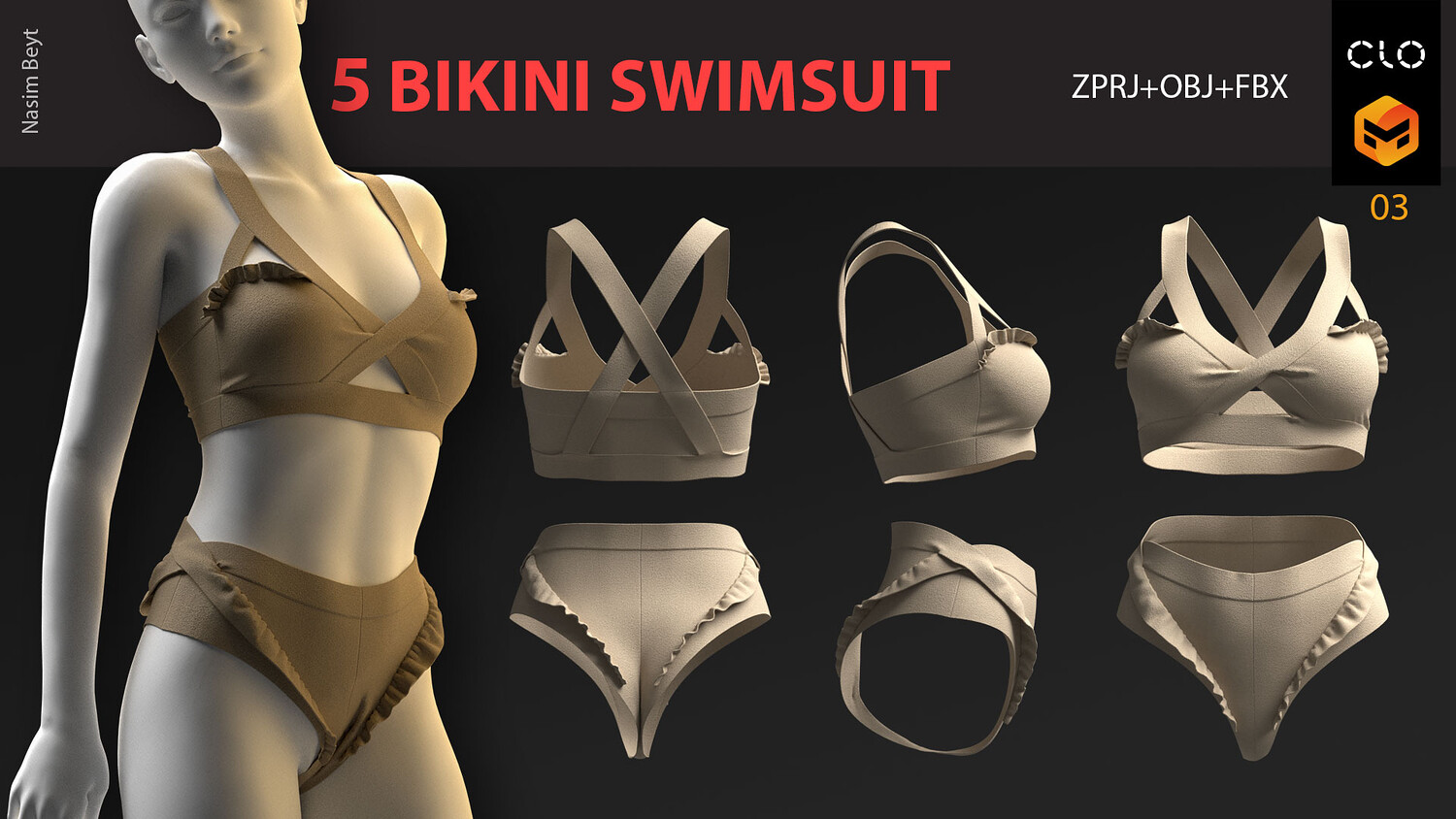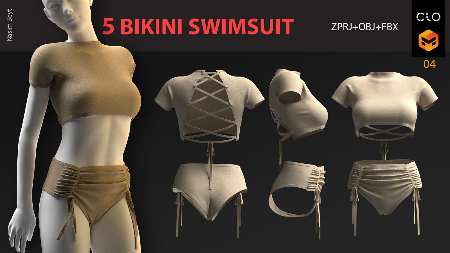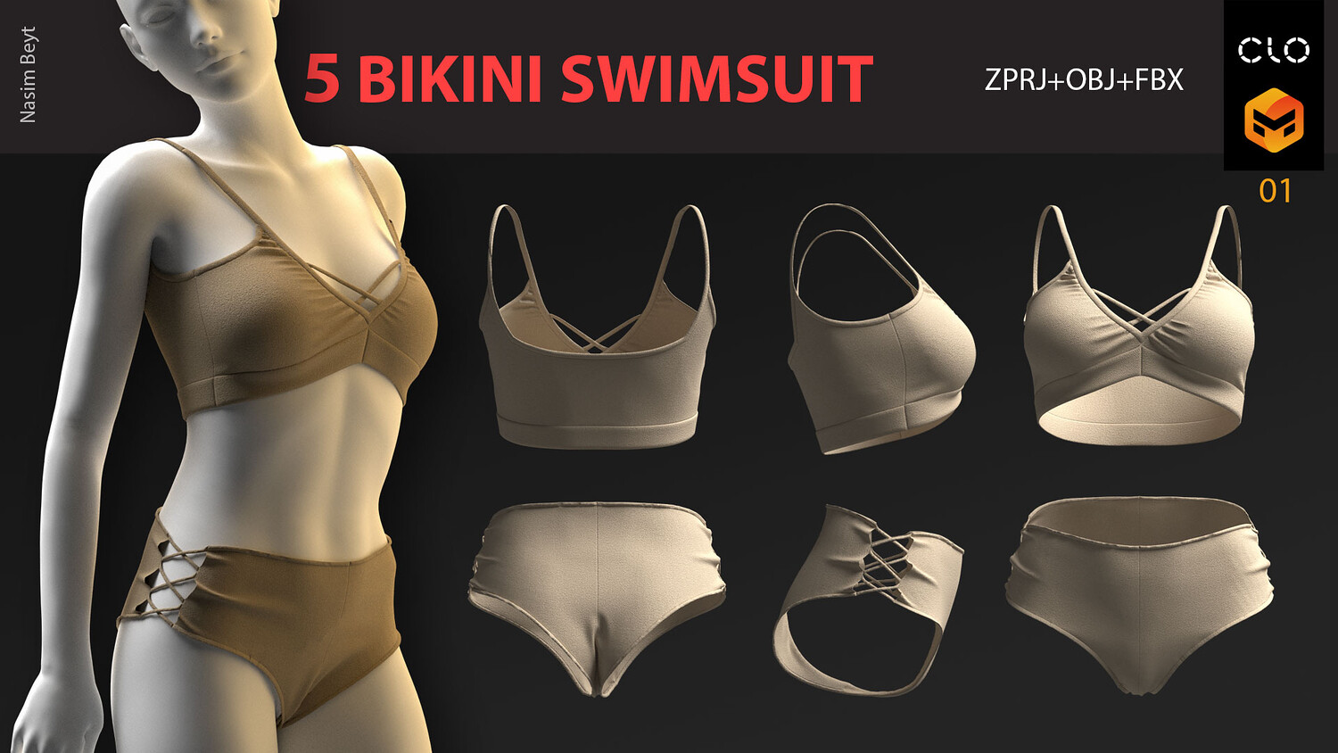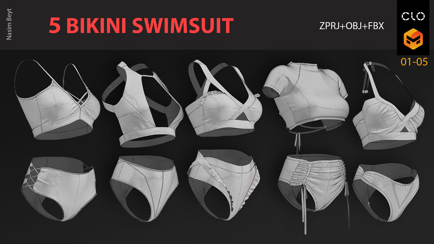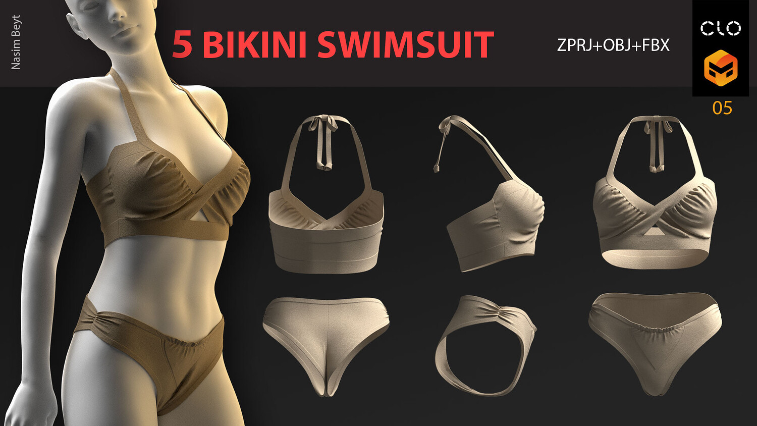 5 BIKINI SWIMSUIT PACK (VOL.01). MD-Clo3D-OBJ-FBX-Blender File