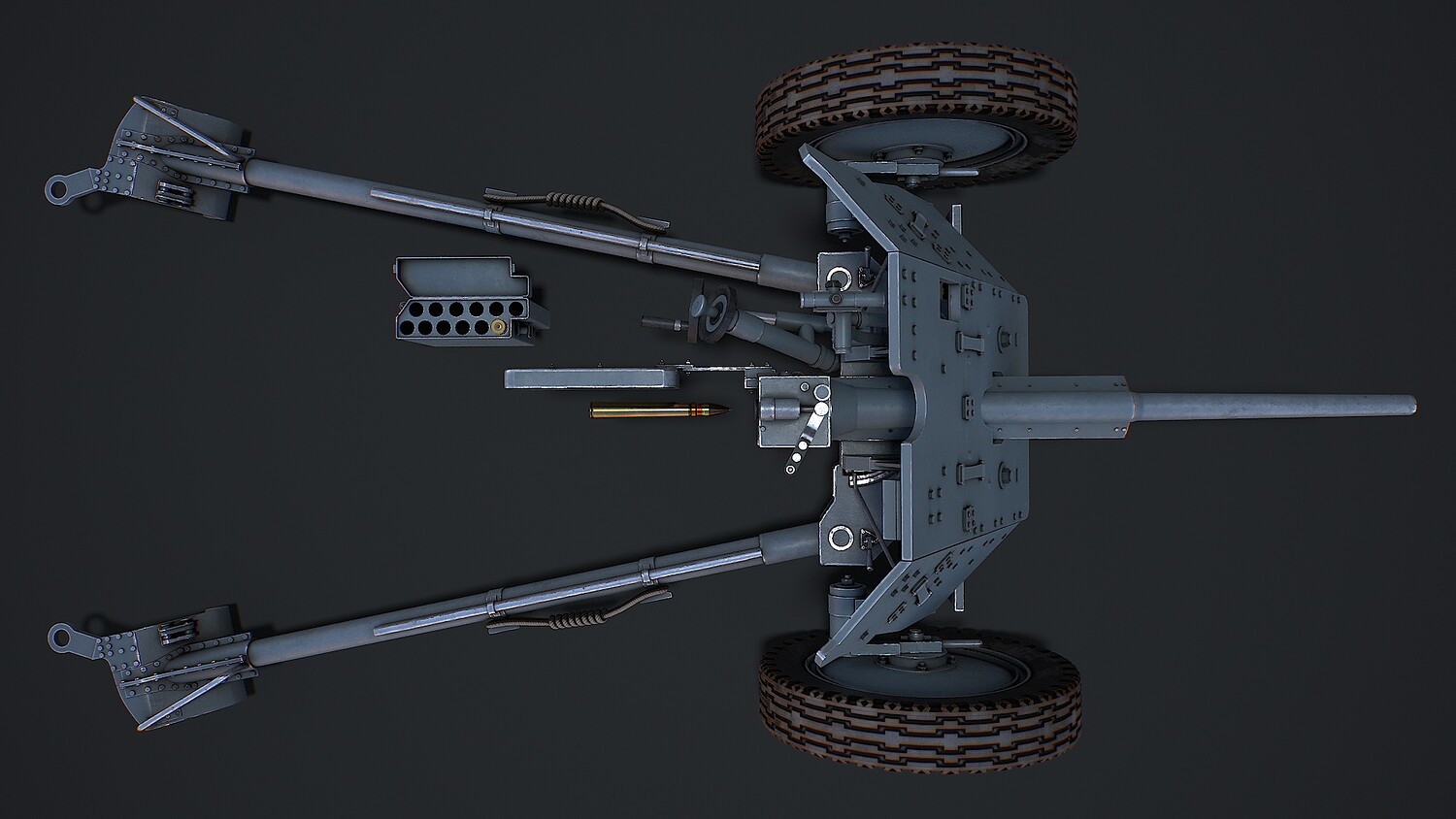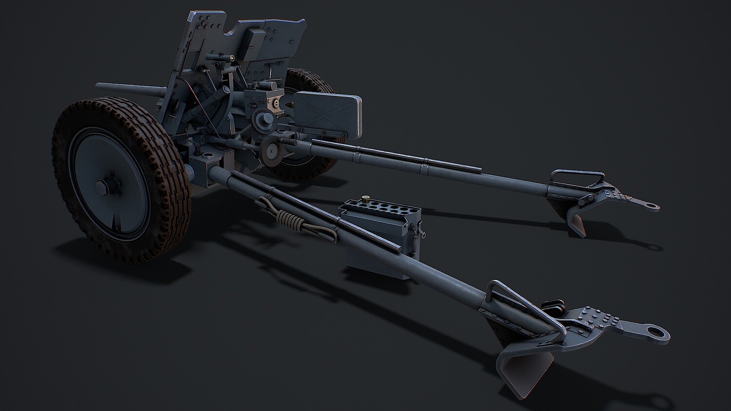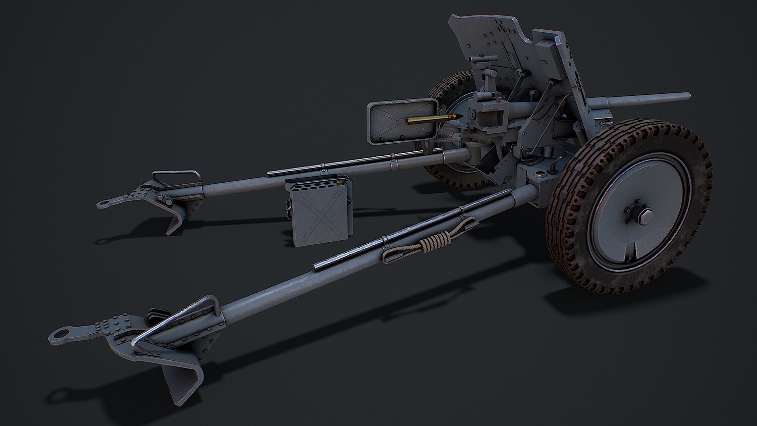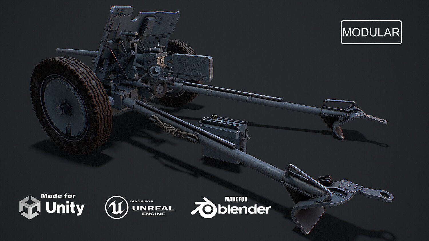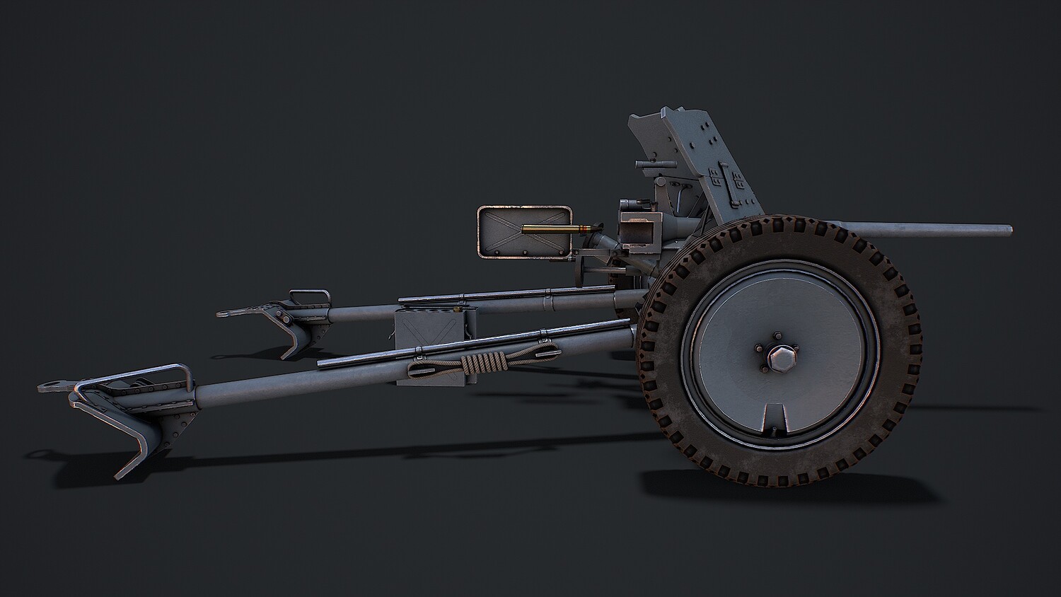 Hello. This is a high definition quality polygon of a PAK 36 (modular) 3D Model with PBR textures. Extremely detailed and realistic. Suitable for movie prop, architectural visualizations, advertising renders, games, VR, AR and other. The archive includes Obj and FBX, Marmoset scene, Blender scene, textures for the PBR: Base color, Metallic, Mixed AO, NormalOpenGL, Roughness. And also included in the archive textures for UE: BaseColor, Normal, OcclusionRoughnessMetallic. All textures are 4k resolution. The model contains 22 objects: PAK36wheelspring2, PAK36wheelspring1, PAK36wheel2, PAK36wheel1, PAK36verticalaiminghandle, PAK36sightingmechanism, PAK36shieldcover1, PAK36shieldcover, PAK36Shell001, PAK36shellcasing002, PAK36shellcasing001, PAK36shellcasing, PAK36shellboxlid, PAK36Shellbox, PAK36Shell, PAK36reloadhandle, PAK36Muzzle, PAK36lock, PAK36horizontalaiminghandle, PAK36guncarriage, PAK36Frame2, PAK36Frame_1.