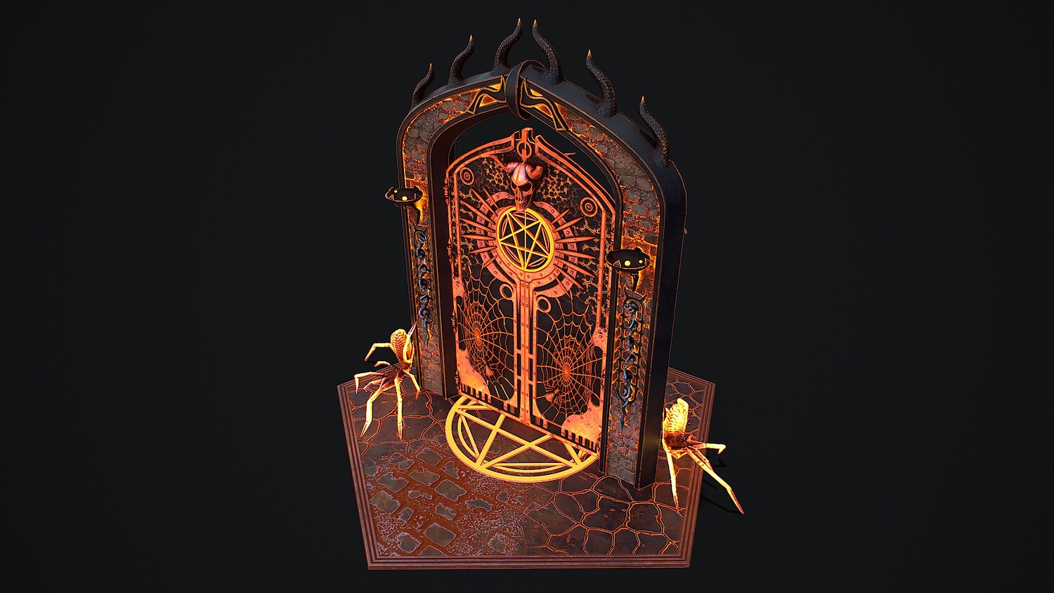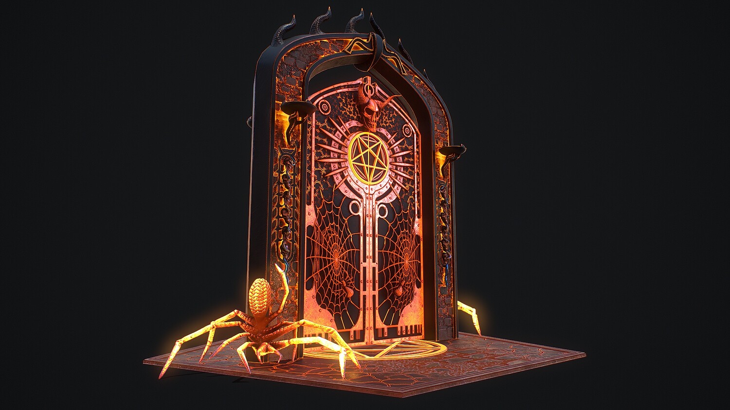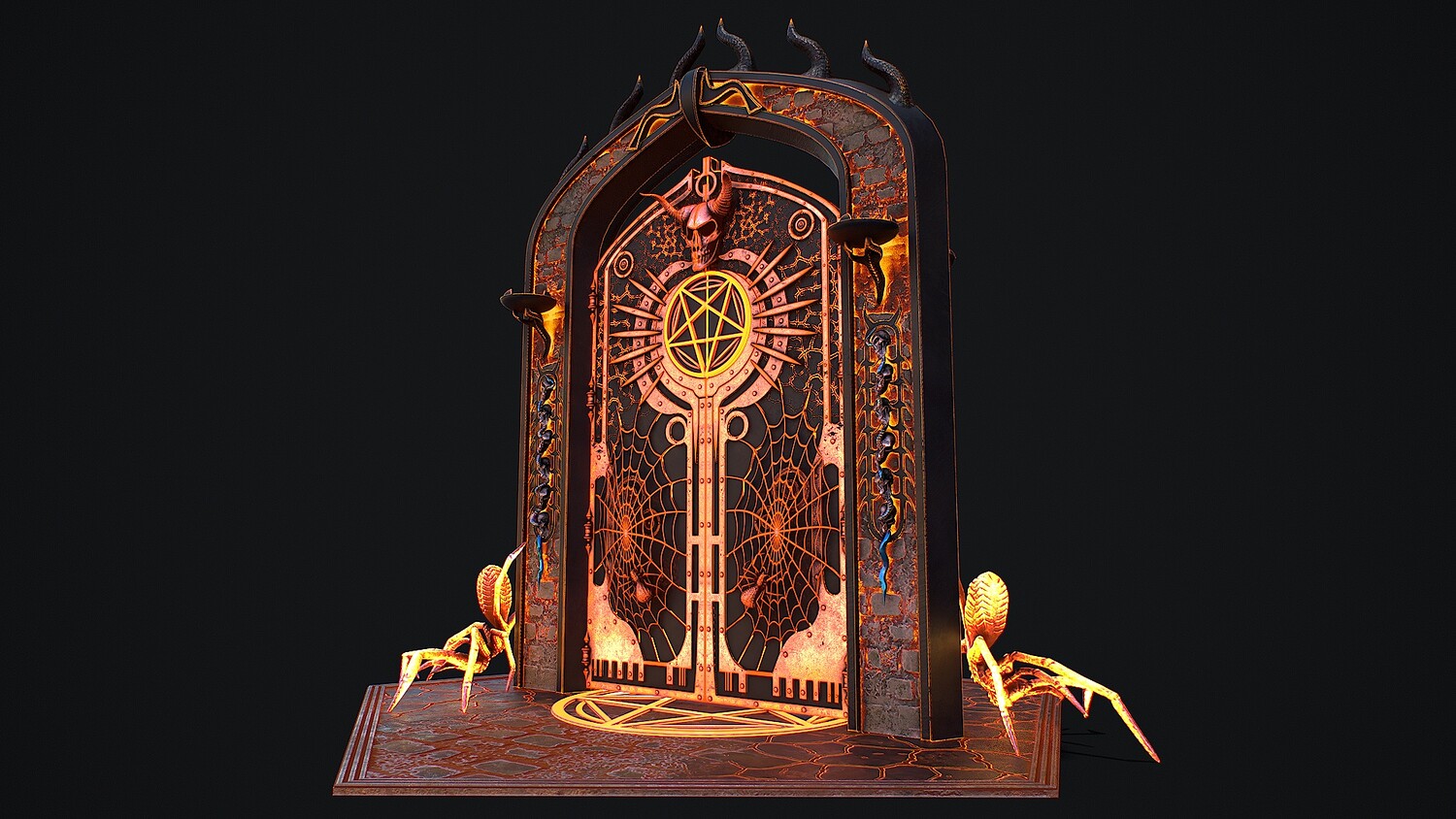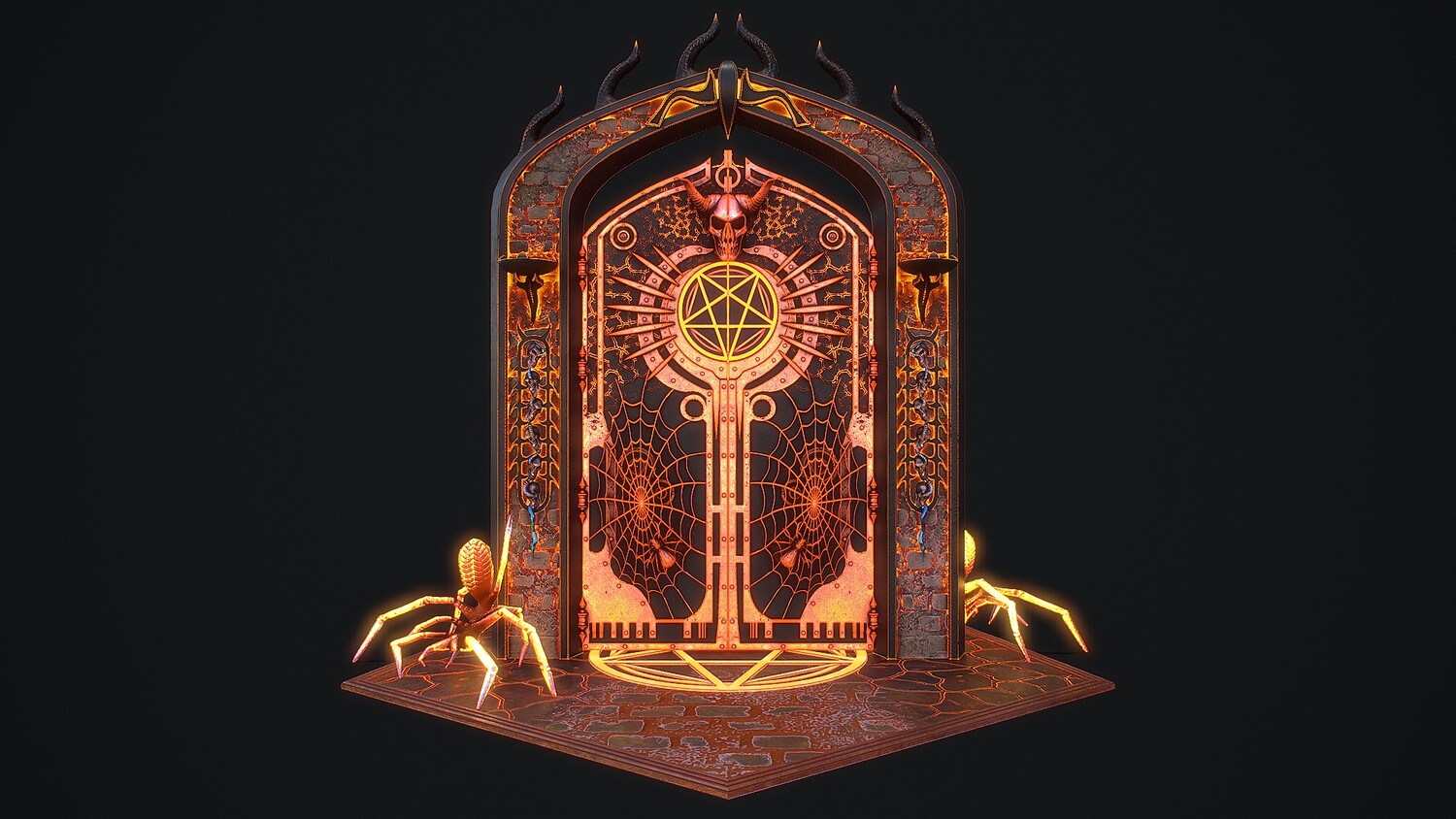 Hello. This is a high definition quality polygon of a Medieval Door 1 game ready modular 3D Model with PBR textures. Extremely detailed and realistic. Suitable for movie prop, architectural visualizations, advertising renders, games, VR, AR and other. The archive includes Obj and FBX, Marmoset scene, textures for the Unity: Base color, Metallic, Mixed AO, NormalOpenGL, Roughness. And also included in the archive textures for UE: BaseColor, Normal, OcclusionRoughnessMetallic. All textures are 4k resolution. The model contains 521 objects: Flame - 512th, MedievalDoor1Door, MedievalDoor1Door1, MedievalDoor1essence, MedievalDoor1essence001, MedievalDoor1Floor, MedievalDoor1Pentacle, MedievalDoor1_Portal.