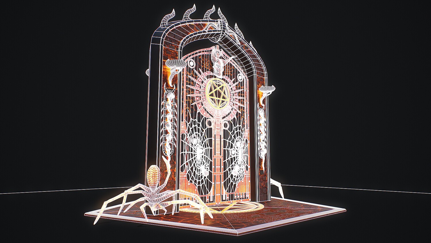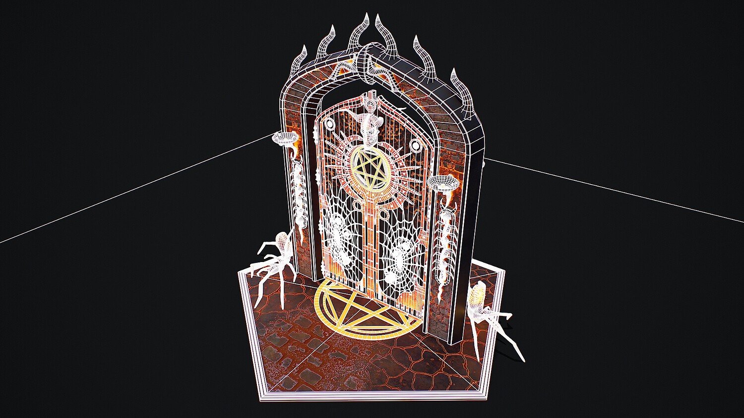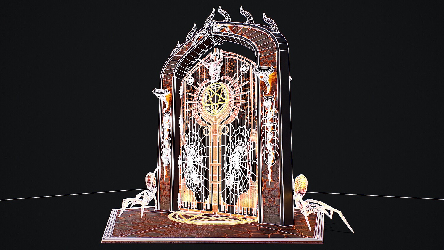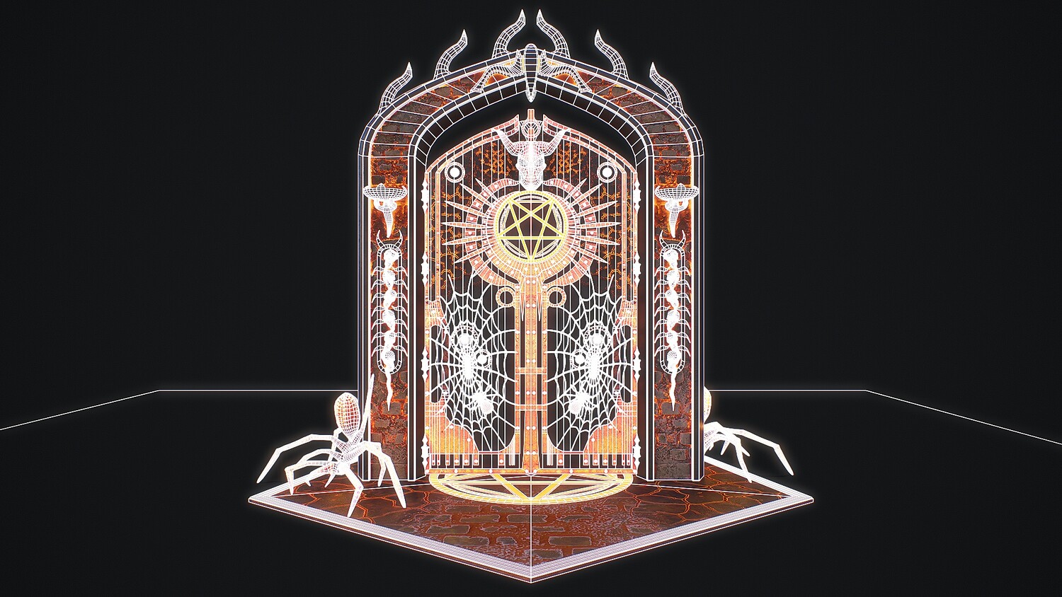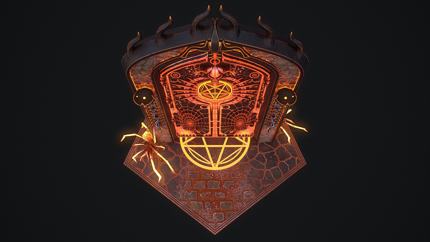Hello. This is a high definition quality polygon of a Medieval Door 1 game ready modular 3D Model with PBR textures. Extremely detailed and realistic. Suitable for movie prop, architectural visualizations, advertising renders, games, VR, AR and other. The archive includes Obj and FBX, Marmoset scene, textures for the Unity: Base color, Metallic, Mixed AO, NormalOpenGL, Roughness. And also included in the archive textures for UE: BaseColor, Normal, OcclusionRoughnessMetallic. All textures are 4k resolution. The model contains 521 objects: Flame - 512th, MedievalDoor1Door, MedievalDoor1Door1, MedievalDoor1essence, MedievalDoor1essence001, MedievalDoor1Floor, MedievalDoor1Pentacle, MedievalDoor1_Portal.
