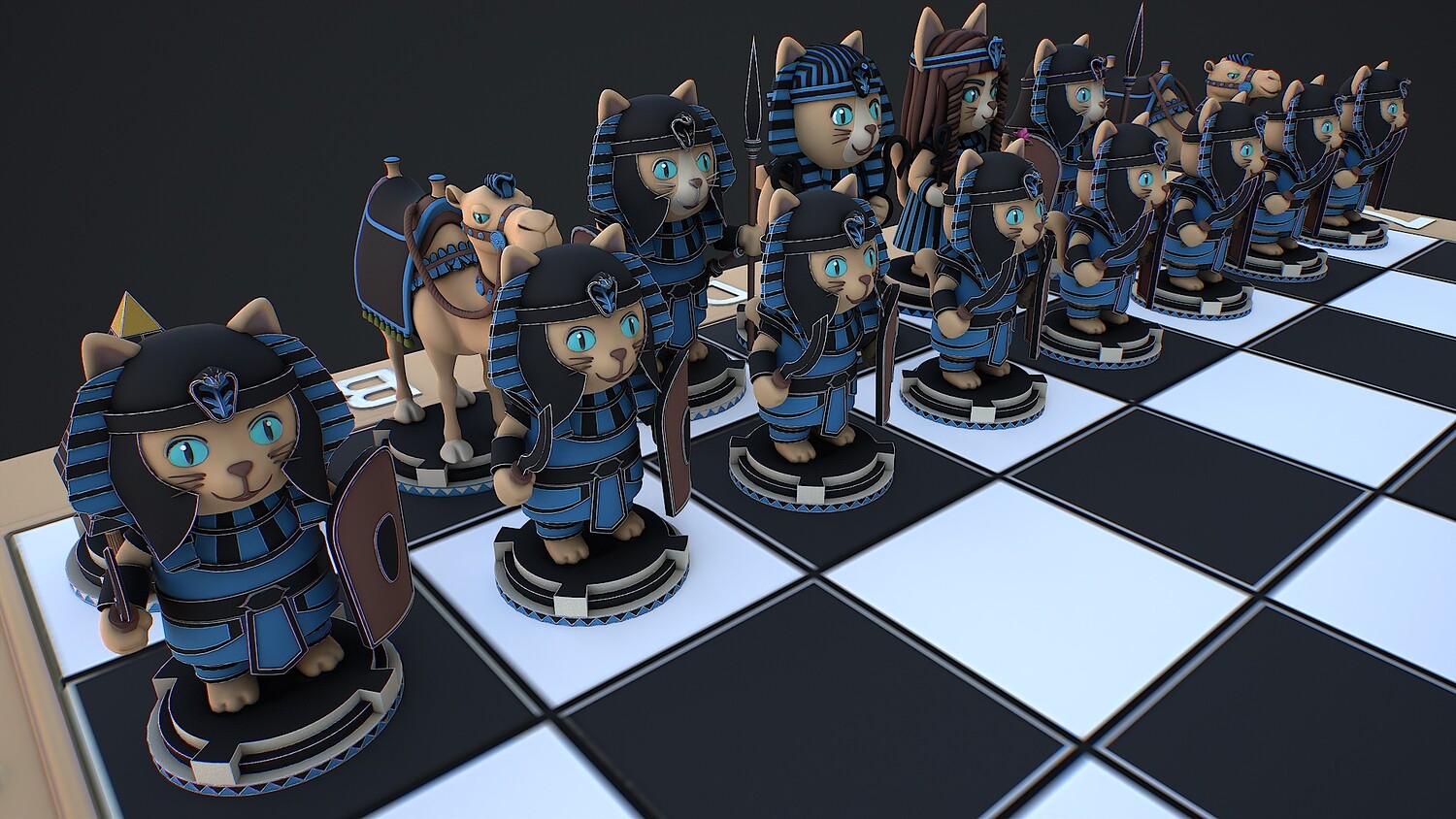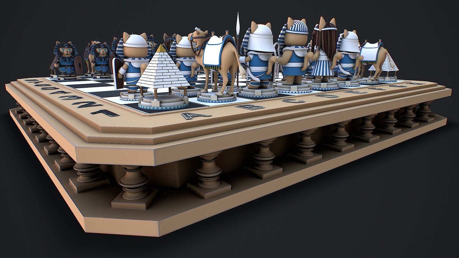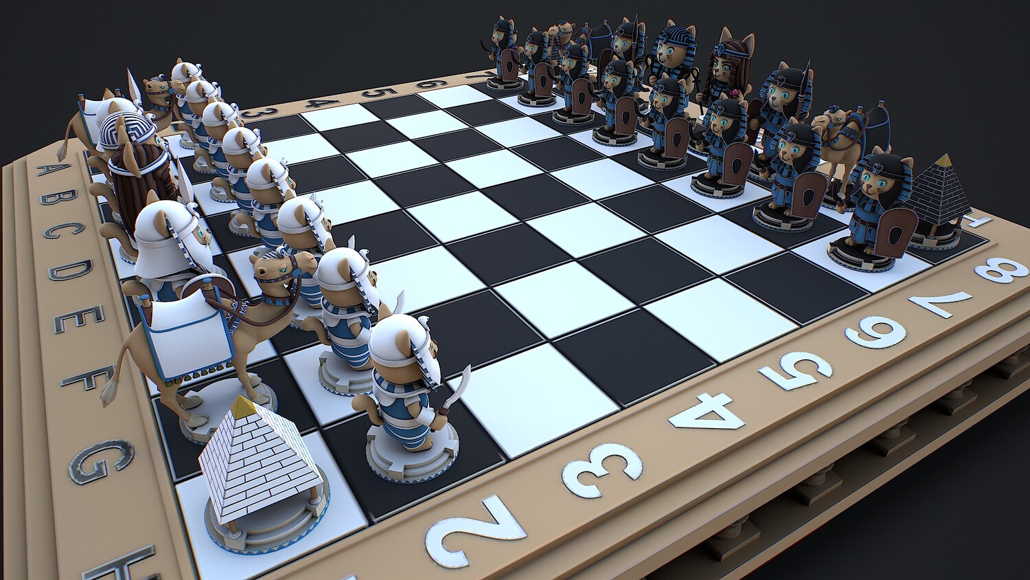 chess, chessboard, egyptianchess, catfigures, strategy, GameBoard, stylized, game ready, AncientEgypt, camel, ancient, war, historical, tabletop, chess pieces, pyramid, pharaoh, battle, warriors, low poly,