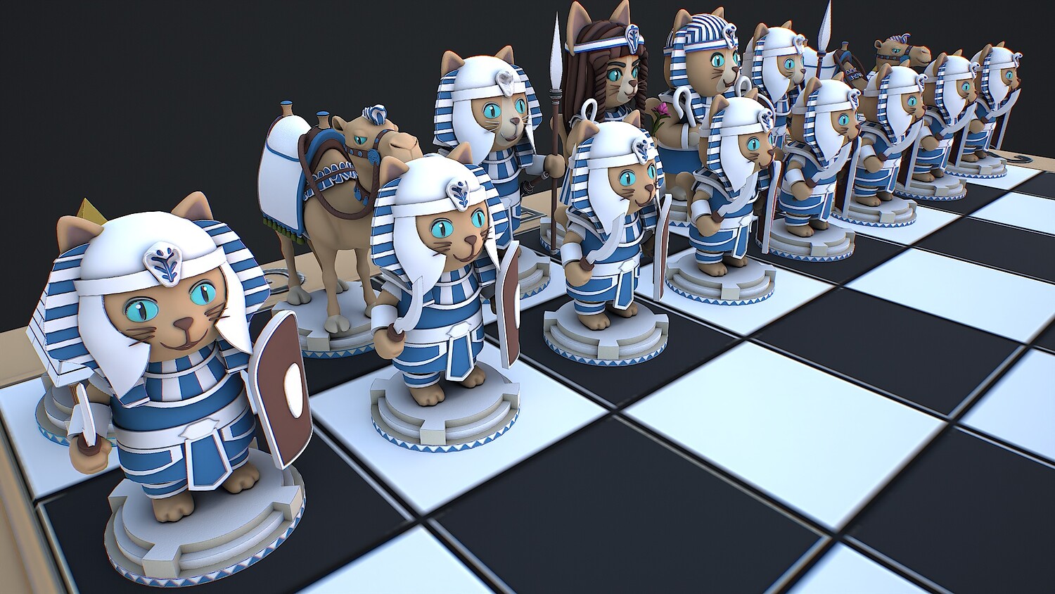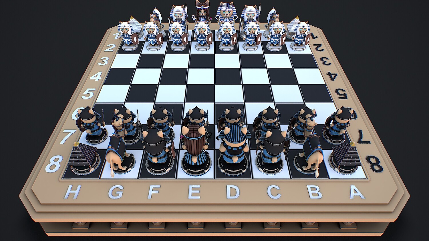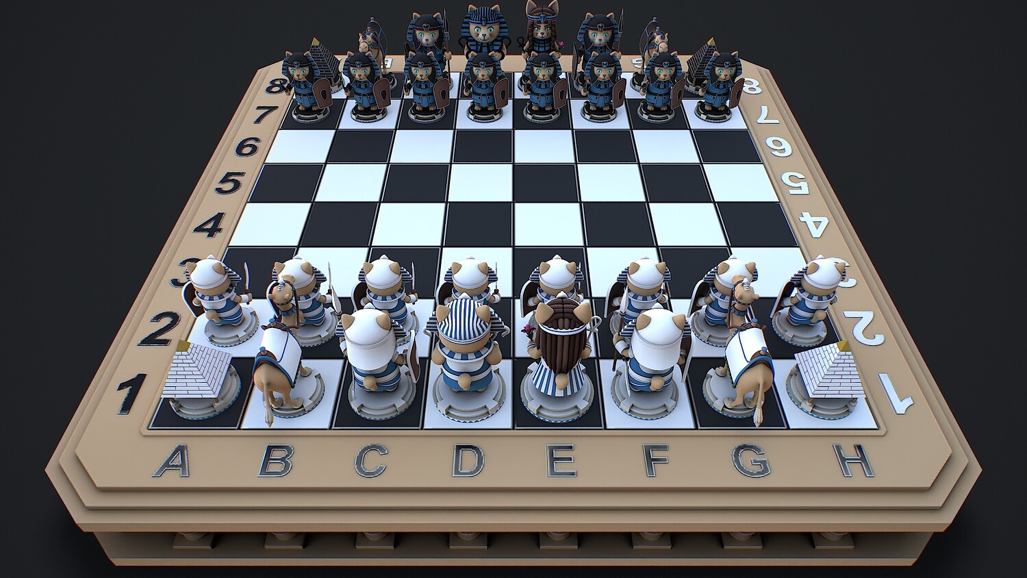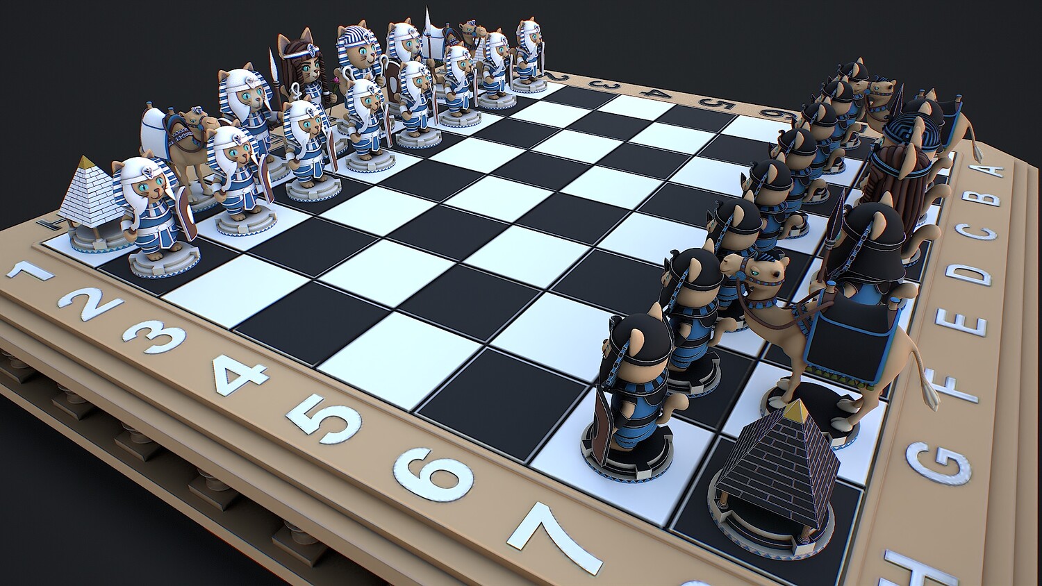 chess, chessboard, egyptianchess, catfigures, strategy, GameBoard, stylized, game ready, AncientEgypt, camel, ancient, war, historical, tabletop, chess pieces, pyramid, pharaoh, battle, warriors, low poly,
