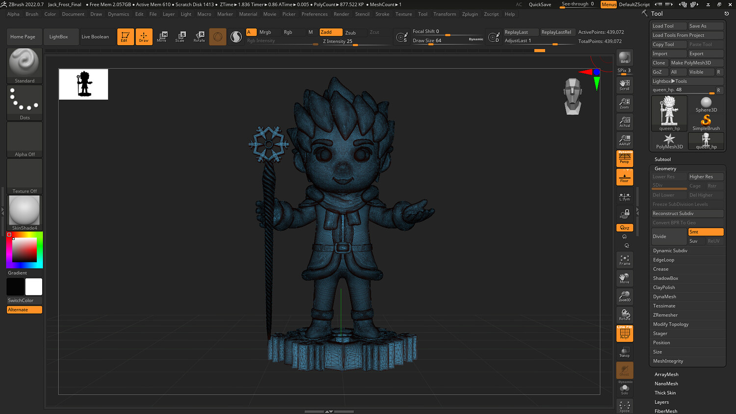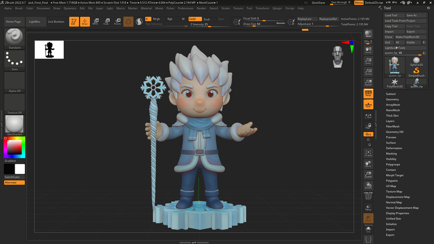 This is an extremely detailed, stylized 3D model of a Jack Frost, created using PBR workflows. Meticulously crafted for high-end use in video production, visualizations, AAA games, VR/AR applications, and digital art.