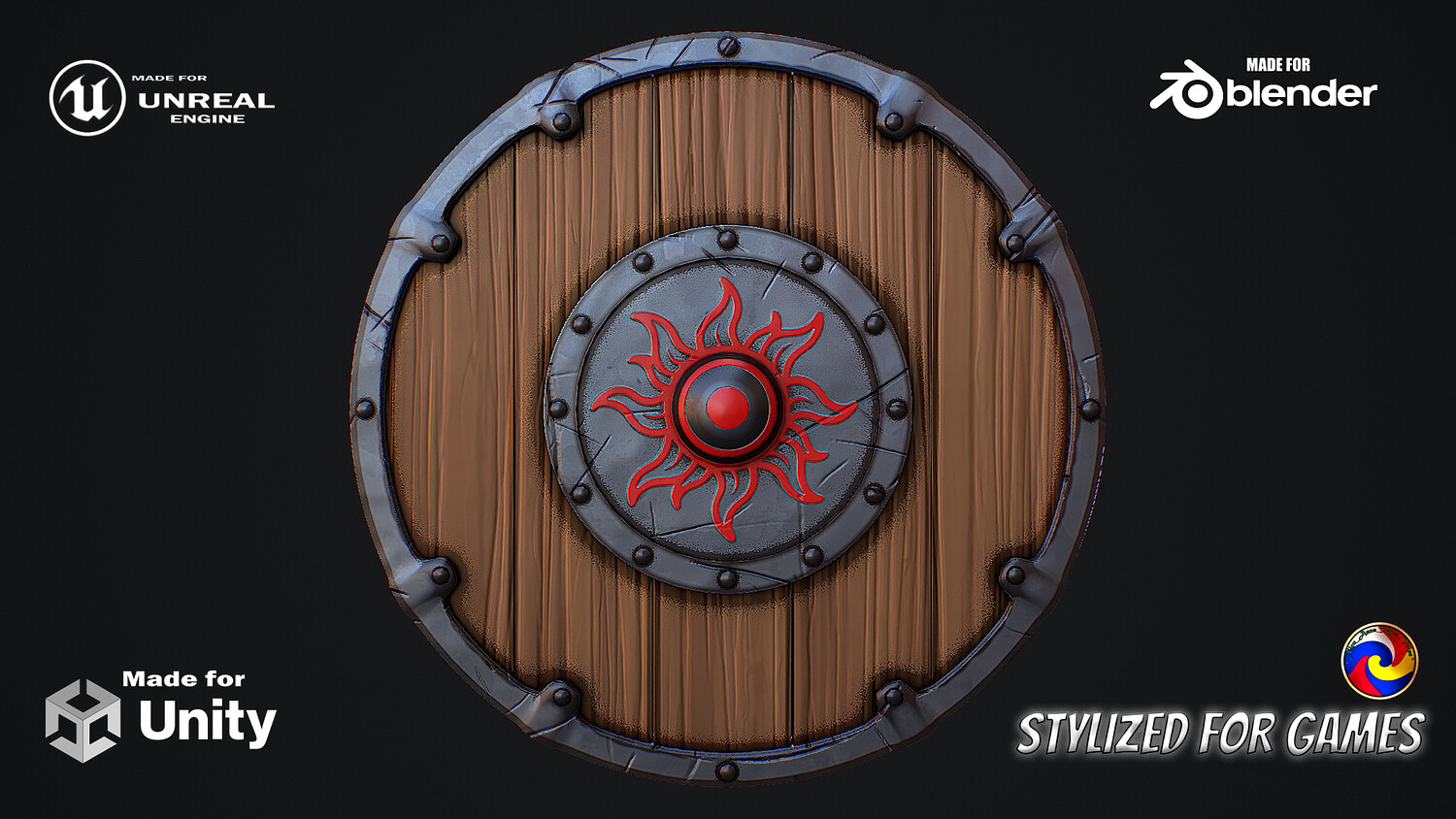 Preview on Sketchfab https://sketchfab.com/3d-models/viking-shield-stylized-game-ready-3d-model-e928d2000b1246f78b3d3f5f420ac75a