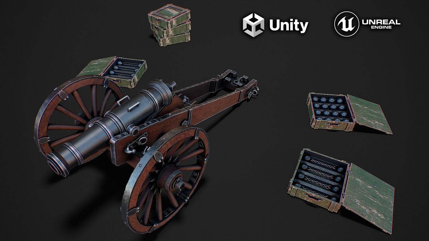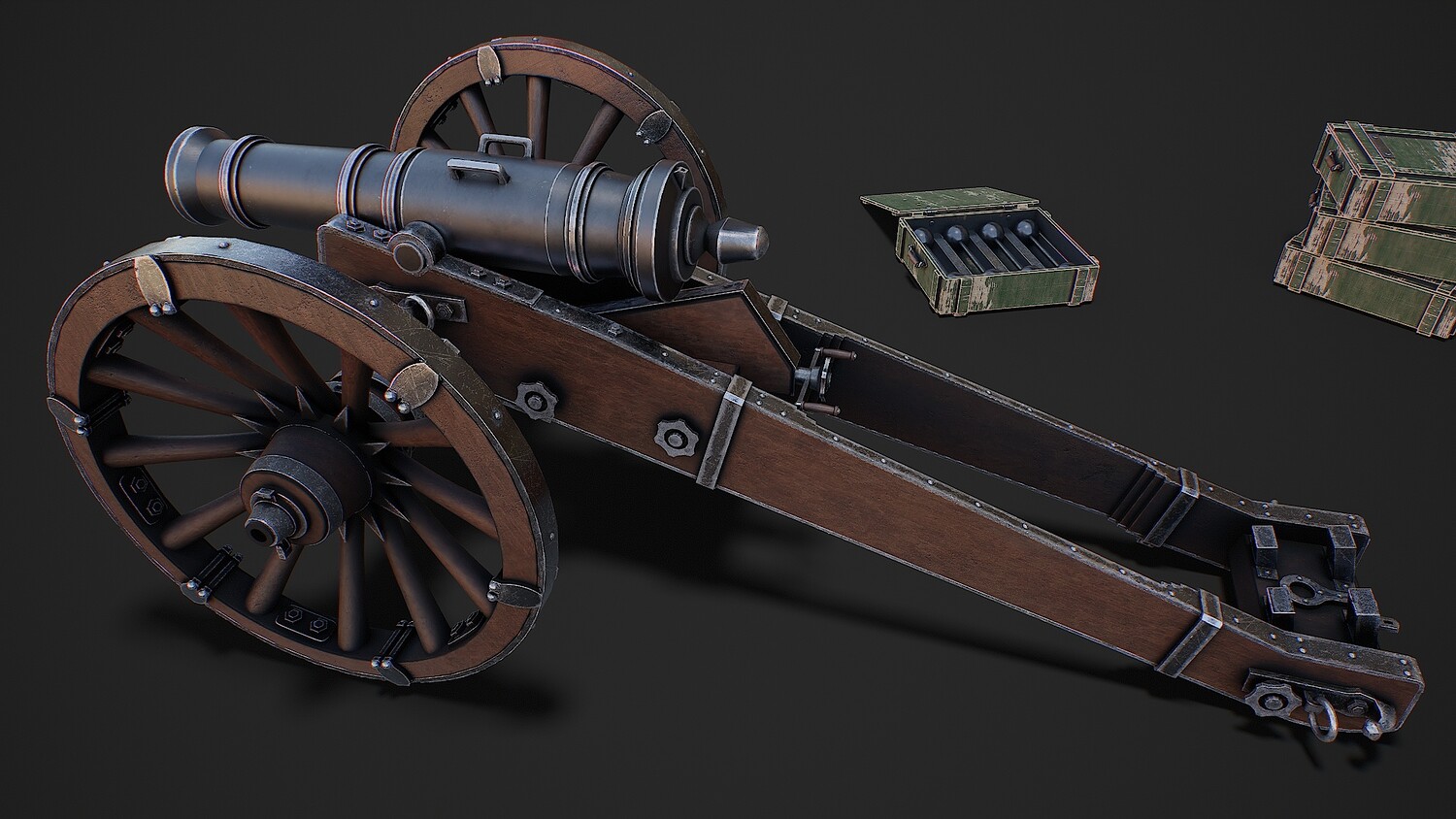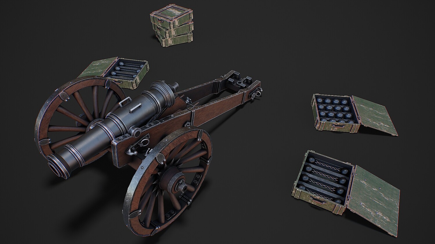 Preview on Sketchfab https://sketchfab.com/3d-models/cannon-with-boxes-game-ready-3d-model-f2865b564c984a6a82152890e9cedc28