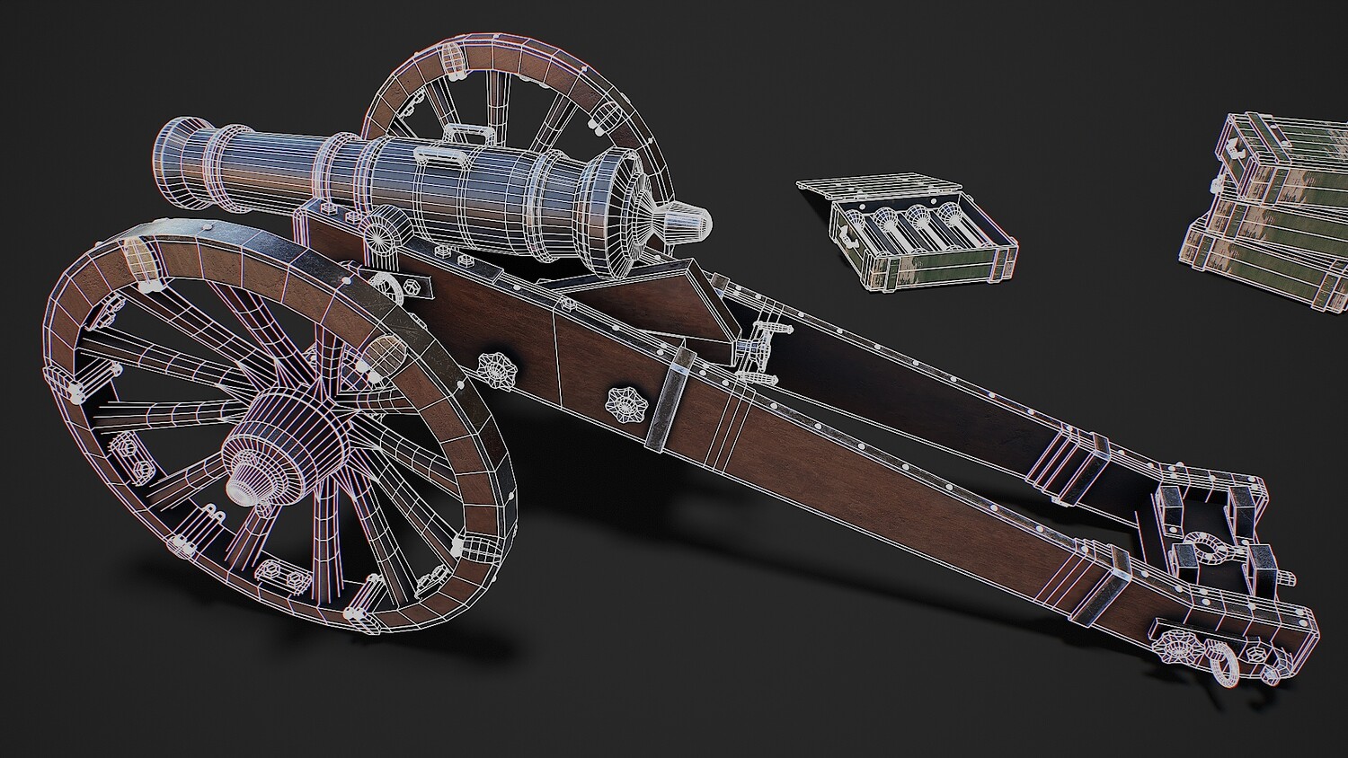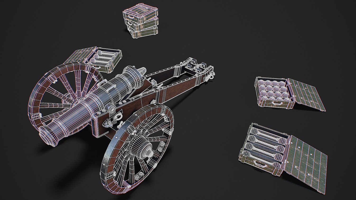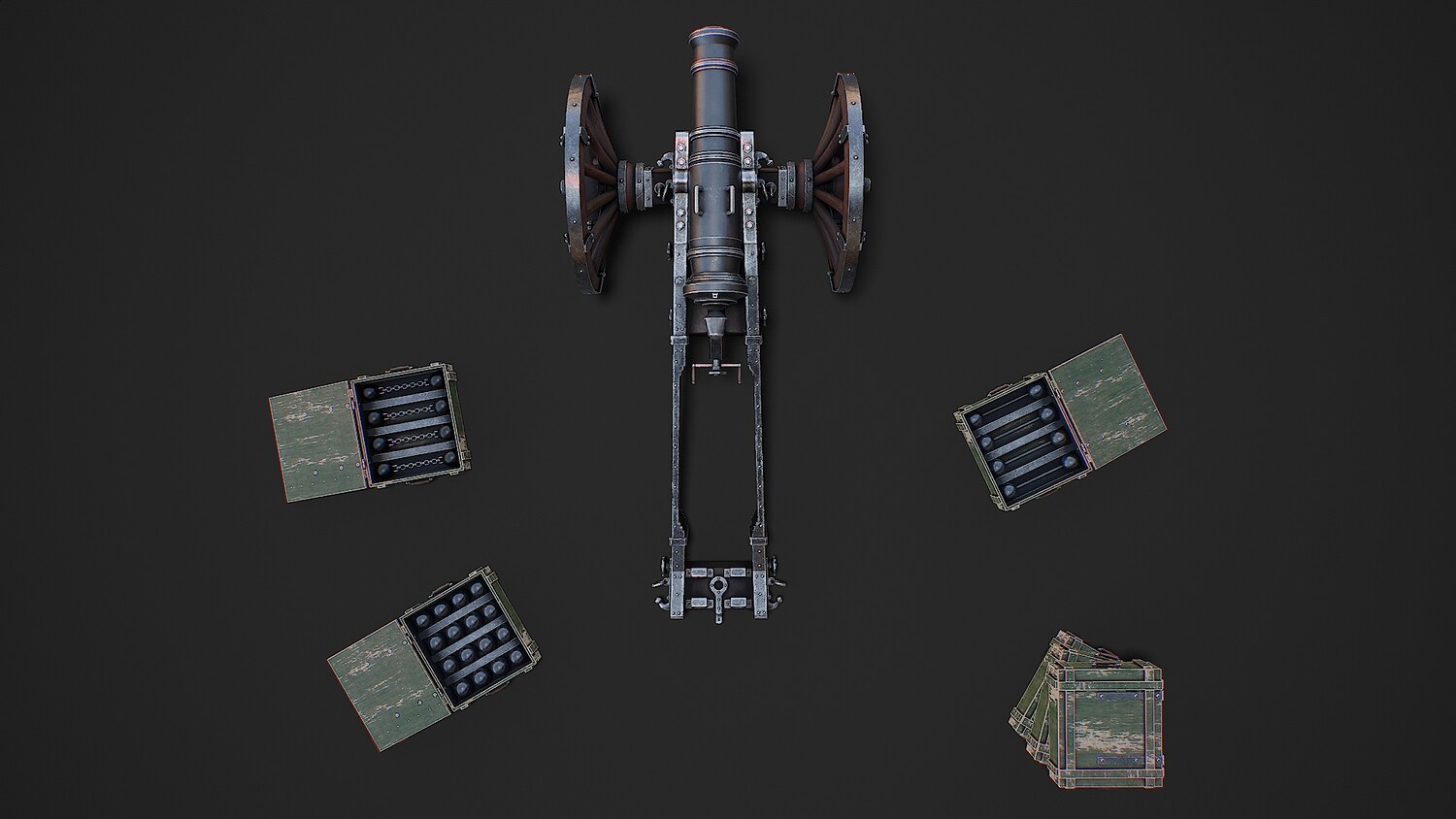 Preview on Sketchfab https://sketchfab.com/3d-models/cannon-with-boxes-game-ready-3d-model-f2865b564c984a6a82152890e9cedc28