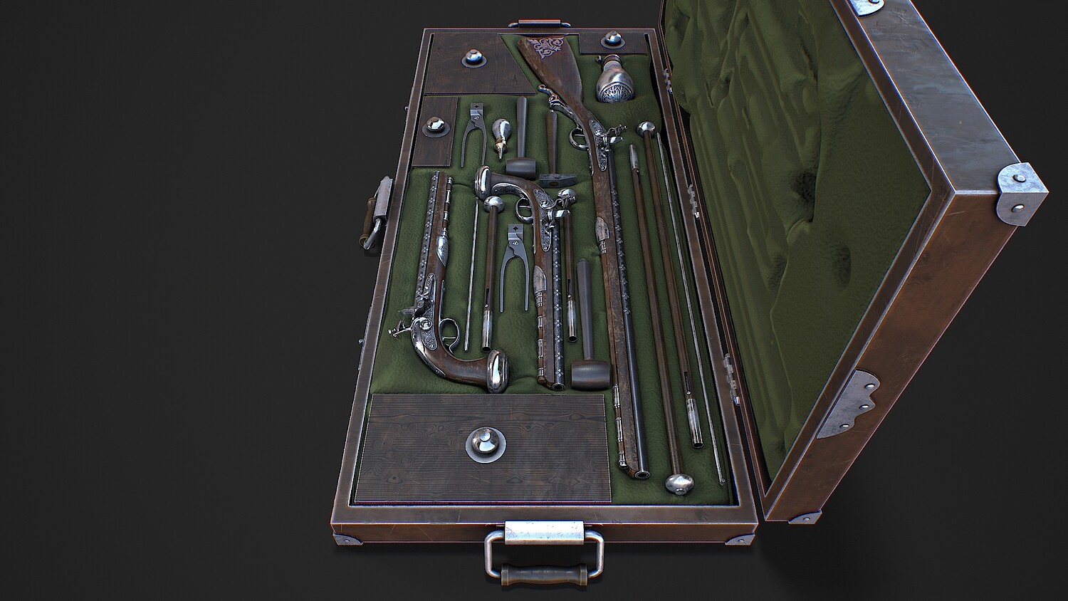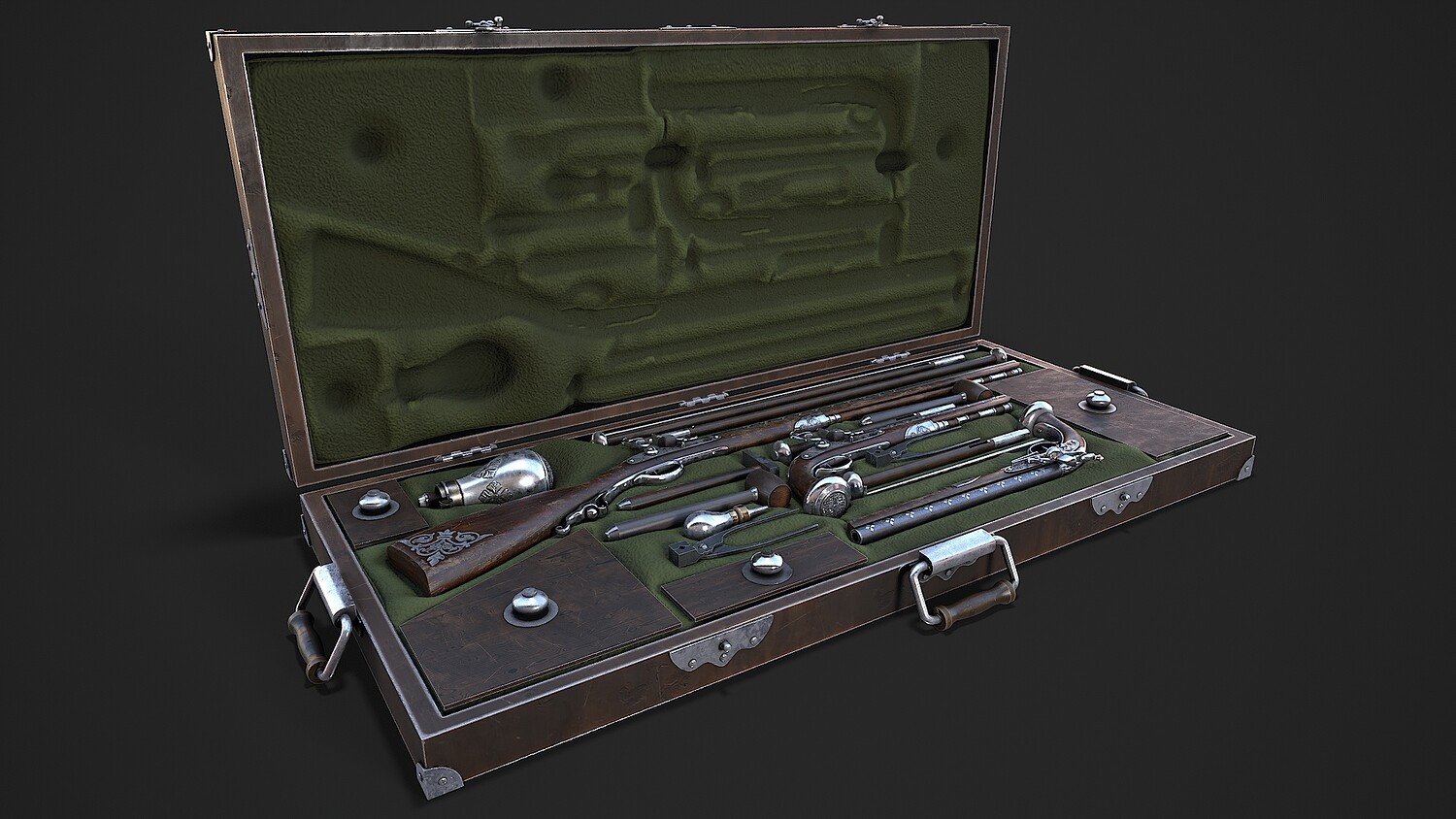 Preview on Sketchfab https://sketchfab.com/3d-models/flintlock-gun-case-55ab968f011a46db80efff3f206761a7