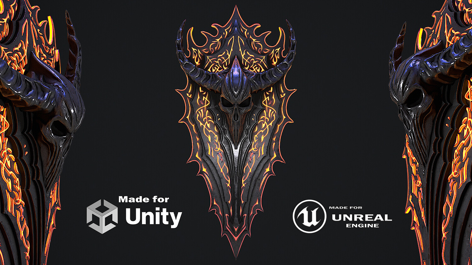 Hello. This is a high definition quality polygon of a Fantasy shield 1 3D Model with PBR textures. Extremely detailed and realistic. Suitable for movie prop, architectural visualizations, advertising renders, games, VR, AR and other. The archive includes Obj and FBX, Marmoset scene, textures for the Unity: Base color, Metallic, Mixed AO, NormalOpenGL, Roughness. And also included in the archive textures for UE: BaseColor, Normal, OcclusionRoughnessMetallic. All textures are 4k resolution. The number of materials corresponds to the number of main objects in the scene. There are 2 materials in the scene: Fantasyshield1, Fantasyshield_decor. The model contains 2 objects.