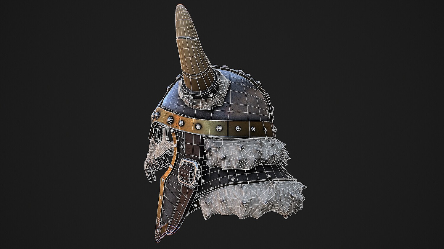 This is an extremely detailed, photorealistic 3D model of a Fantasy Helmet, created using PBR workflows. Meticulously crafted for high-end use in video production, visualizations, AAA games, VR/AR applications, and digital art.