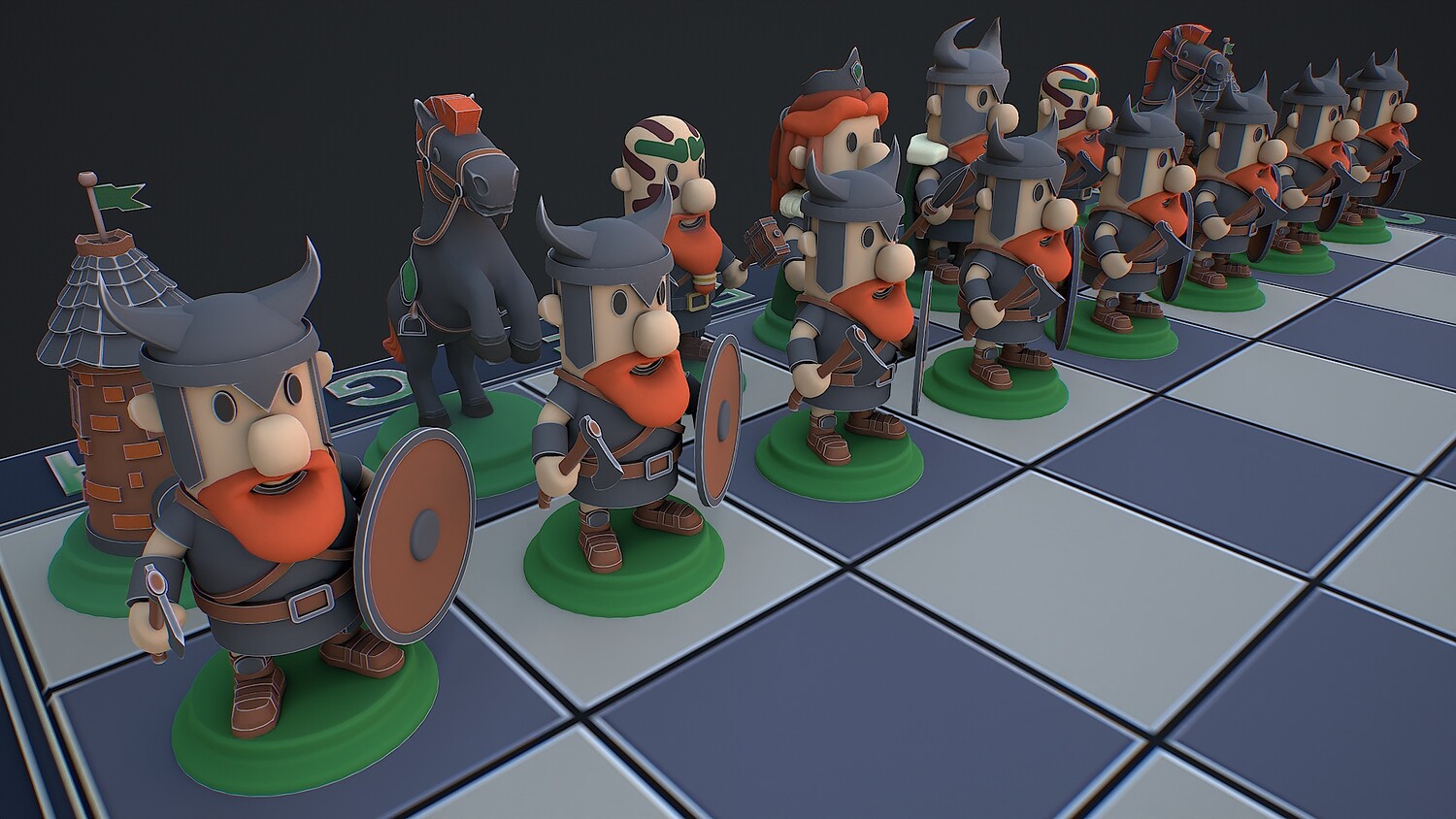 chess, chessboard, vikings, romans, strategy, board game, stylized, game ready, roman empire, norse, ancient, war, historical, tabletop, chess pieces, legion, scandinavia, battle, warriors, low poly,