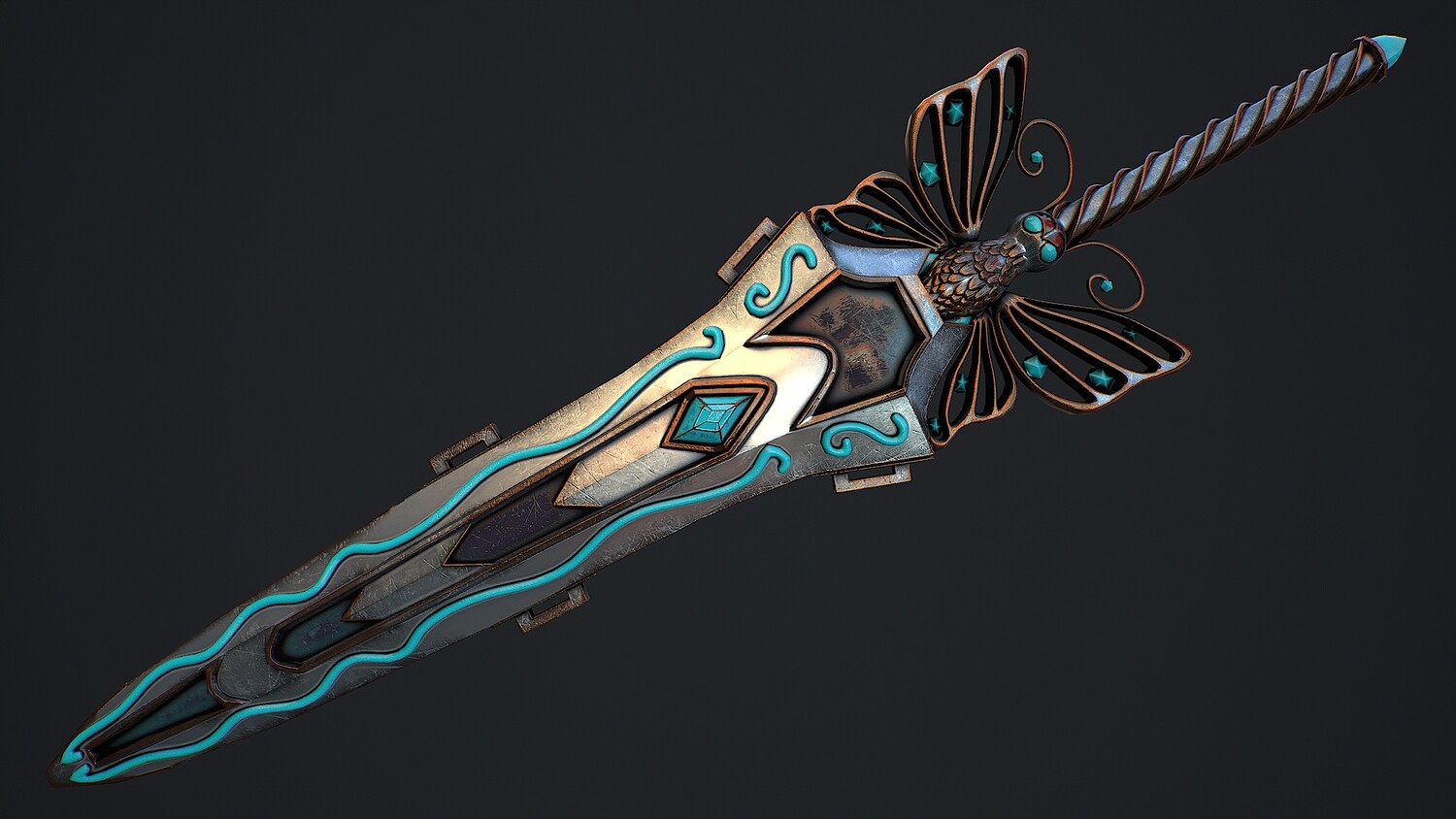 Preview on Sketchfab https://sketchfab.com/3d-models/sword-batterfly-with-scabbard-5cf5202d6df747d3b8f42de7f04ddf94