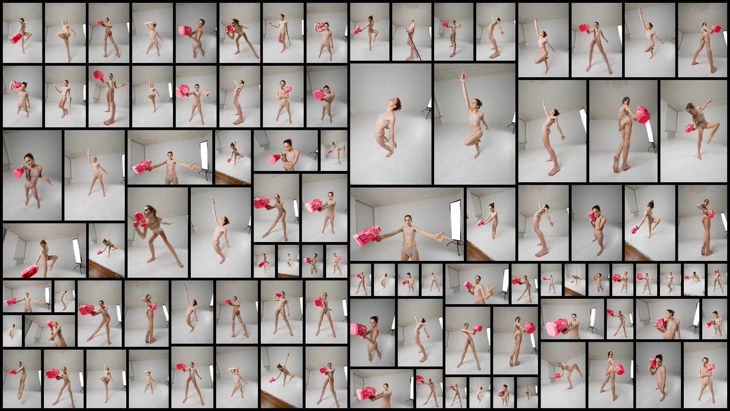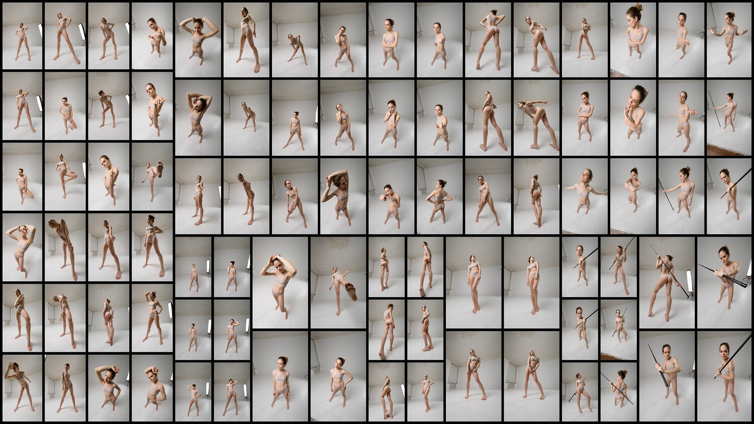 Hi there! We're excited to share with you this pack of over 430 photographs featuring a model captured using an ultra-wide-angle lens. The lens creates a unique and comedic look by distorting body proportions, resulting in some really interesting shots! You'll find photos taken from various viewpoints, including above and below, which really enhances the effect of perspective distortion. Props, like a blaster pistol, were even used during the shoot! We think this collection is really valuable for studying perspective distortions due to the variety of poses. Previewing gives you a glimpse into the content and style of the photographs. This pack is perfect for artists and designers who are involved in creating characters, concept art, comics, illustrations, and sketches. It offers a unique tool for creativity and inspiration.