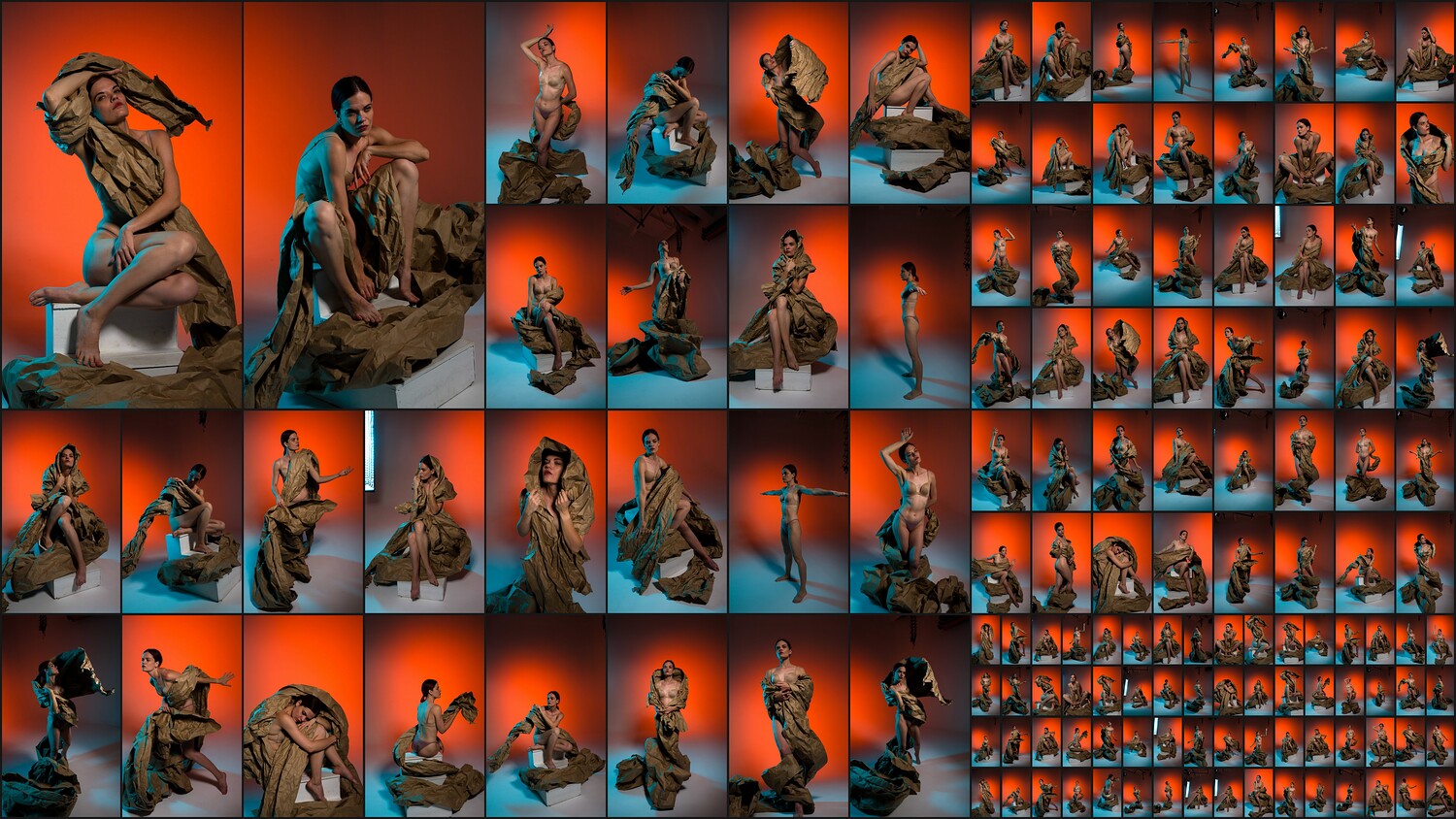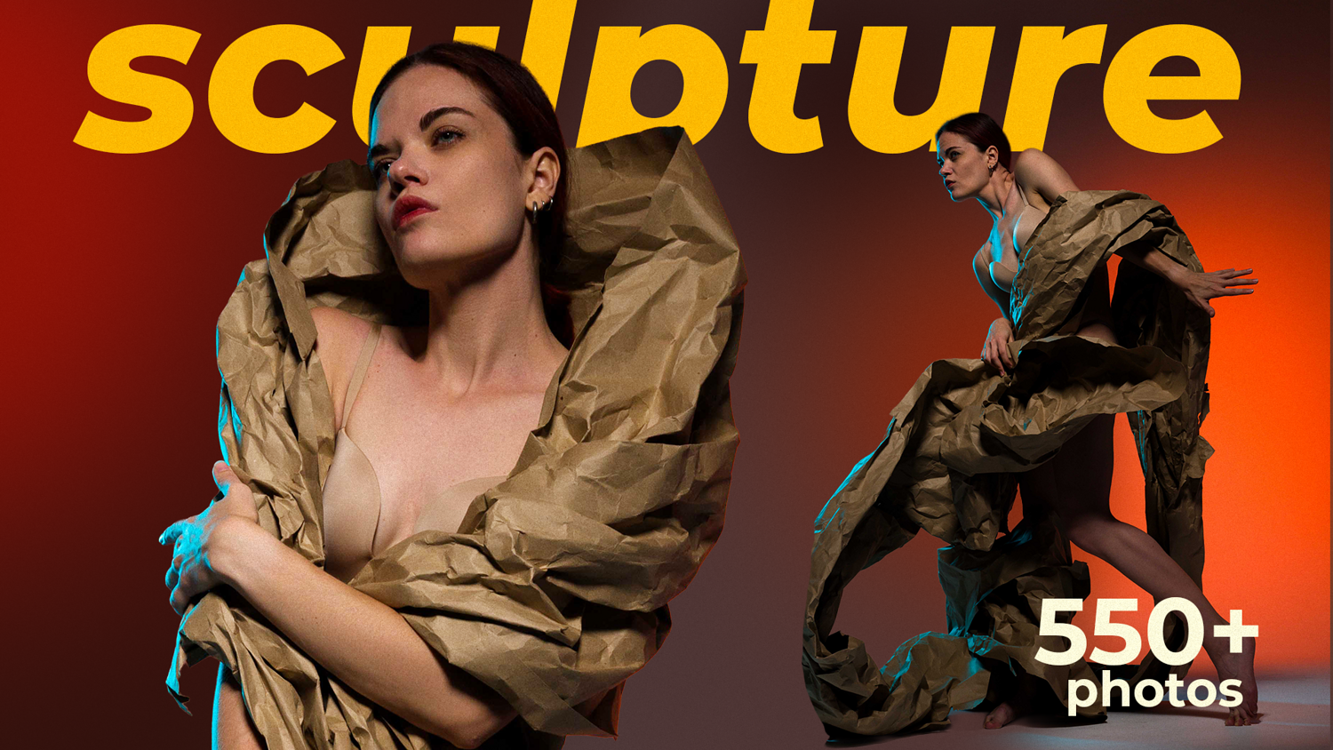 In this pack, you’ll find over 550 photos with original poses where paper is used as an artistic material. It wraps around the figure and creates sculptural forms, turning the model into a living installation.This collection is perfect for artists, illustrators, and concept creators who are looking for unconventional silhouettes, dramatic lighting, and inspiration in the fusion of human and material.