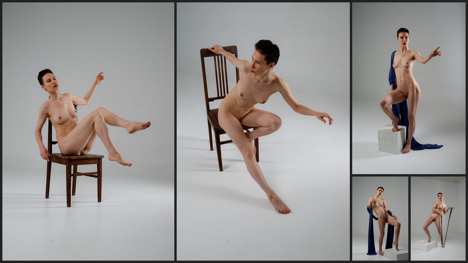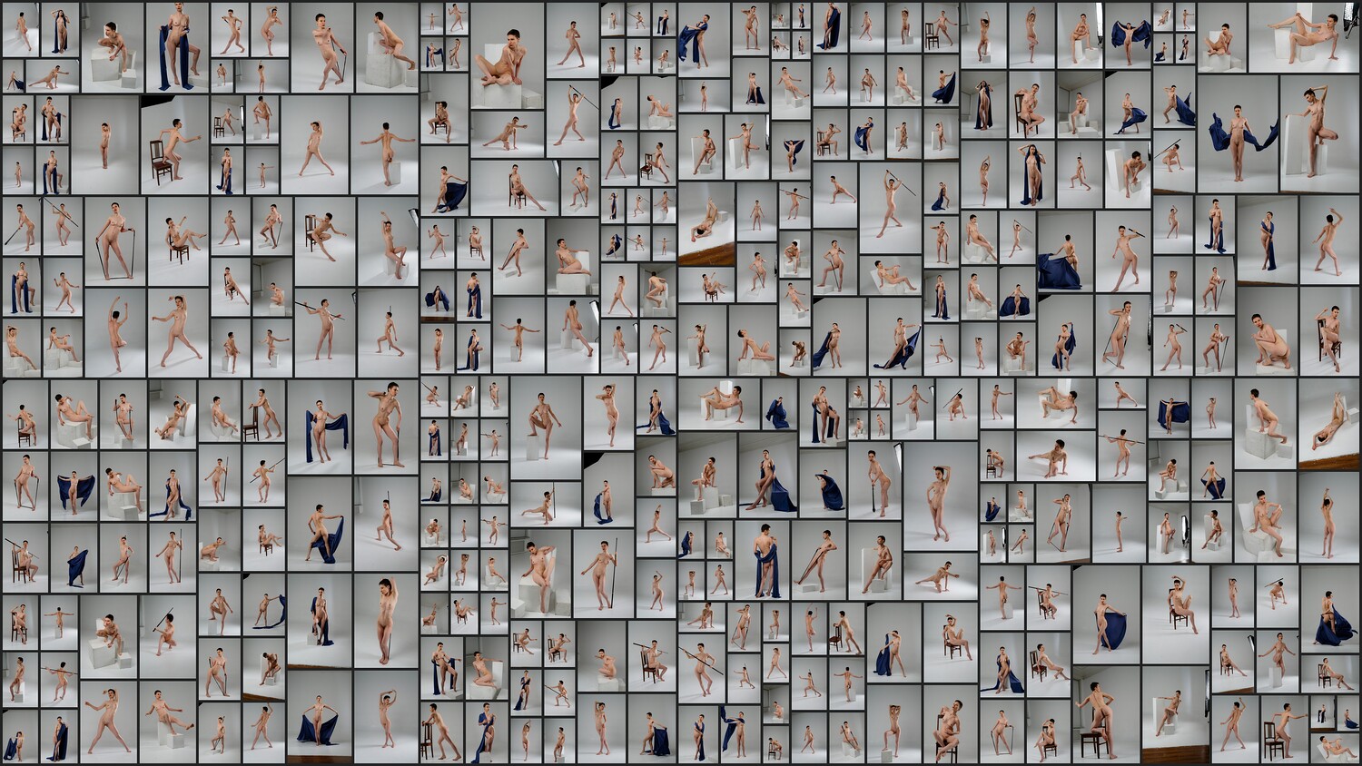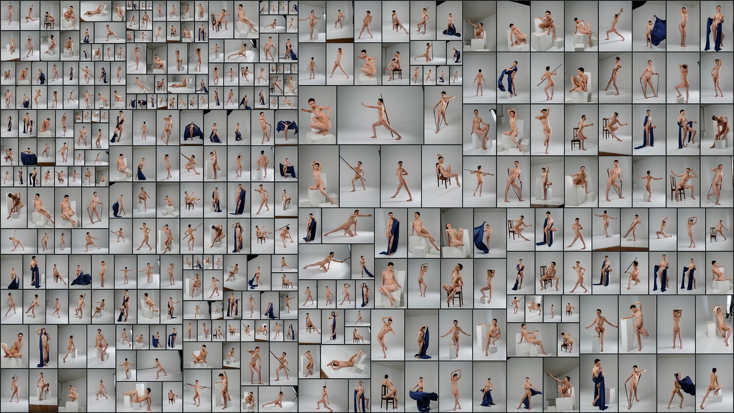 This photo reference pack includes over 1100 high-resolution images featuring a nude female model in a wide range of sketching poses. The collection captures both static and dynamic positions from multiple angles, providing an excellent base for studying anatomy, gesture, and form. The model interacts with various props, including wooden boxes of different shapes, a staff, a fitness band, and fabric, helping artists understand movement and tension in realistic contexts. Lighting is set to highlight the form and structure of the body, making the pack ideal for concept artists, illustrators, sculptors, and anyone practicing figure drawing.