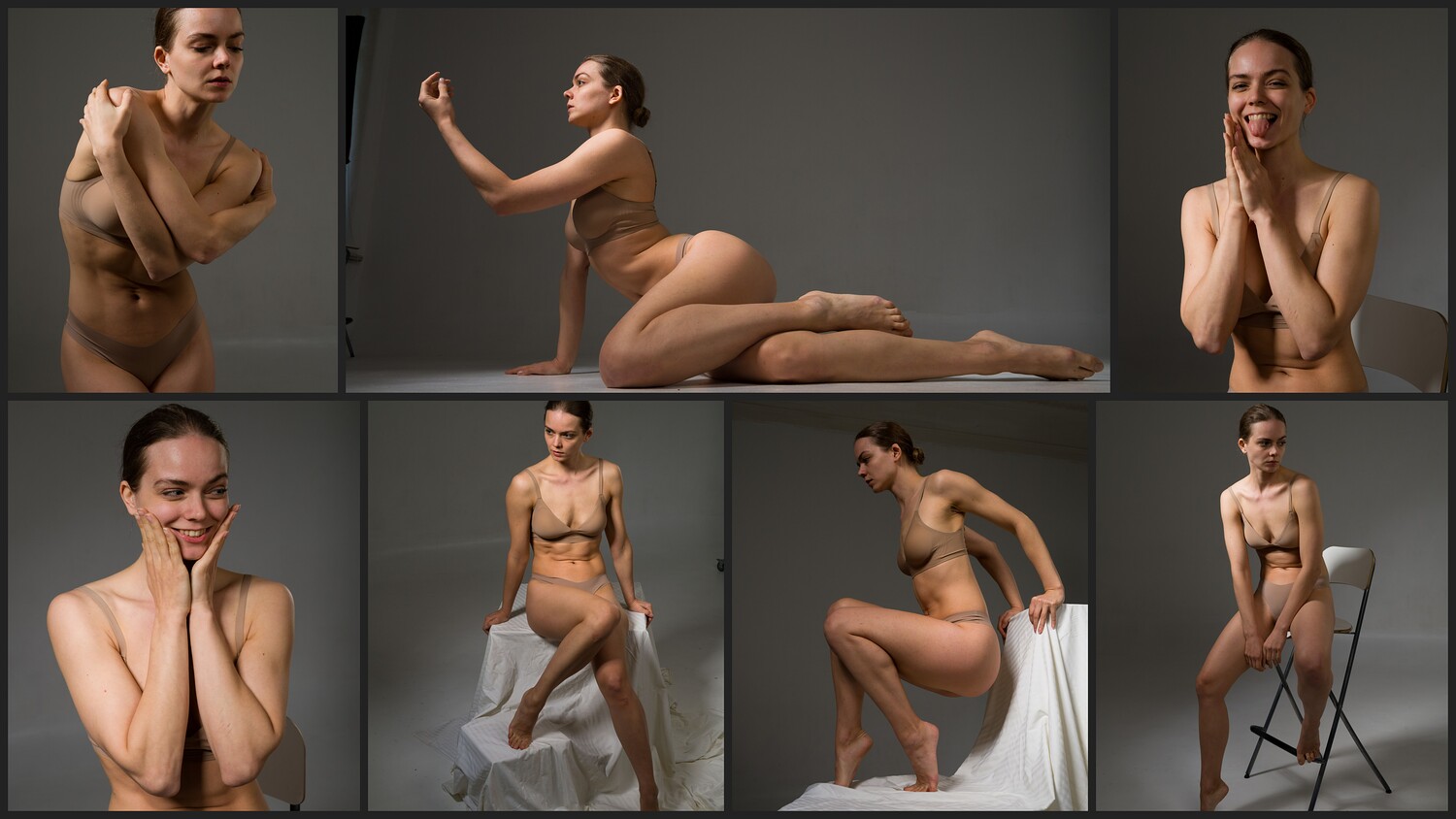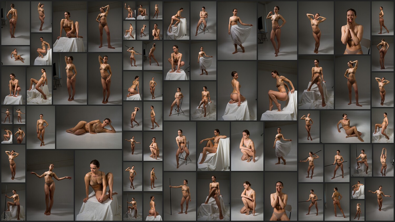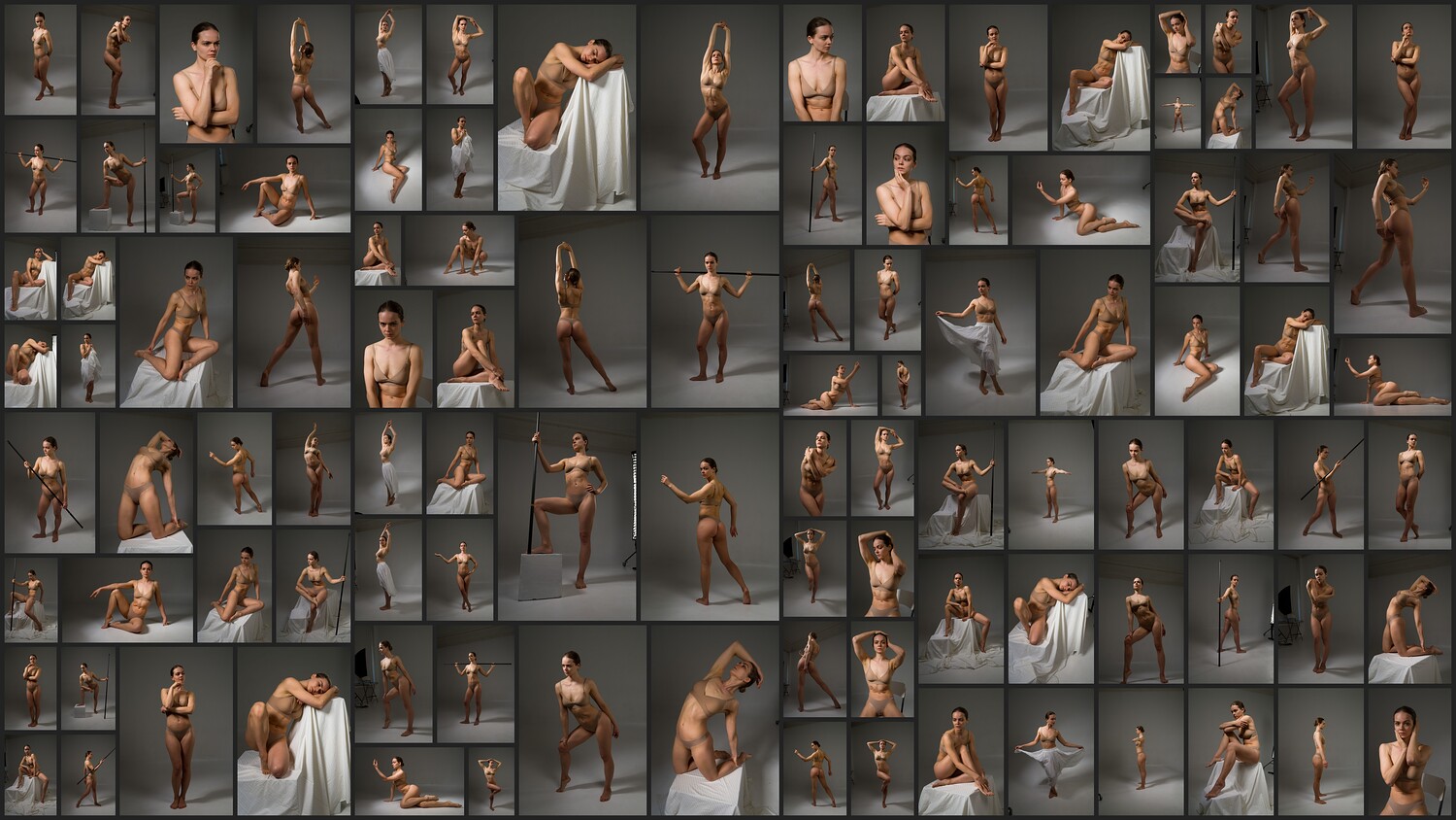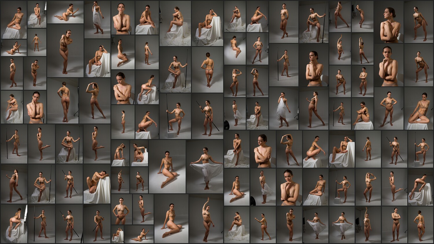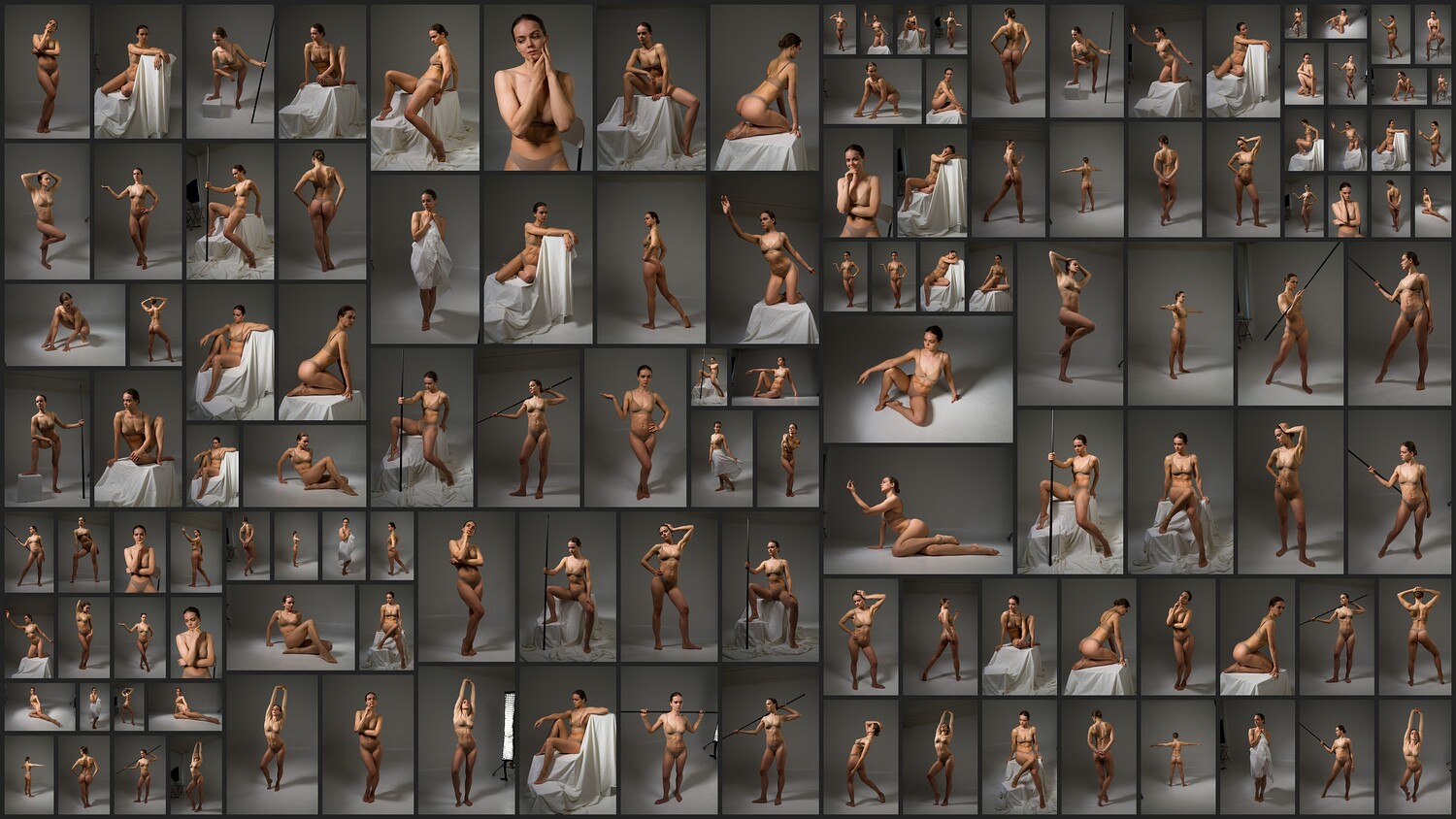 This pack includes over 500 images of a female model in expressive poses, captured in dramatic lighting. The light emphasizes the shape of the body, which is especially useful for studying anatomy and volume.All photos are taken from multiple angles, and the use of drapery and a staff adds variety and helps explore fabric behavior.