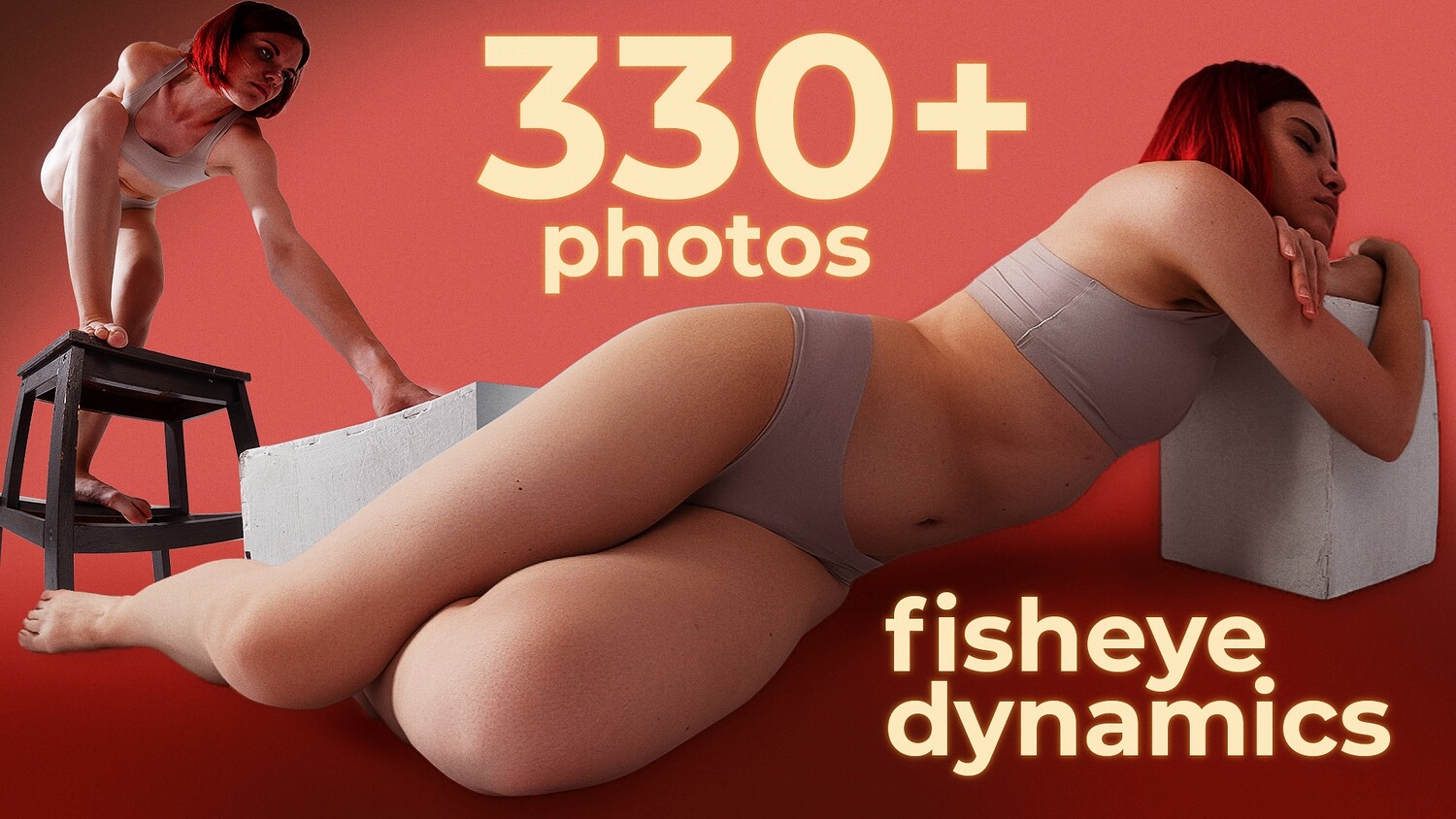 This pack includes over 330 photos of a female model in diverse poses, captured with a fisheye lens. The ultra-wide perspective creates dramatic distortions and unusual angles, making these references perfect for artists who are tired of drawing in standard perspective and want to practice something unusual and dynamic.