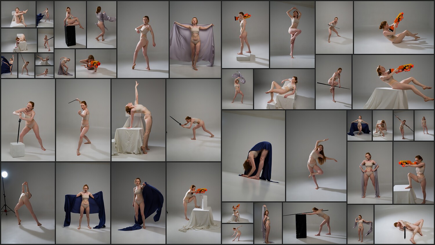 This reference pack features over 880 high-resolution photos of a female model in dynamic action poses, captured from various angles — including wide-angle perspectives that emphasize motion and depth. It’s a perfect resource for sketching, gesture drawing, and studying anatomy in motion.