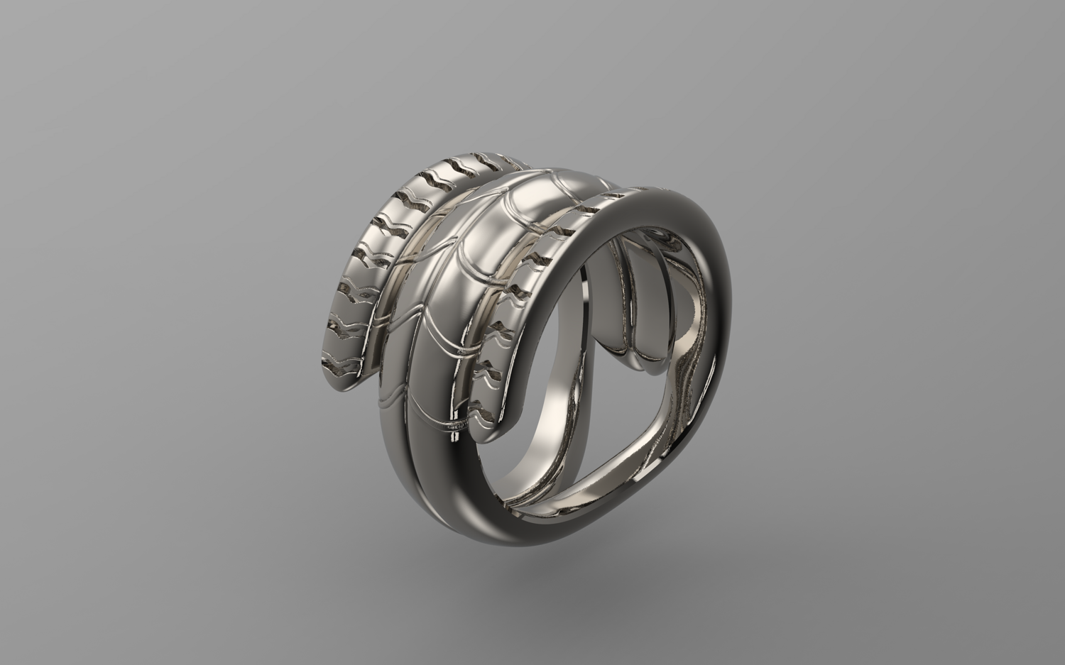 The ring is 3D printing ready. What you buy is the .stl (or .obj) file(s) of the ring that you can upload on your prefered 3d printing website (e.g. shapeways) and choose your printing material.