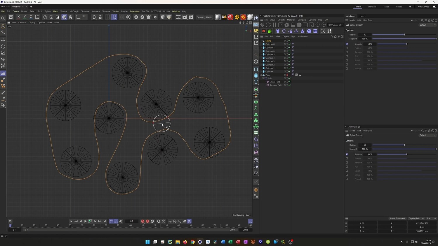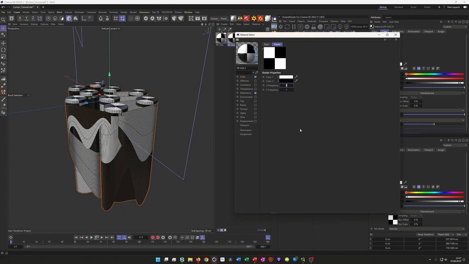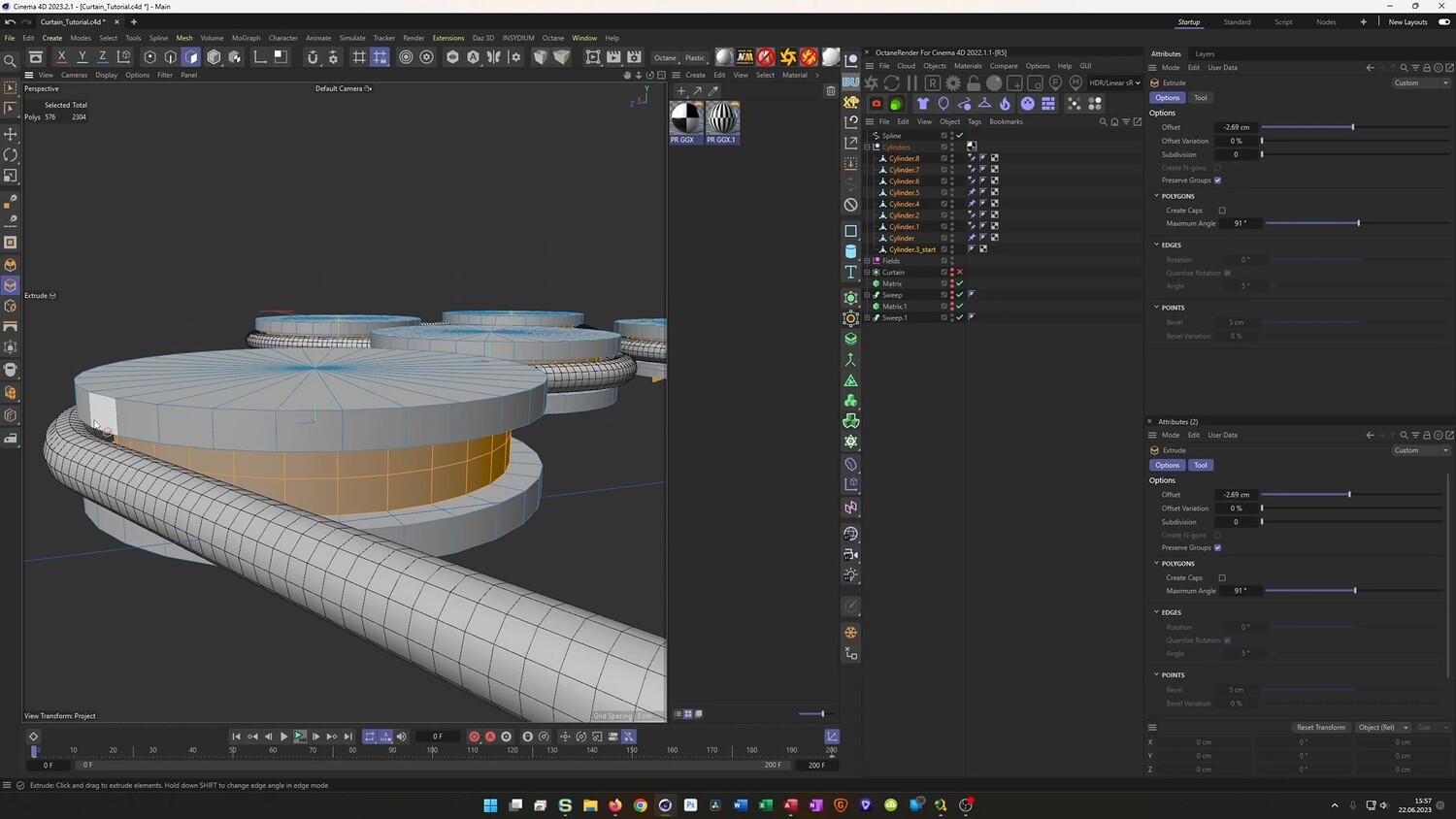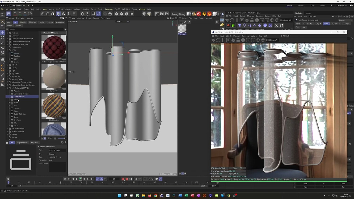 In this tutorial, we will explore how to create a detailed 3D simulation of a hanging mesh cloth draped over cylindrical dowels. The workflow moves away from complex matrix methods and focuses on using efficient deformers and simulation tags. You will learn how to shape the fabric using fields, create a perfectly tightened path using rope physics, and animate the entire structure so the cloth flows naturally while the cylinders rotate in synchronization. Finally, we touch upon texturing techniques to achieve a semi-transparent, realistic fabric look.