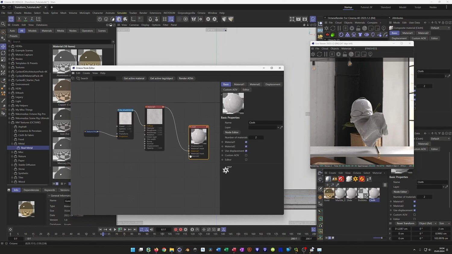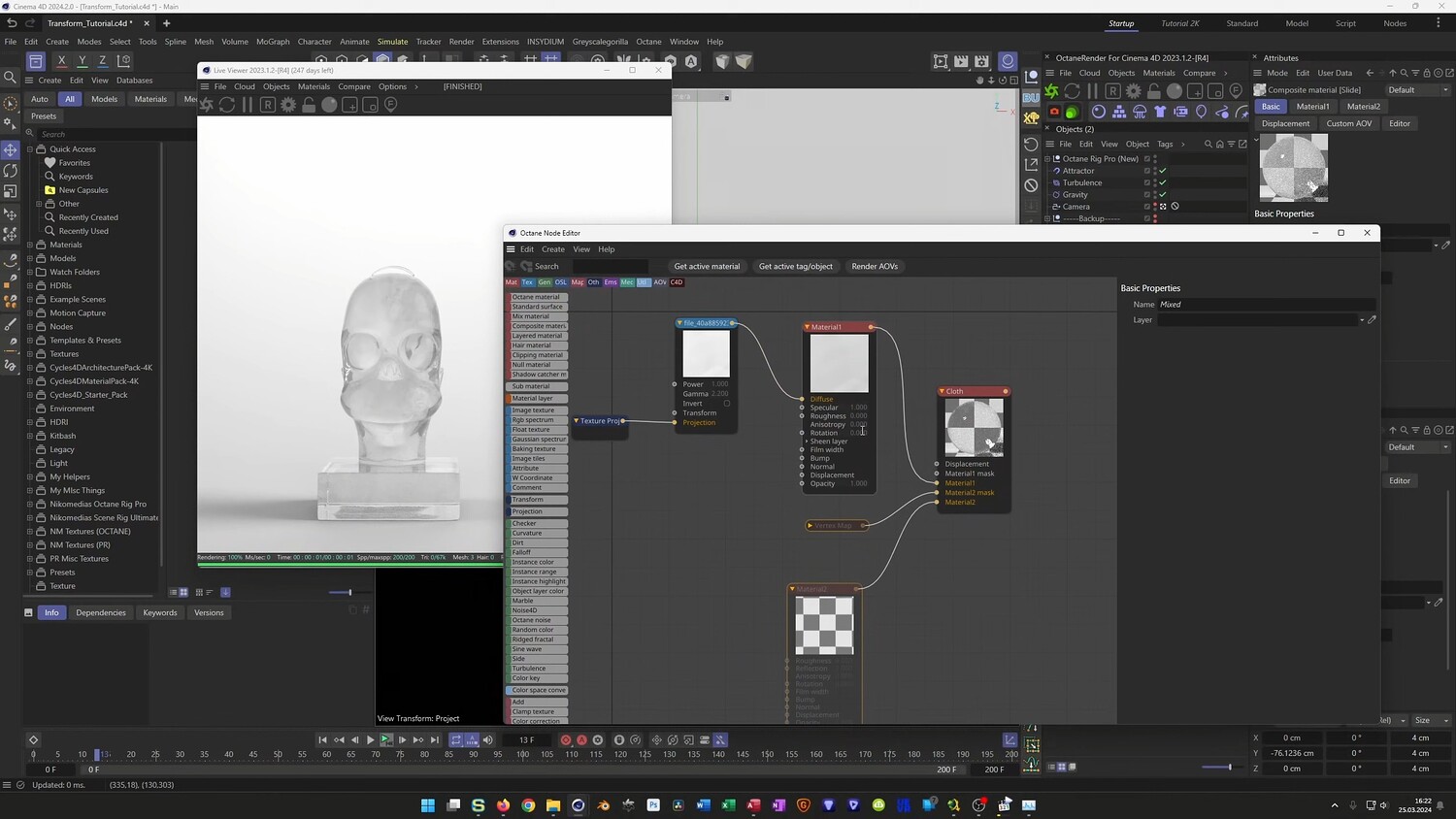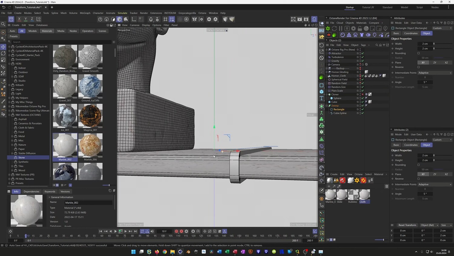What you will learn: - Preparing high-density meshes for simulation using Volume Builder and Remesher. - Animating object entry with custom spline curves for natural movement. - Using Vertex Maps and Fields to control the specific timing and location of the melting effect. - Setting up Cloth simulations with localized gravity to simulate the drooping liquid form. - Baking simulations to Alembic files to retime and offset animation speed without re-simulating. - Adding floating bubbles using Cloners and Rigid Body dynamics for added detail. - Creating a Composite Material in Octane to transition textures from solid marble to refractive glass.