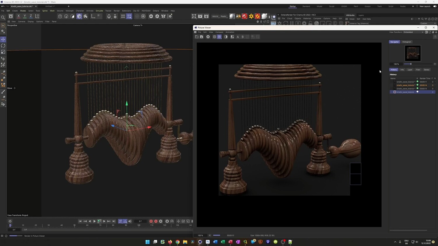 In this tutorial, you will learn how to create a mesmerizing kinetic wave sculpture using Cinema 4D. The lesson focuses on building a mechanical loop where wooden components move in a fluid, wave-like pattern. You will discover a unique workflow that combines standard MoGraph effectors with Dynamics to create realistic motion, ensuring mechanical parts interact naturally without complex manual keyframing. The tutorial also covers modeling the intricate stand, automating repetitive tasks with XPresso, and texturing the final result for a photorealistic look.