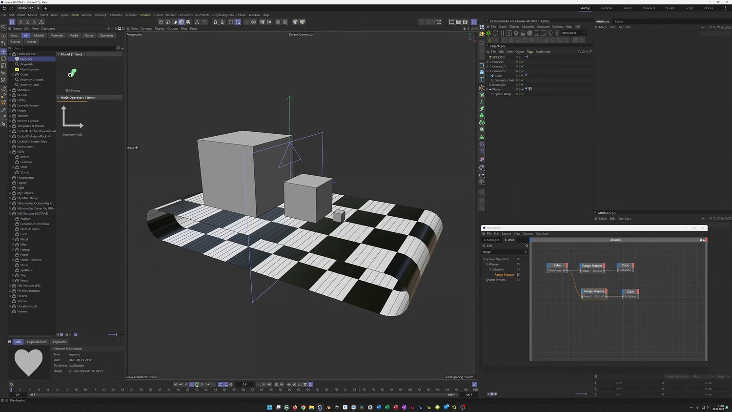 What you will learn: - How to use the Geometry Axis capsule to keep objects aligned with the floor - Utilizing the Connect object to animate rolling motion without physics simulation - Creating a looping conveyor belt using Spline Wraps - Synchronizing rotation speeds for different sized objects using Xpresso and Range Mappers - Modeling a die-like cube with holes using Boolean, Thicken, and Bevel tools - Setting up materials and lighting with Octane Render
