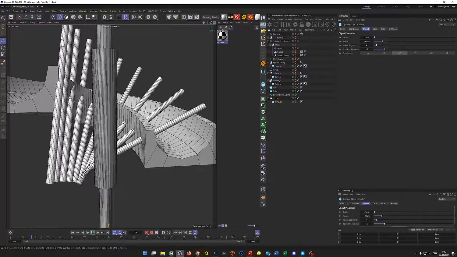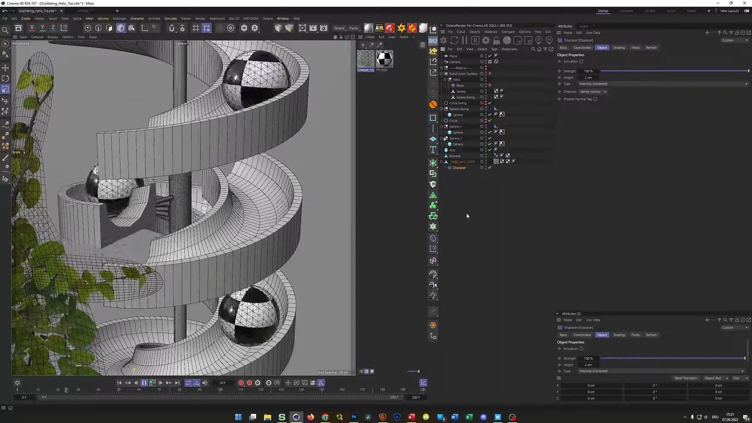 What you will learn: - How to model a helix track using Sweeps and Rail Splines for correct orientation - Techniques for splitting geometry to create a swinging track mechanism - Using the Oscillate and Repeat functions in the timeline for seamless looping - Animating spheres along a path using the Align to Spline tag - Baking animations to Alembic files to optimize the scene and duplicate objects - Modeling central mechanical parts using Cloners and the Volume Builder - Importing plant assets from Quixel Bridge and simulating wind with Displacers