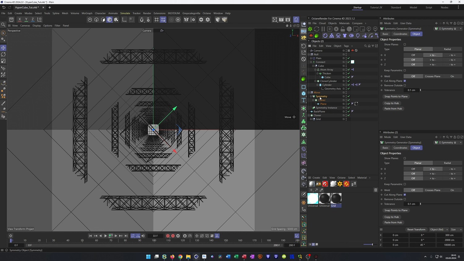 What you will learn: - Modeling a complex hypercube shape using Thicken and Atom Arrays - Using Xpresso (Set Driver/Set Driven) to link object parameters for automated animation - Creating seamless infinite loops with Cloners and Symmetry objects - Generating detailed sci-fi textures using displacement maps - Using the Poke Polygons capsule for added geometric detail - Setting up emissive materials, color correction, and bloom effects in OctaneRender