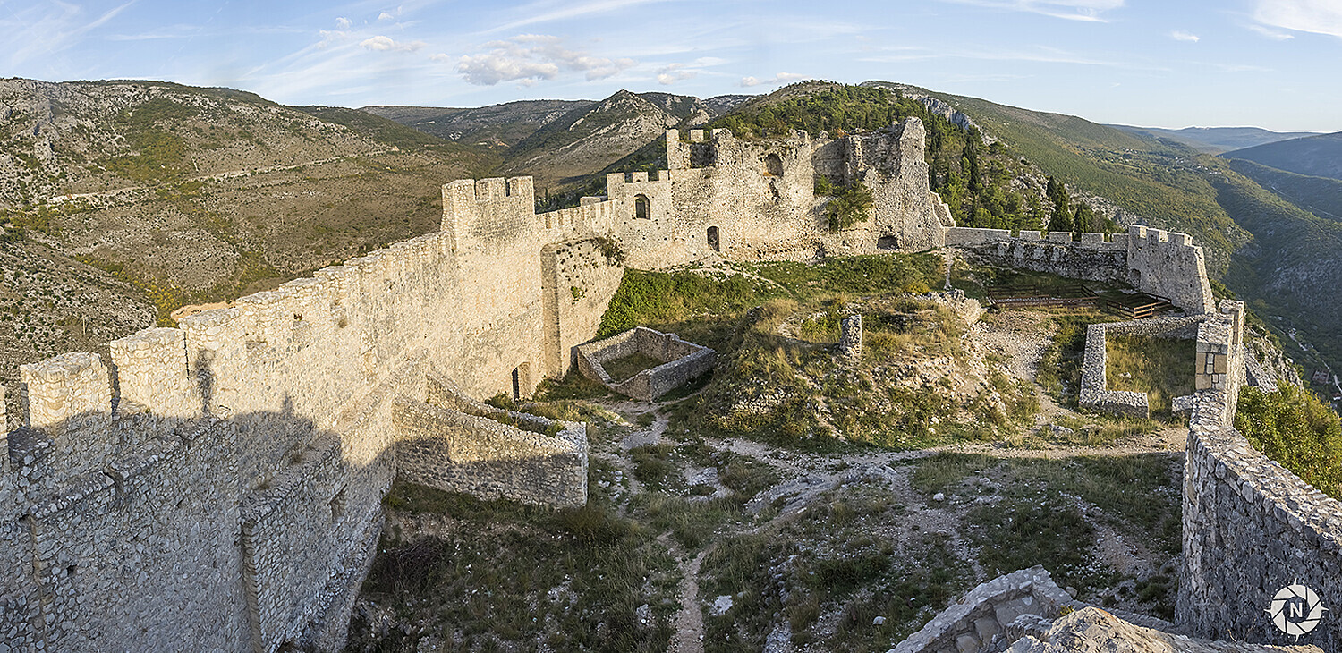 The ruins of the Blagaj Fortress is located on the top of a small mountain in the south of Bosnia. It was shot at the beginning of sunset for more drama. You will find many view angles, detailed shots of the textures, the damages and the foliage + panoramas of the view. You will also see two of my friends wandering around the ruins which will give you a scale reference.