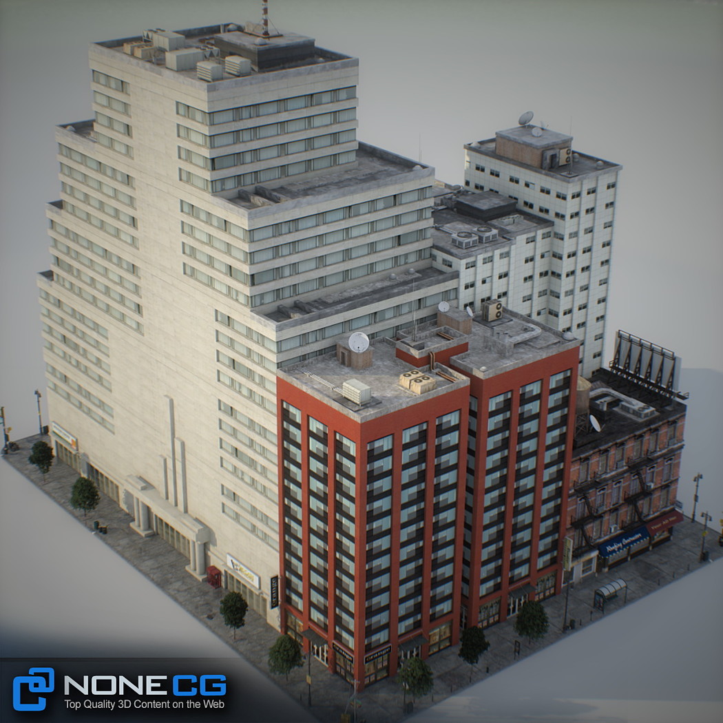 Realistic New York City block. This set is composed by 8 buildings in 1 block.