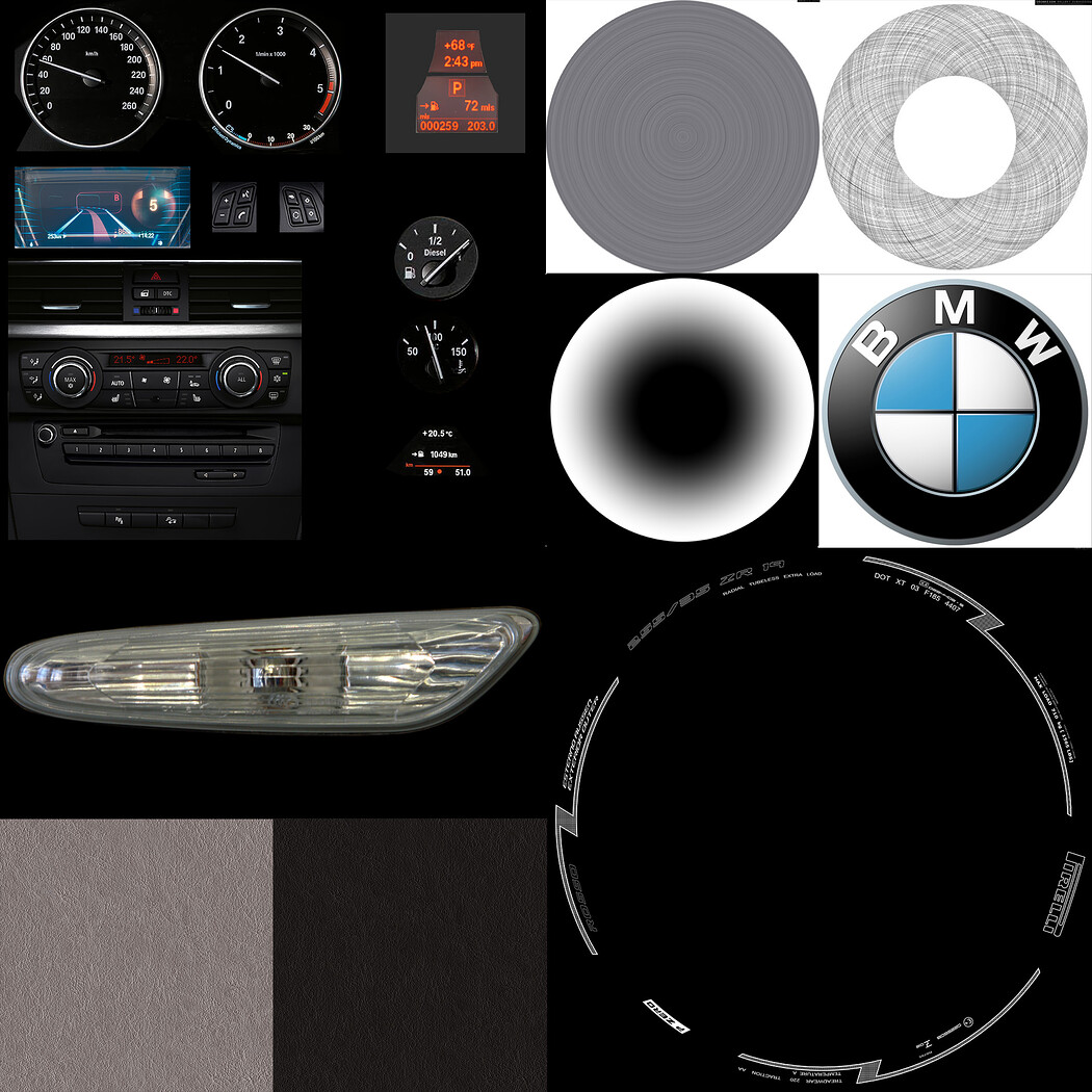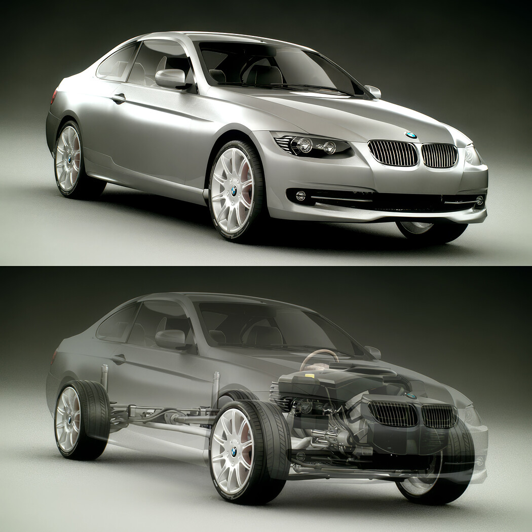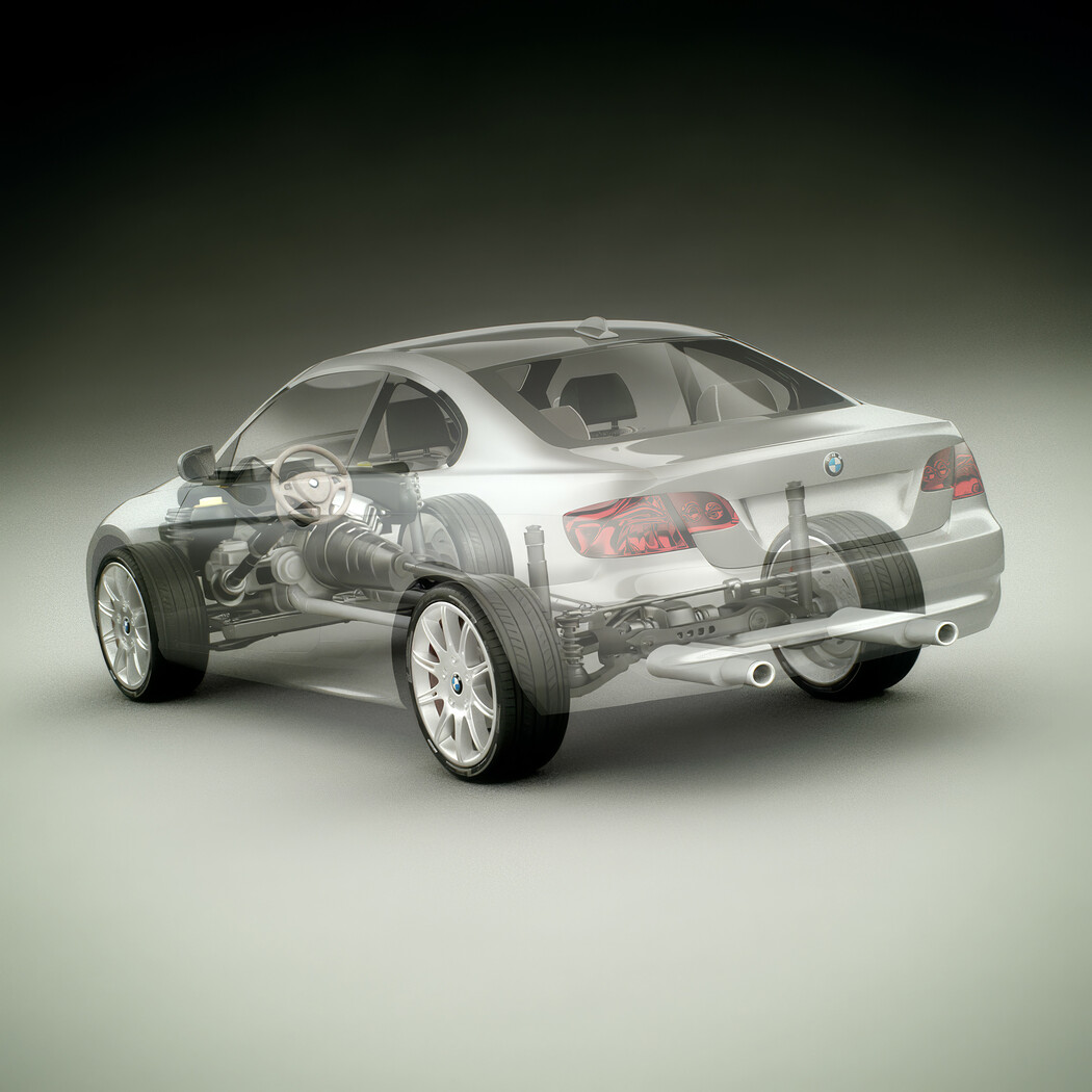 Realistic, detailed and accurate BMW 3 Series Coupe including interior, chassis, engine, wheels, rims and brakes, gearbox, exhaust system, front and rear suspension, steering wheel and transmission.