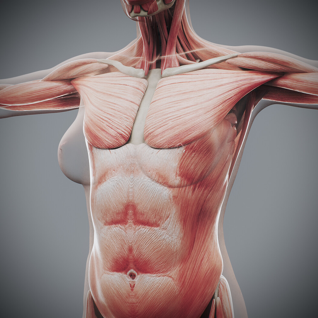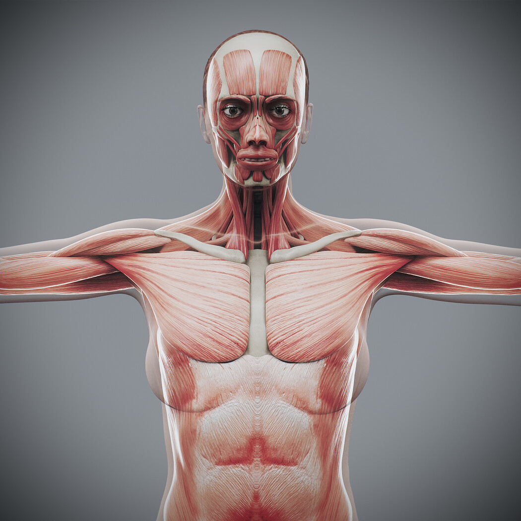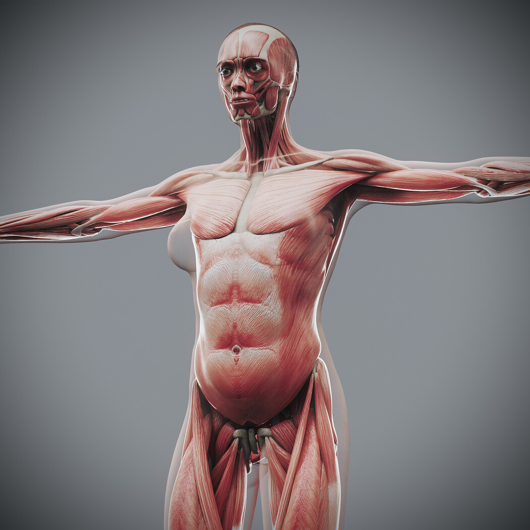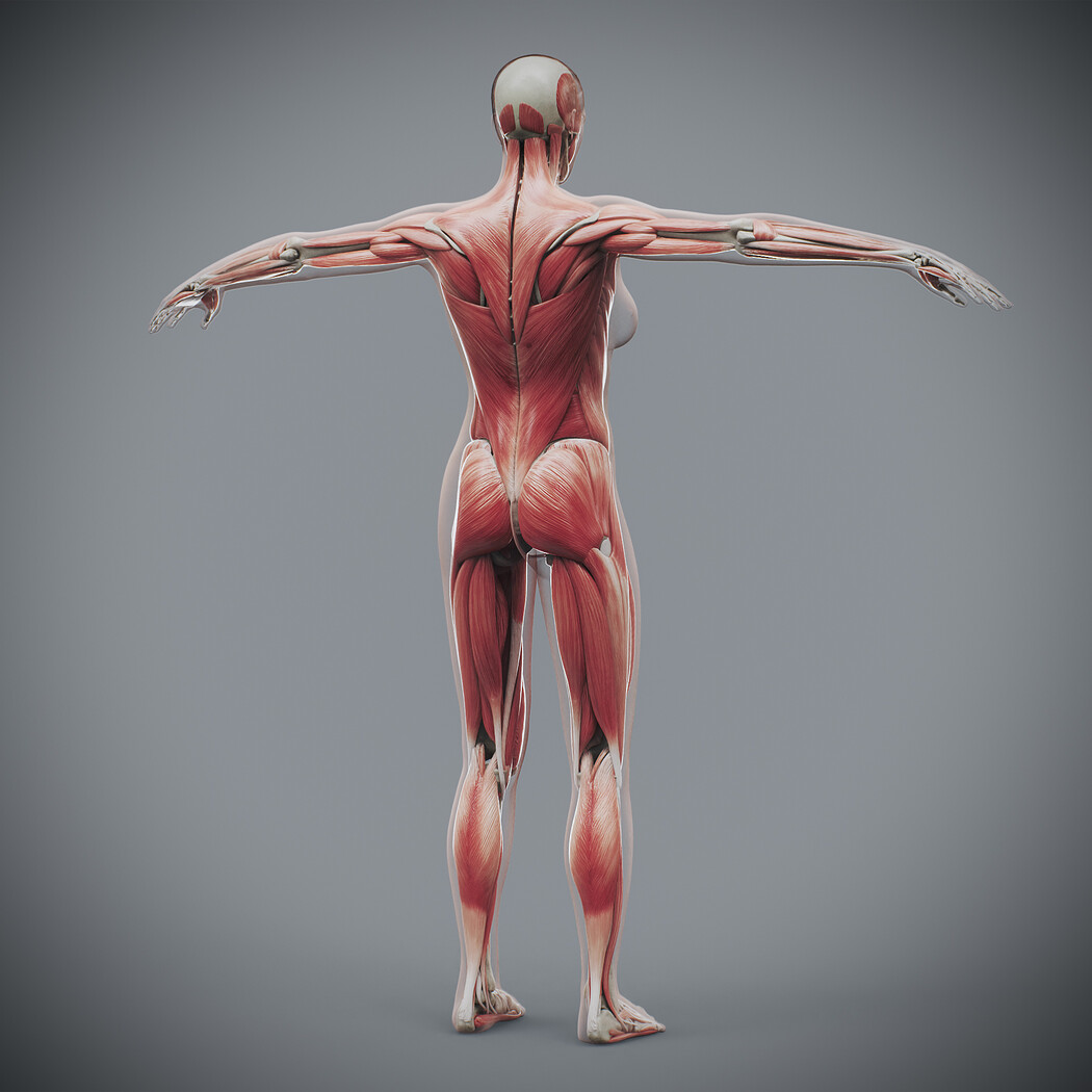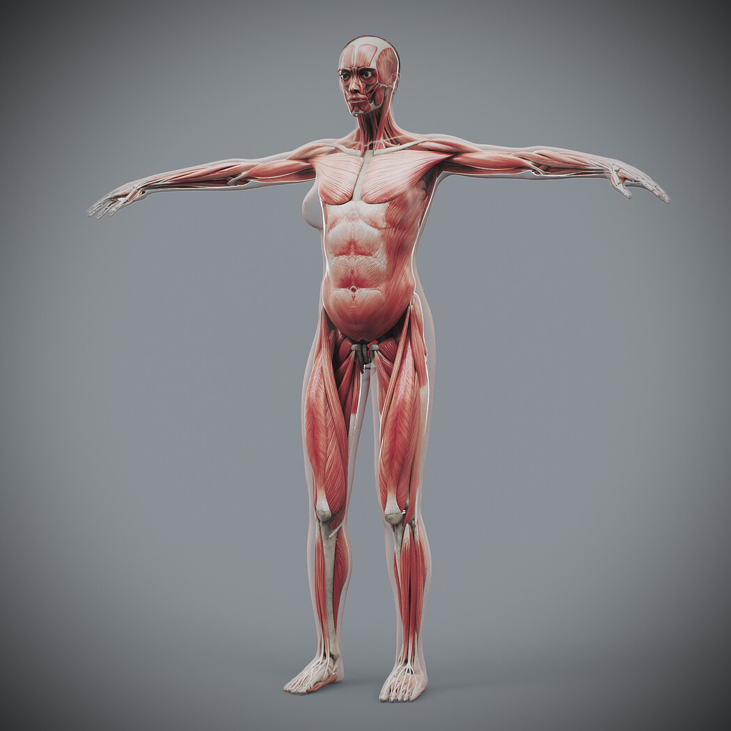 Realistic, detailed and anatomically accurate fully textured Human Female Anatomy – Body, Muscular and Skeletal Systems.