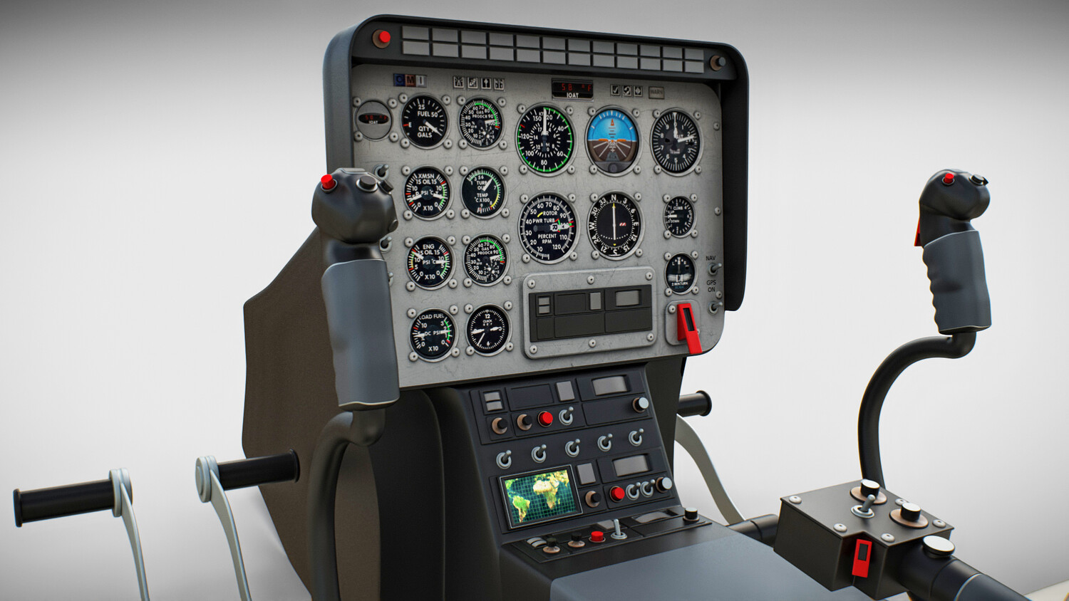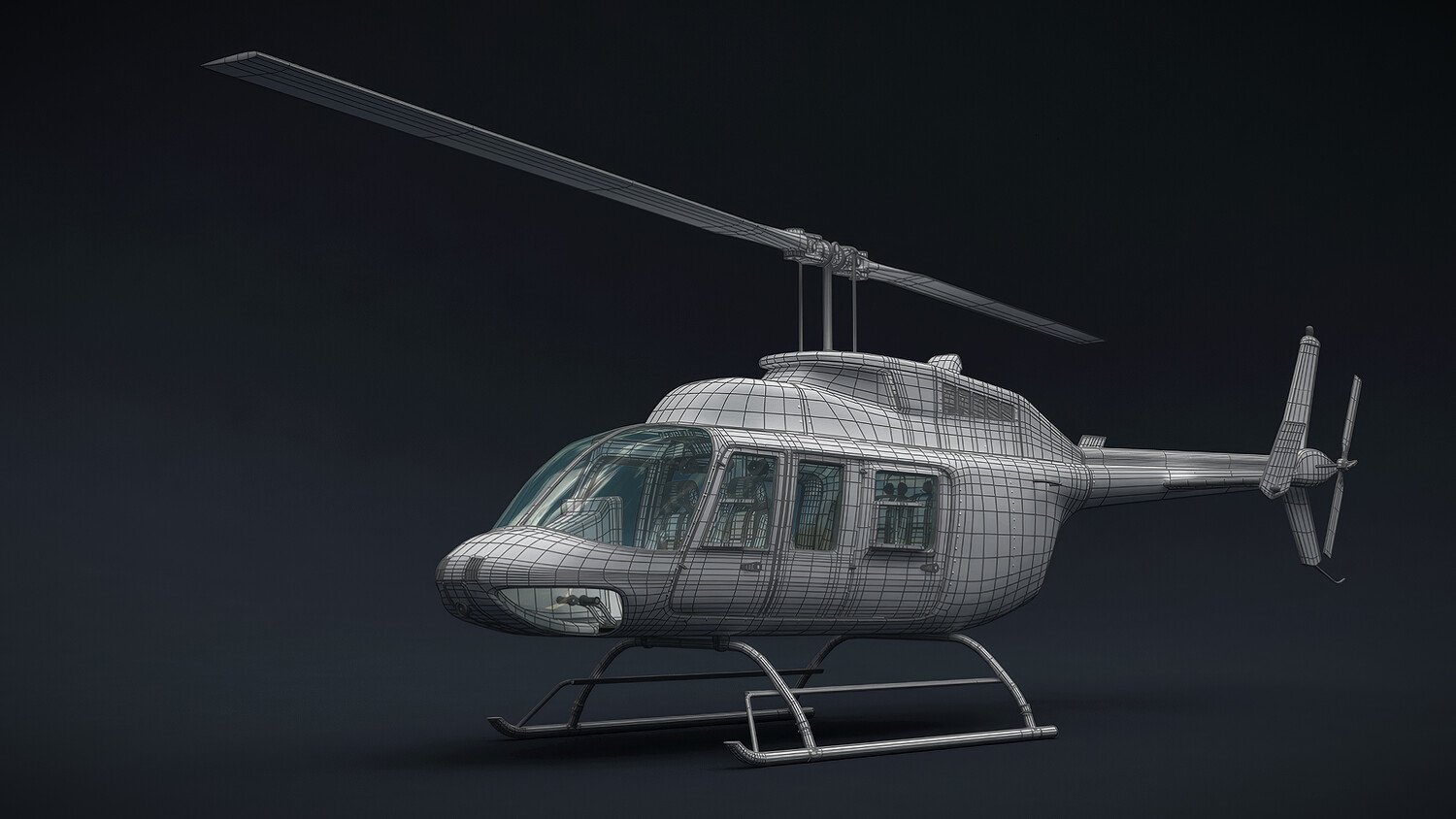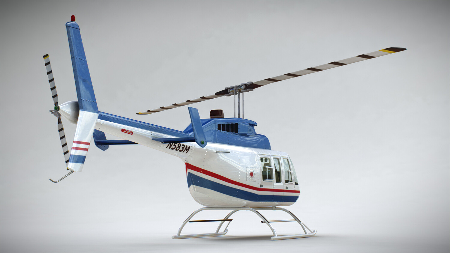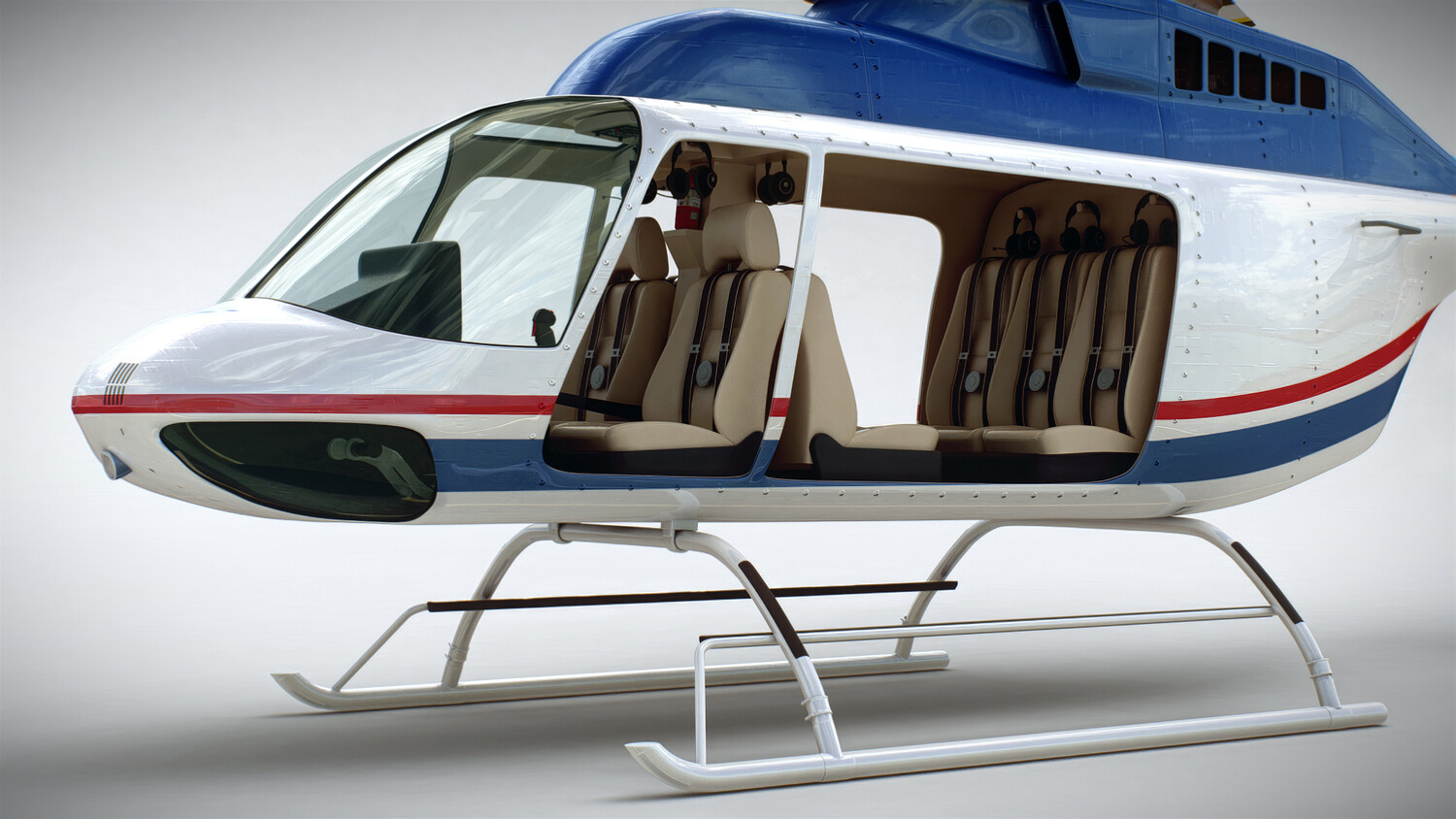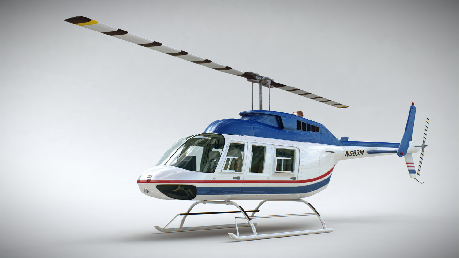 Realistic, detailed and textured Helicopter Bell 206L ‘Commercial’ with Interior; cockpit and avionics. The model has been created with real world scale dimensions.
