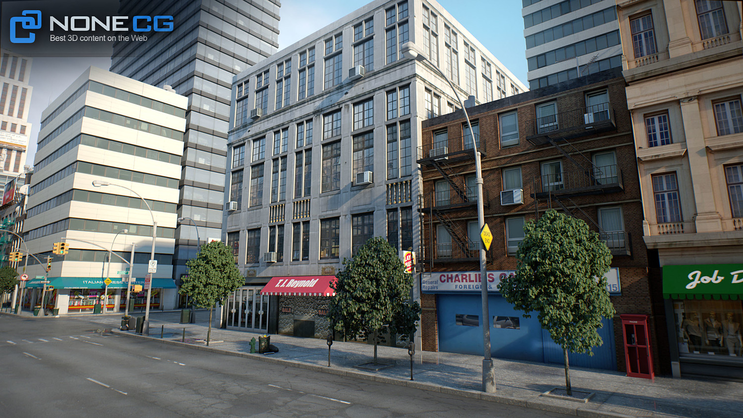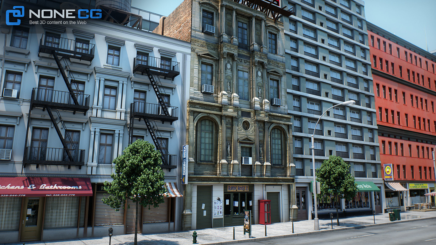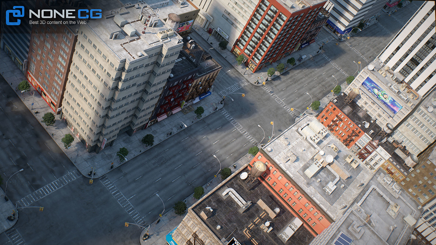 Realistic modular New York City. This set is composed by 8 tileable blocks making a total of 68 DIFFERENT BUILDINGS. You can tile the blocks the way you want to build your own city. RENDER READY.