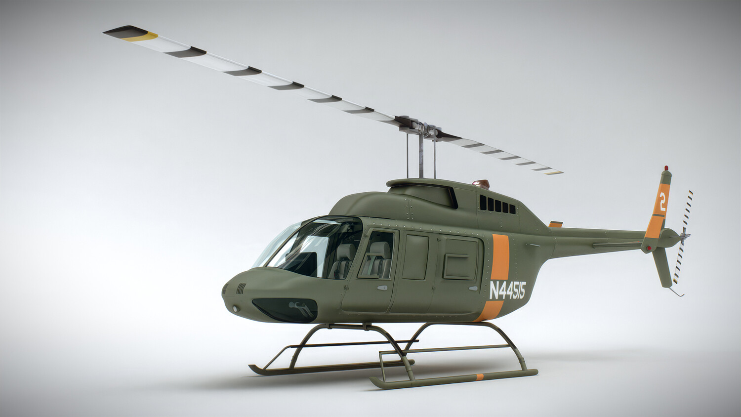 Realistic, detailed and textured Helicopter Bell 206L ‘Military’ with Interior; cockpit and avionics. The model has been created with real world scale dimensions.