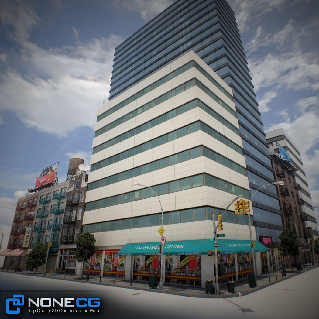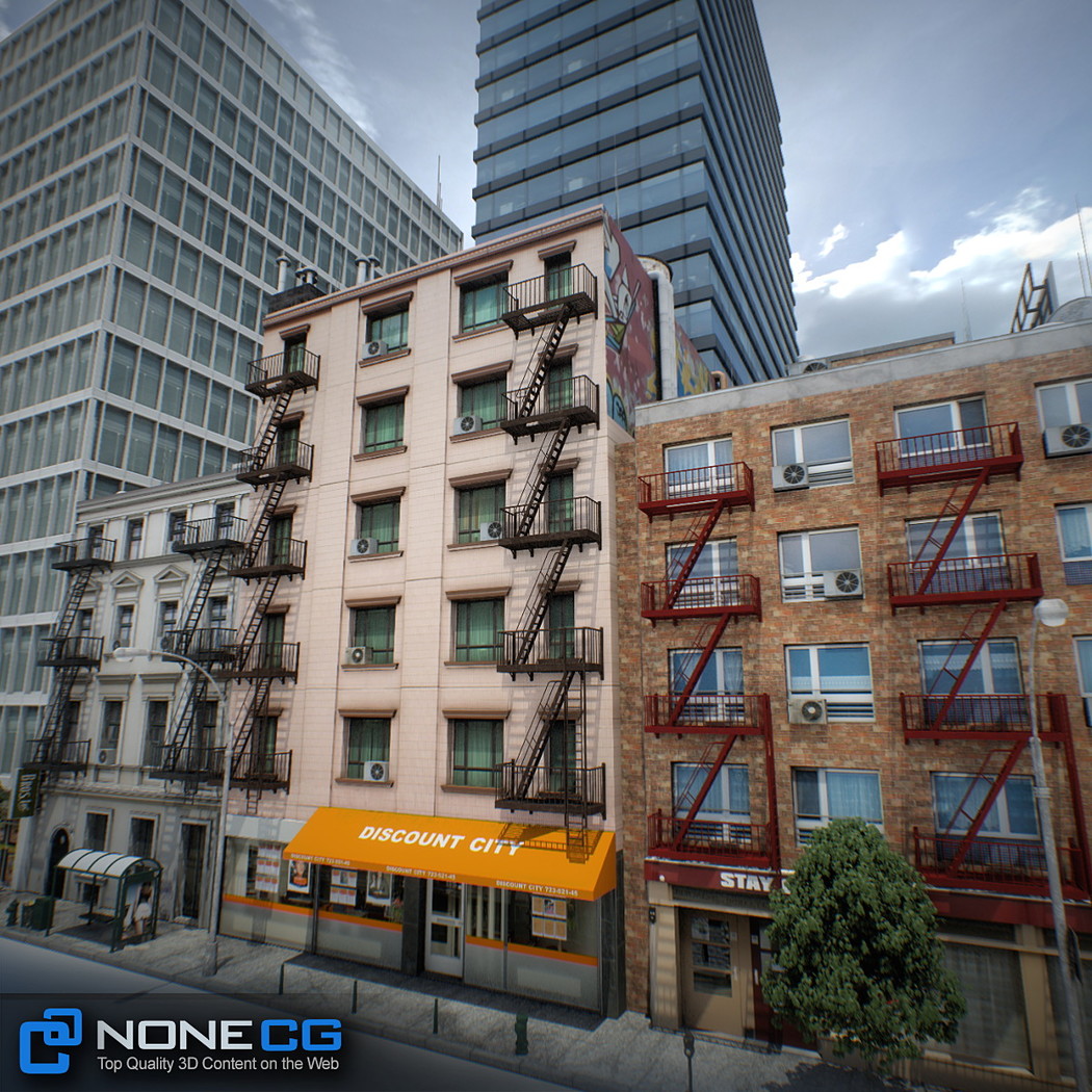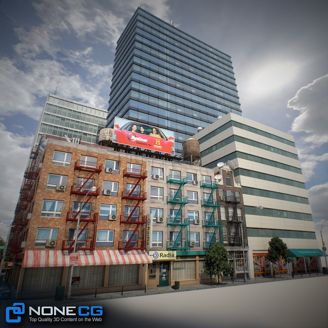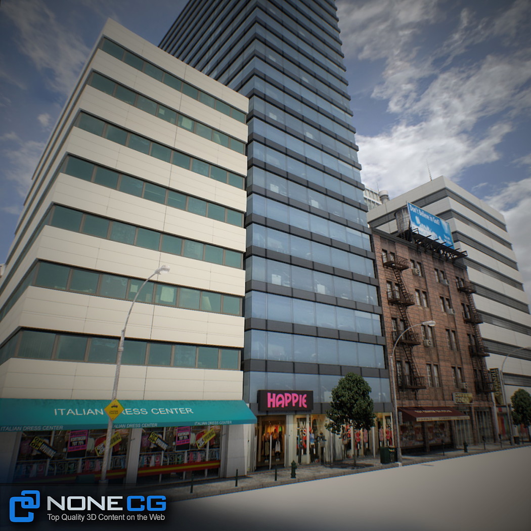 Realistic New York City block. This set is composed by 9 buildings in 1 block.