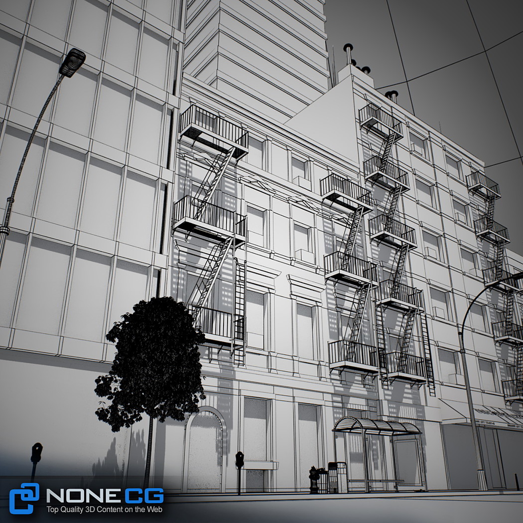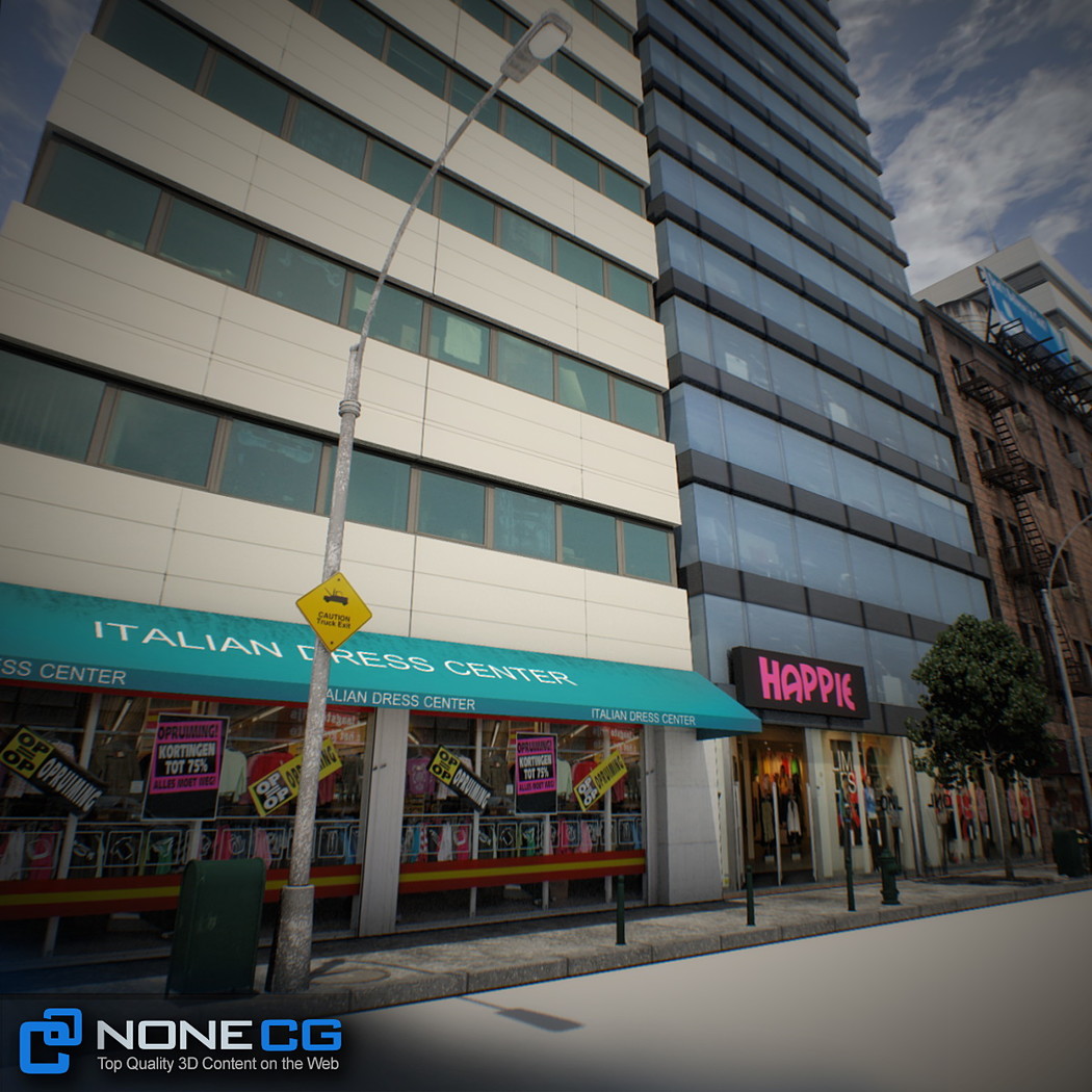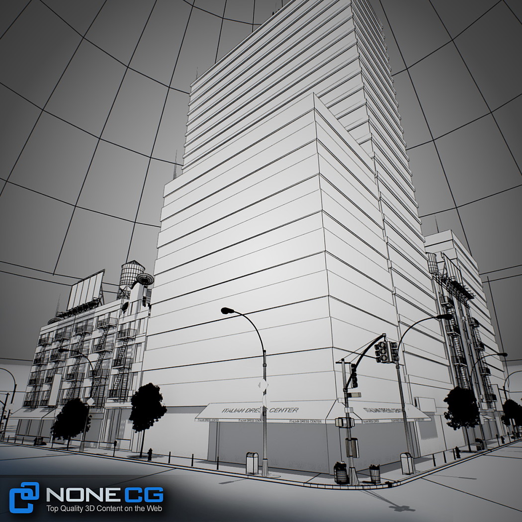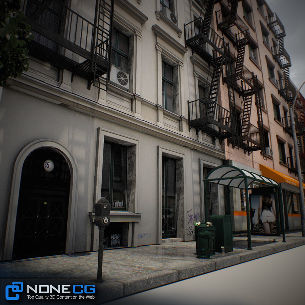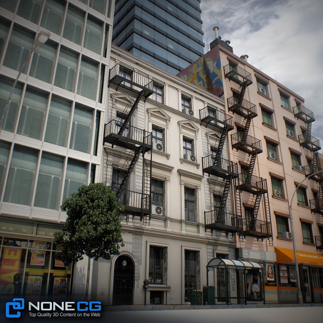 Realistic New York City block. This set is composed by 9 buildings in 1 block.