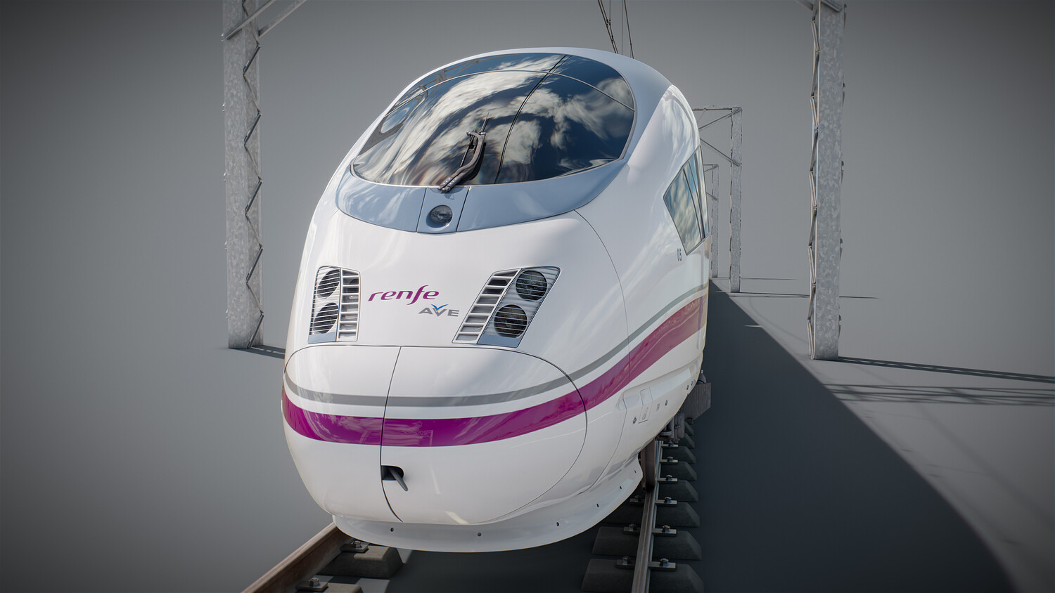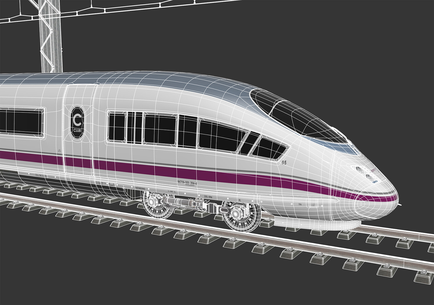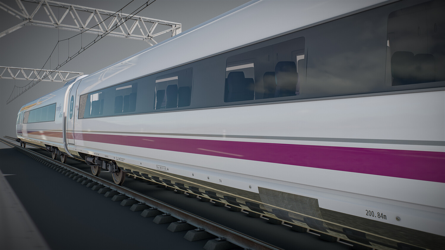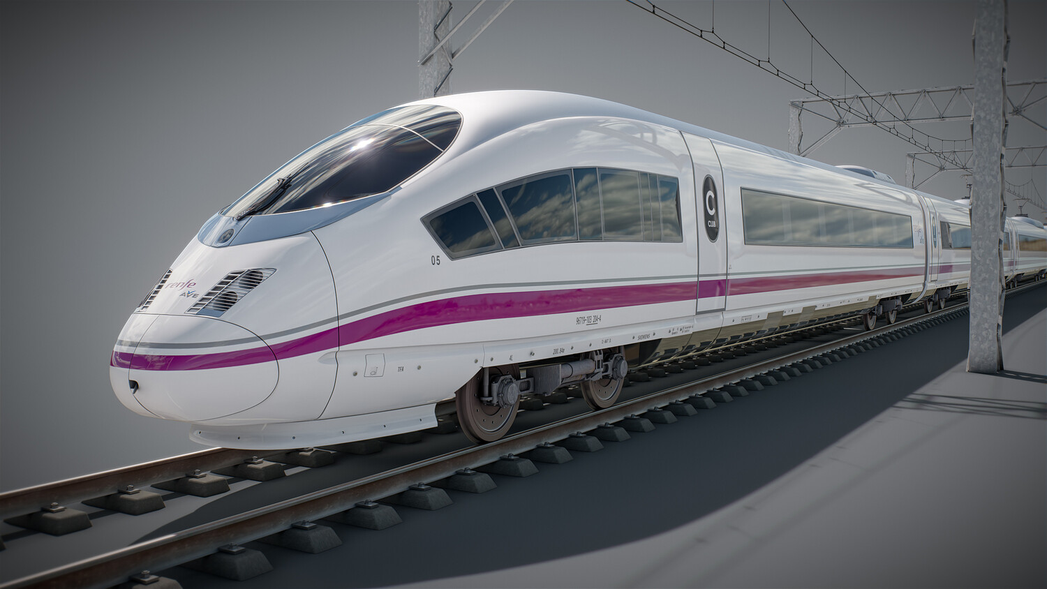 Realistic, detailed and textured Spanish AVE Siemens Velaro high speed trains with Interior, Railway Track and Catenary included in multiple 3D formats.