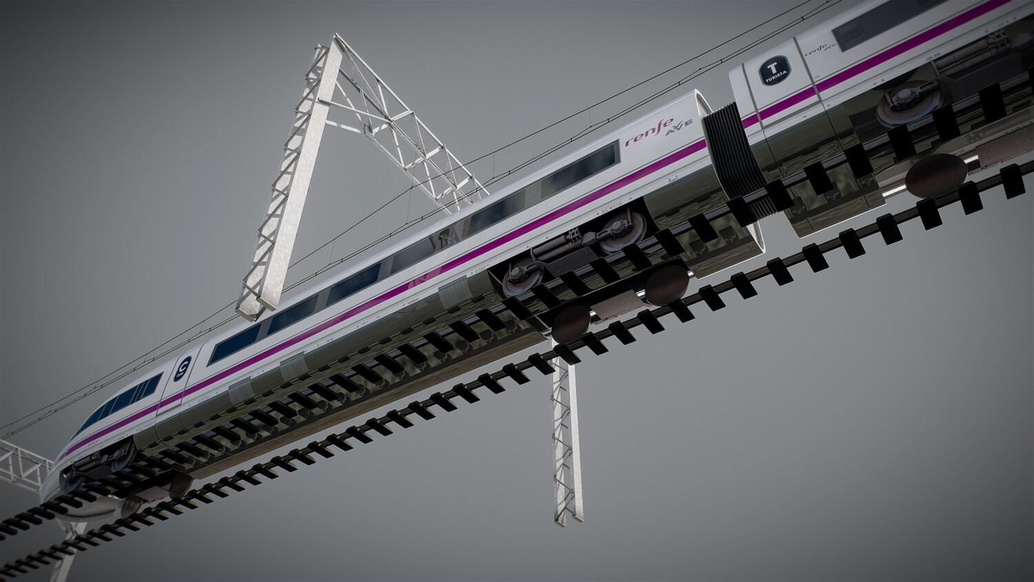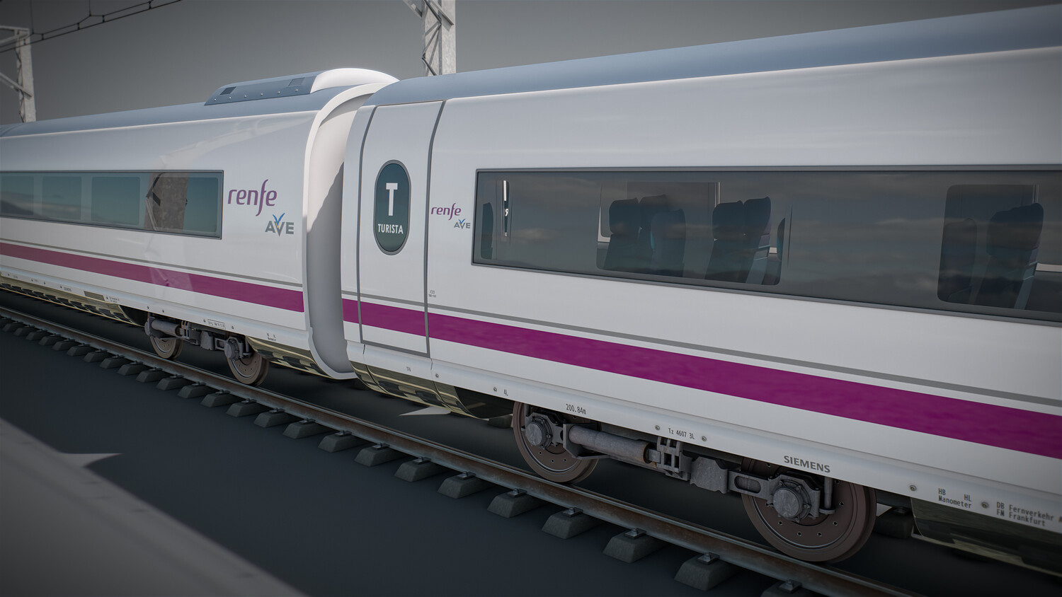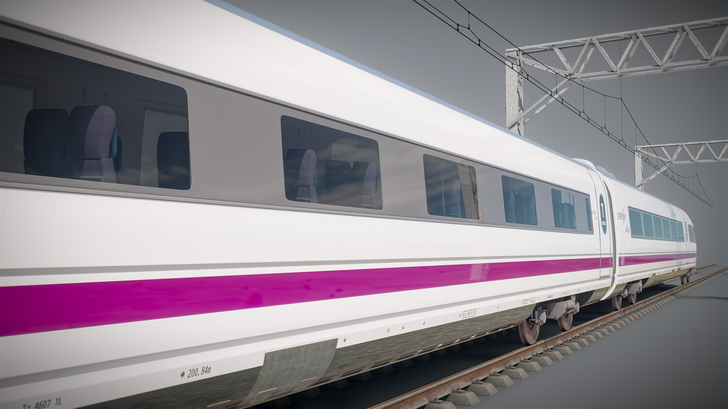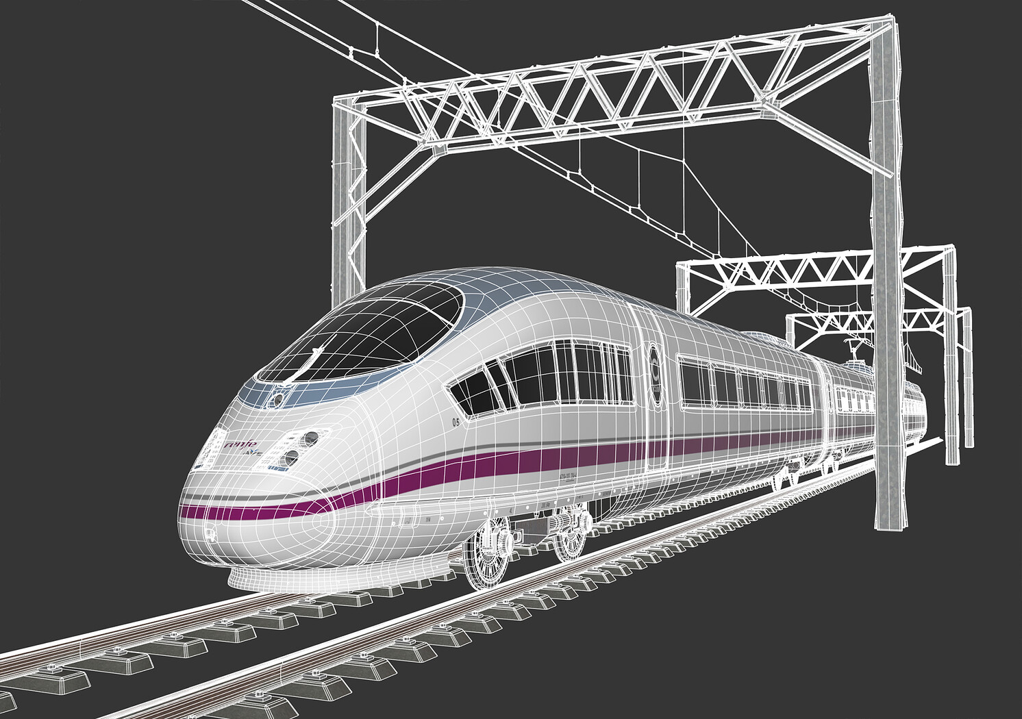 Realistic, detailed and textured Spanish AVE Siemens Velaro high speed trains with Interior, Railway Track and Catenary included in multiple 3D formats.