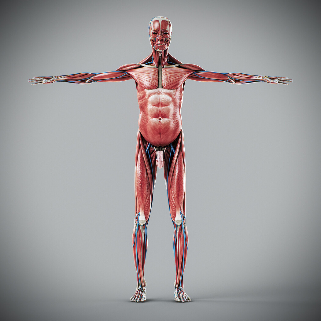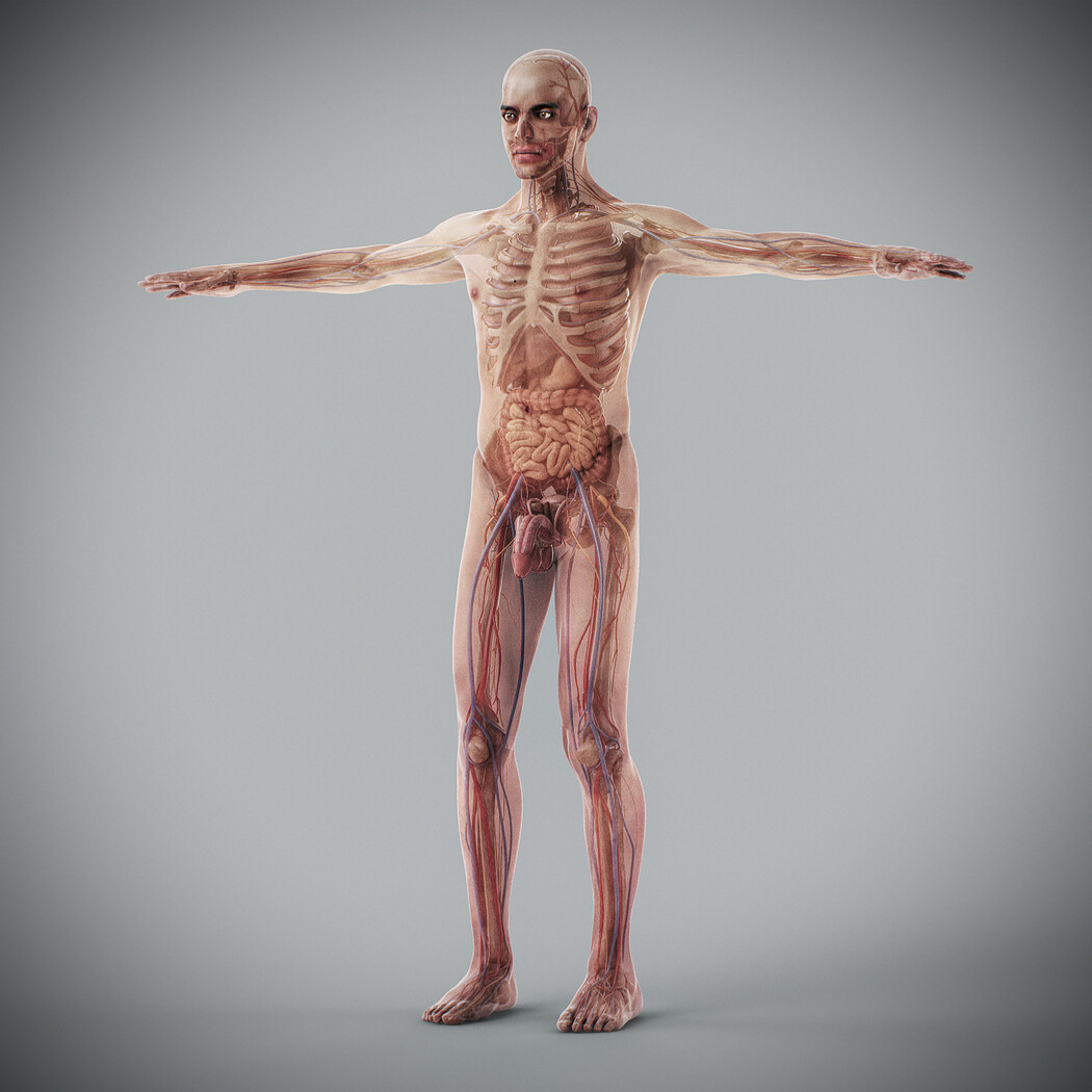 Realistic, detailed and anatomically accurate fully textured Human Male Anatomy – Body, Muscles, Skeleton, Internal Organs and Lymphatic [Non Genital Version Included]. This product includes ALL the anatomy systems: