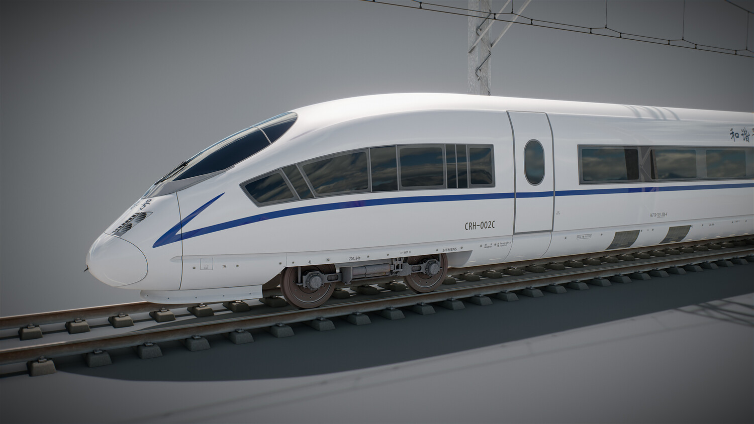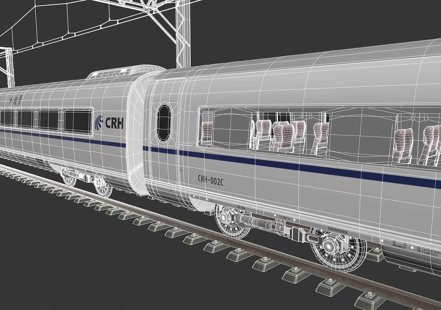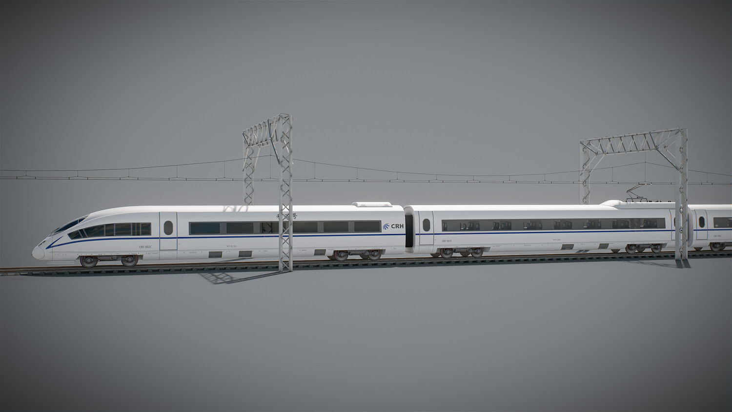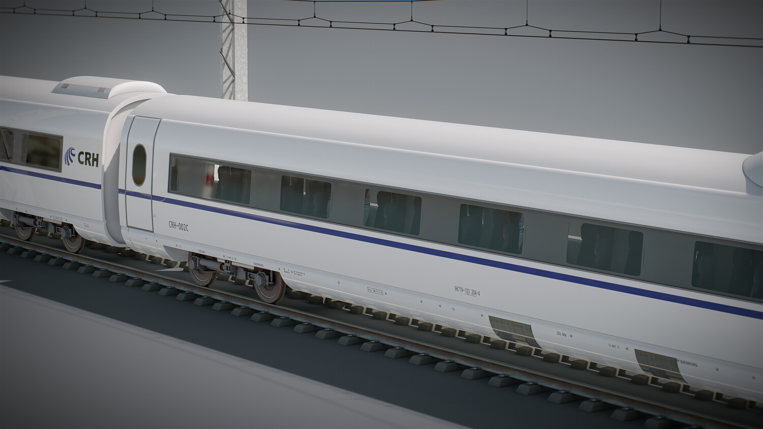 Realistic, detailed and textured Chinese CRH3 Siemens Velaro high speed trains with Interior, Railway Track and Catenary included in multiple 3D formats.